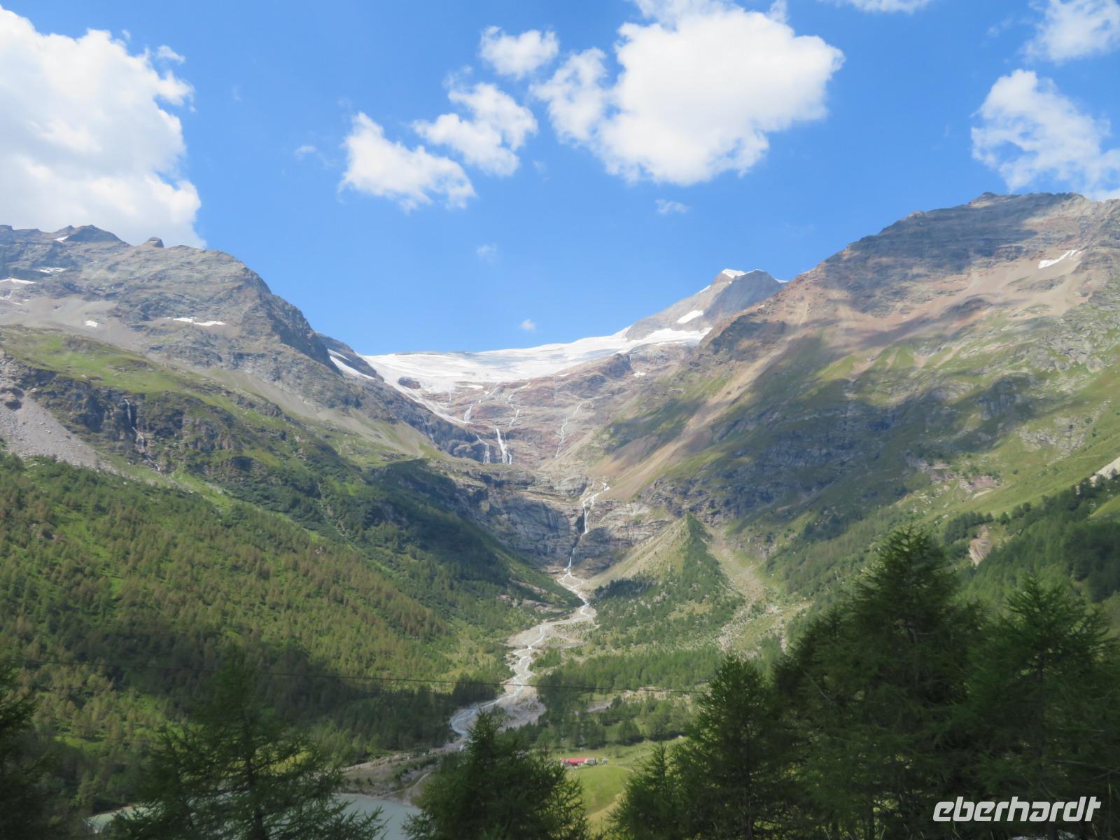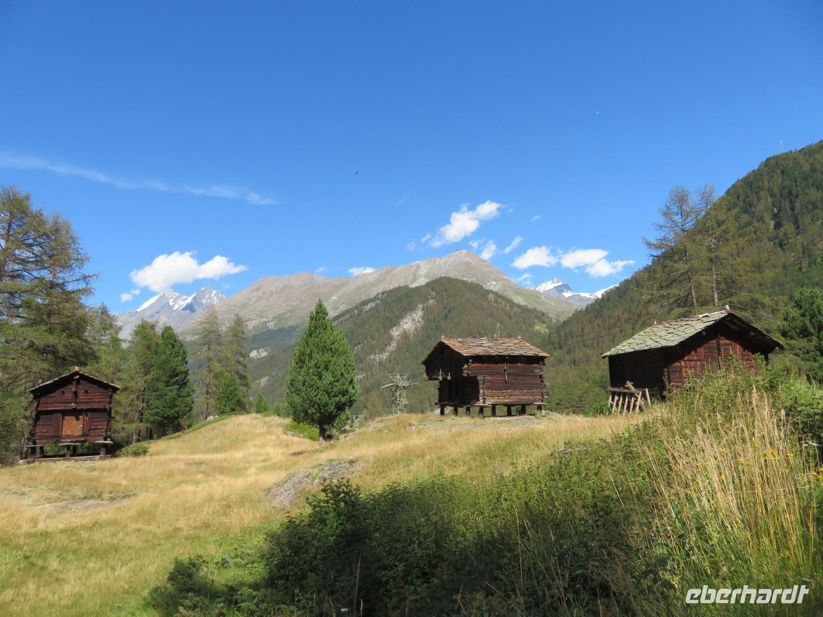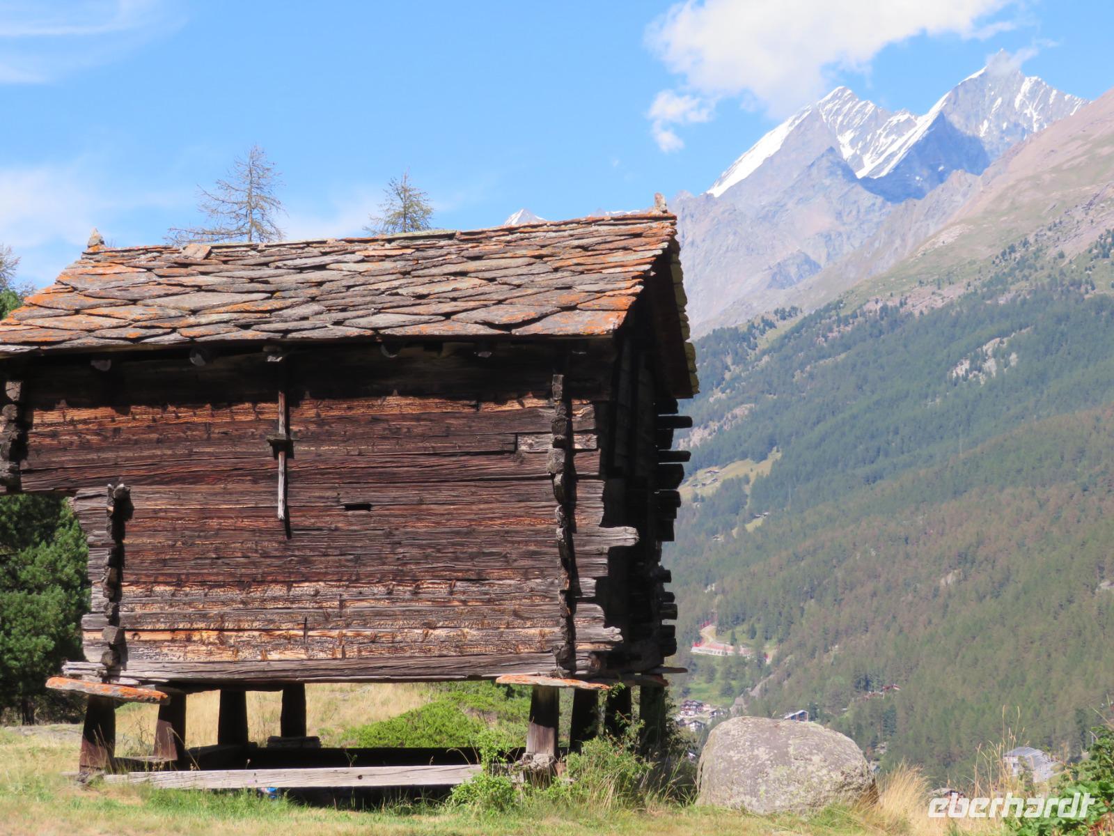 Wir starten zu unserem fakultativen Ausflug auf das Kleine Matterhorn. Wir gehen entlang der Vispa zur Talstation der Gondelbahn. Sie bringt uns über Furi nach Schwarzsee. Wir hier dem Matterhorn ganz nah. Wir entdecken die Hörnlihütte am Fuße des Matterhorns. Sie ist der Ausgangspunkt für jeden Bergsteiger, der den Berg der Berge besteigen möchte. Wir sehen von der Station Schwarzsee bereits unser Ziel - das Kleine Matterhorn. Unsere Fahrt mit der Gondelbahn führt uns weiter bis zur Station „Trockener Steg". In 2.953 Metern Höhe machen wir ebenfalls eine Pause. Wir besuchen zunächst die Informationsausstellung zur neuen Gondelbahn, die gerade gebaut wird. Sie zeichnet sich durch neuartige Gondeln aus. In diesen finden 28 Personen Platz und vor allem die Skifahrer können komfortabler in das Skigebiet auf dem Kleinen Matterhorn fahren. Nachdem wir auf der Terrasse die Aussicht genossen haben, geht es mit der Kabinenbahn auf das Kleine Matterhorn in 3.883 Metern Höhe. Jeder gestaltet seinen Besuch auf dem höchsten Aussichtspunkt nach seinen Wünschen. Wir besuchen die Aussichtsplattform. Im gleißenden Sonnenlicht sind wir den majestätischen Viertausendern ganz nah. Ob das Breithorn mit seiner dicken Schneekappe, der Dom, der höchste Berg der komplett auf Schweizer Boden steht oder die Monte Rosa Gruppe - wir sind einfach nur begeistert von der Schönheit der Berge! Selbst den Mont Blanc sehen wir fast zum Greifen nah. Im Gletscherpalast tauchen wir in die Welt des ewigen Eises ein. Wir können wunderschöne Eisplastiken bestaunen. Beim Bummel über den Gletscher begegnen uns die Skifahrer, die hier das ganze Jahr ihrem Sport nachgehen können. Nach einem ausgiebigen Aufenthalt treten wir individuell die Talfahrt mit den Bahnen an. Doch auch dabei fasziniert uns diese einmalige, überwältigende Natur. Bei Traumwetter wandern wir mit einigen Gästen das letzte Stück nach Zermatt zurück. In Furi verlassen wir die Gondelbahn. Nun führt uns ein herrlicher Wanderweg durch Wiesen und die alten Weiler Zum See und Blatten. Wunderschöne alte Holzhäuser und Spycher geben den beiden Weilern ihr typisches Bild. Diese typischen, aus Lärchenholz gebauten Häuser sind teilweise mehrere hundert Jahre alt und vermitteln einen kleinen Einblick, wie Zermatt früher ausgesehen hat. Gut gelaunt kommen wir Zermatt an und alle gestalten den Nachmittag nach ihren Wünschen. Wir schauen noch den Folkloregruppen zu, die auf dem Kirchplatz und am Bahnhof spielen, denn am Wochenende ist ein Folklorefest in Zermatt.
