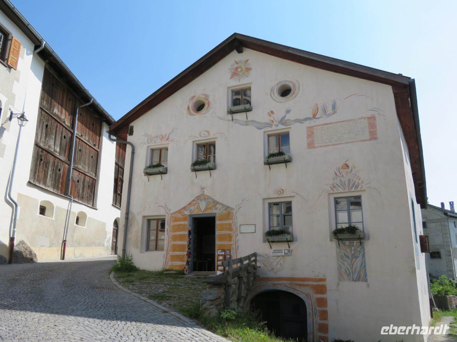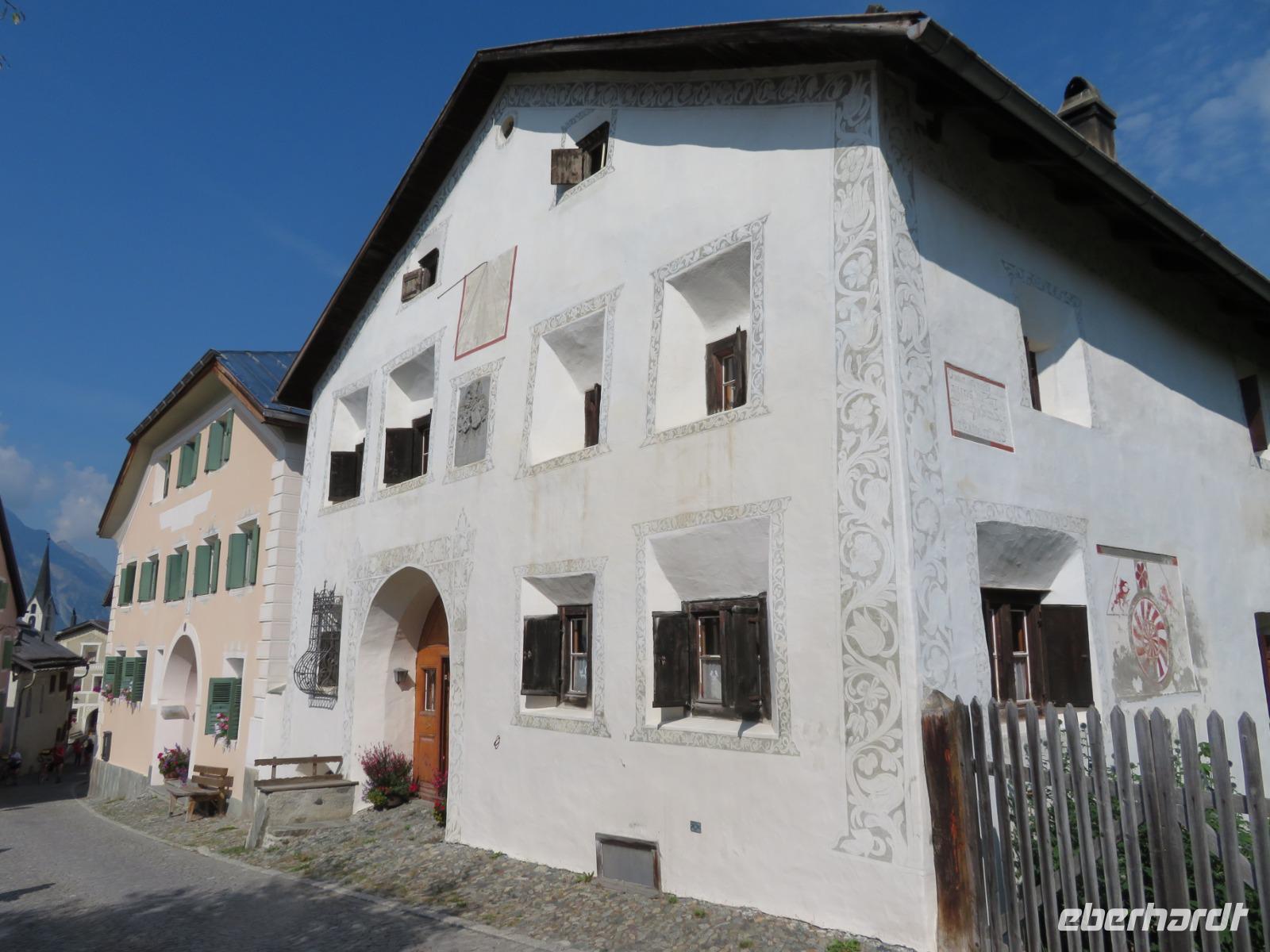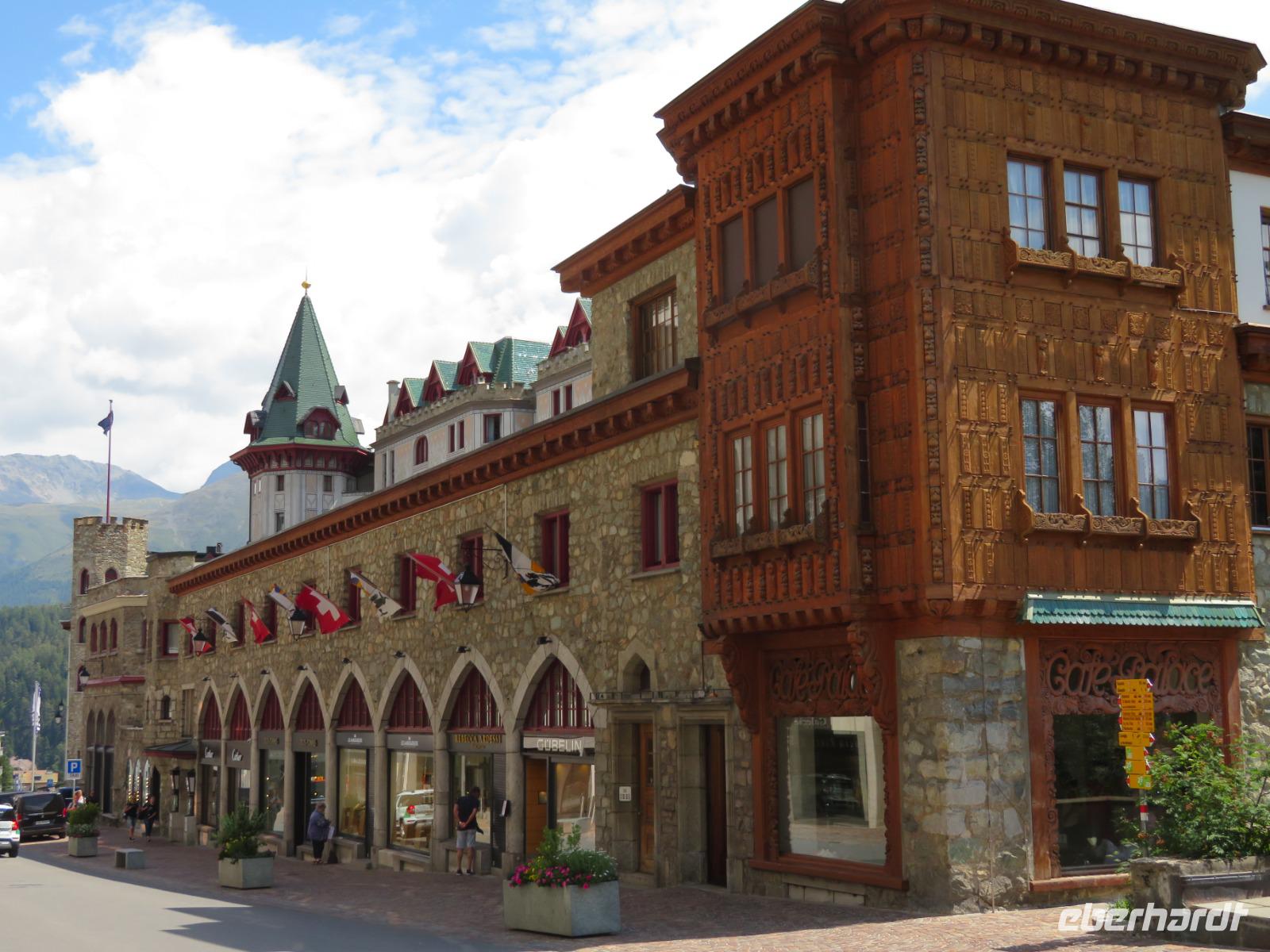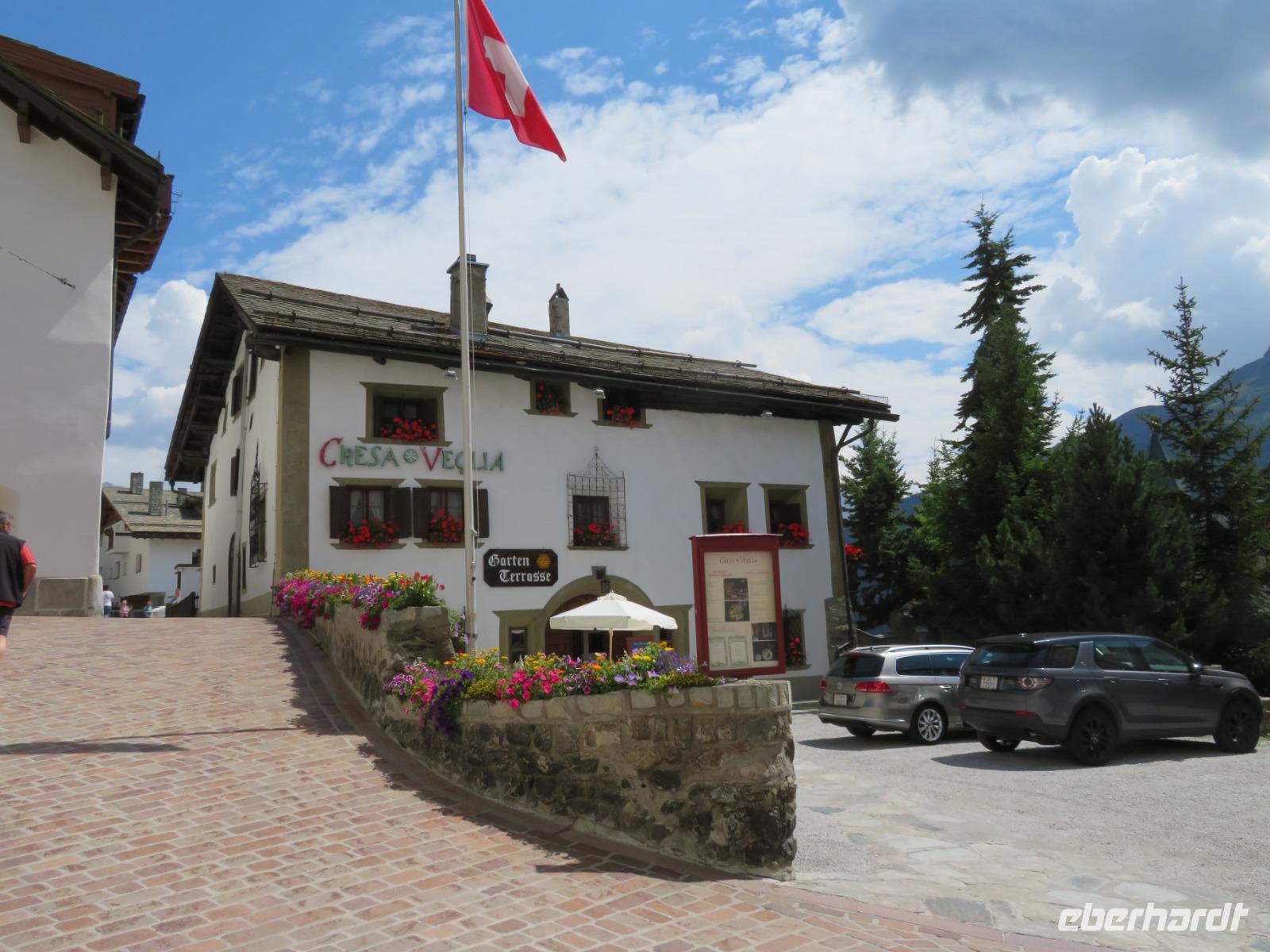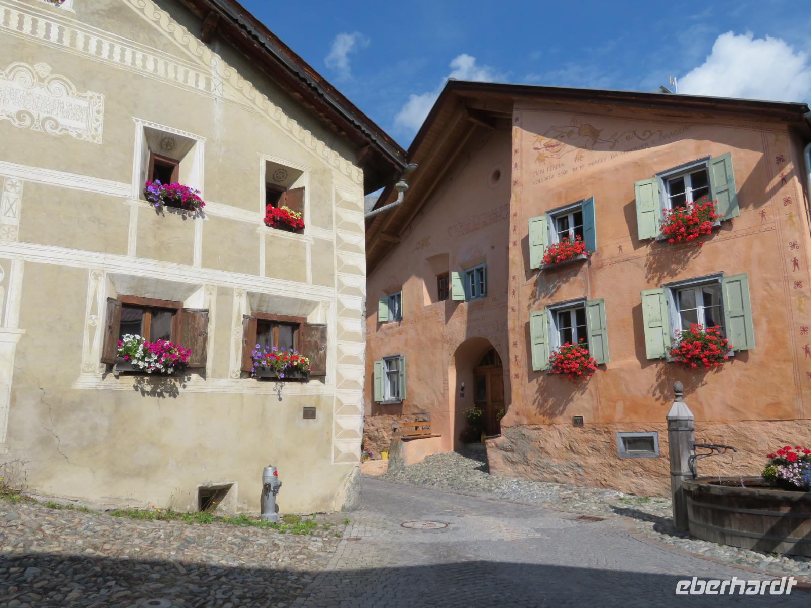 Wir unternehmen eine Entdeckungsreise in das Engadin. Über den 2.383 Meter hohen Flüela-Pass geht es in das Engadin. Wieder genießen wir die einmalige Bergwelt Graubündens. Unsere Route führt uns zuerst nach Guarda. Im kleinen Dorf hoch am Berg finden wir ein einzigartiges Ensemble der typischen Engadiner Steinhäuser. Diese Häuser vereinen die Wirtschaftsgebäude und den Wohntrakt unter einem Dach. Die Wohnräume befinden sich in einem höheren Teil, welche durch einen separaten Eingang erreichbar sind. Die Ställe, Scheunen und Vorratslager sind in den unteren Geschossen des Hauses untergebracht und durch große Tore erreichbar. Diese Gebäude aus Stein verfügen über dicke Mauern und die Fenster sind tief eingelassen. Die Fassaden mit wunderschönen Sgraffitis begeistern uns. Heute sind diese Kleinode Wohnhäuser oder kleine Pensionen und Hotels. Die ehemaligen Wirtschaftsräume, wie Ställe und Scheunen nutzen die Besitzer heute meist anderweitige. Bei einem Spaziergang erfreuen wir uns an diesem einmaligen Ensemble. Anschließend reisen wir durch das Inntal nach St. Moritz. Gerald, unser Chauffeur, beweist während der ganzen Fahrt seine ausgezeichneten Fahrkünste. Denn einige Baustellen auf den Schweizer Passstraßen und damit verbundene schwierige Durchfahrten meistert er perfekt! In St. Moritz unternehmen wir einen Spaziergang durch den mondänen Kurort. Zuerst erreichen wir über die Rolltreppen das Zentrum des Ortes. Unsere Runde führt uns vorbei am berühmten Bardrutt Hotel Palace. Hier residieren vor allem im Winter die Schönen und Reichen. Wir spazieren weiter durch die Fußgängerzone mit der berühmten Konditorei Hanselmann zum Rathaus. Dabei erzählt Annette die Geschichte, wie der Wintertourismus in St. Moritz und damit in der Schweiz begann: Der berühmte Hotelier Johannes Bardrutt hatte vor über 150 Jahren in seinem Kulmhotel im Sommer viele englische Gäste zu Gast. Gerne wollte er sie auch im Winter begrüßen. Vier seiner englischen Stammgäste schlug er eine Wette vor: Sie sollten im Winter nach St. Moritz reisen. Er würde Kost und Logis für die Zeit des Aufenthaltes übernehmen, wenn es Ihnen gefiel. Ansonsten käme er für die Reisekosten auf. Die Gäste kamen zu Weihnachten und verabschiedeten sich erst Ostern gut erholt und braungebrannt. Dies war der Startschuß für den Wintertourismus in der Schweiz. Unsere Rückfahrt geht vorbei am Silvaplaner See über den 2.284 Meter hohen Julierpass. Nach einer Pause auf dem Pass fahren wir durch das Landwassertal mit vielen kleinen Orten nach Davos zurück.