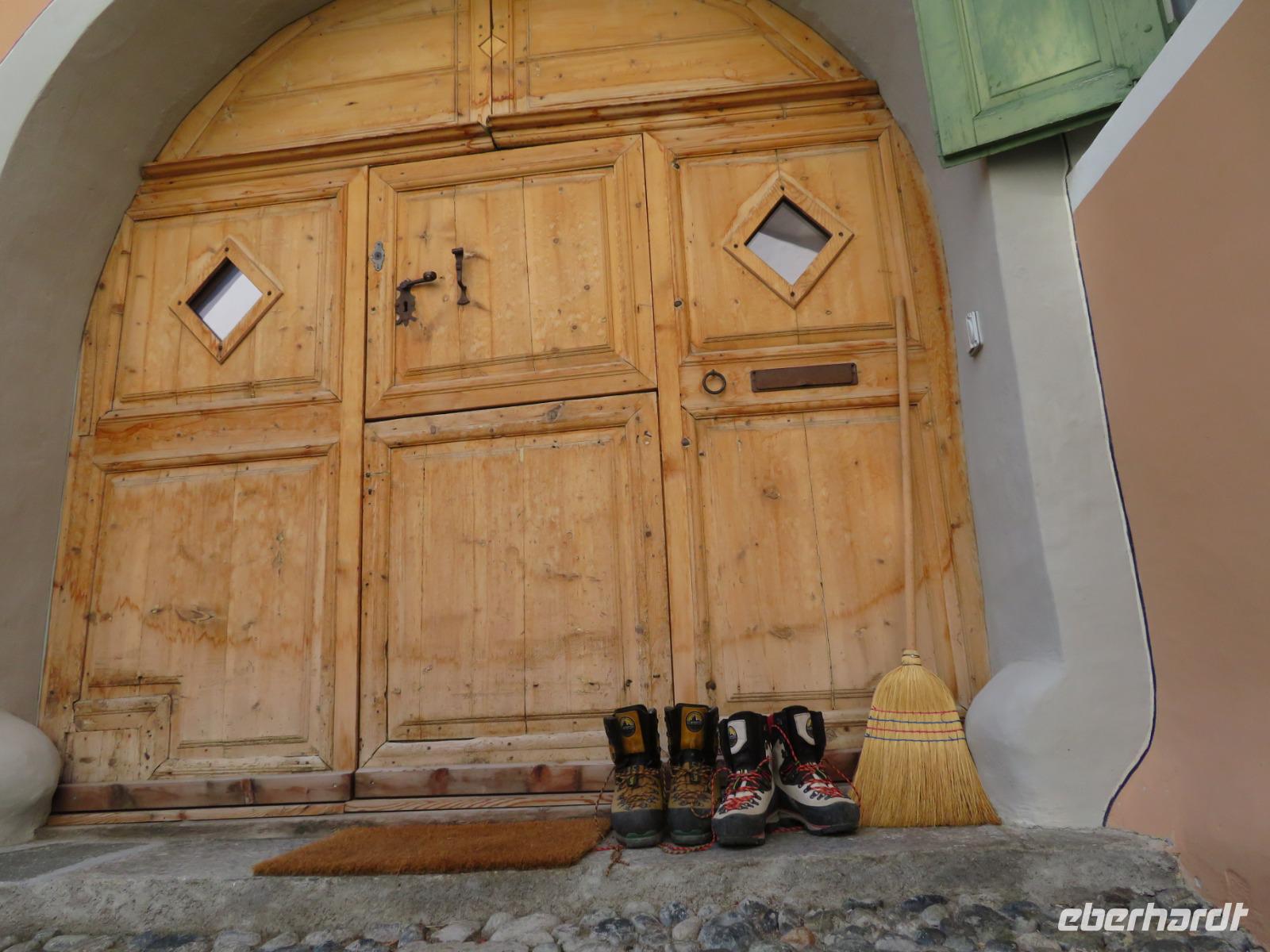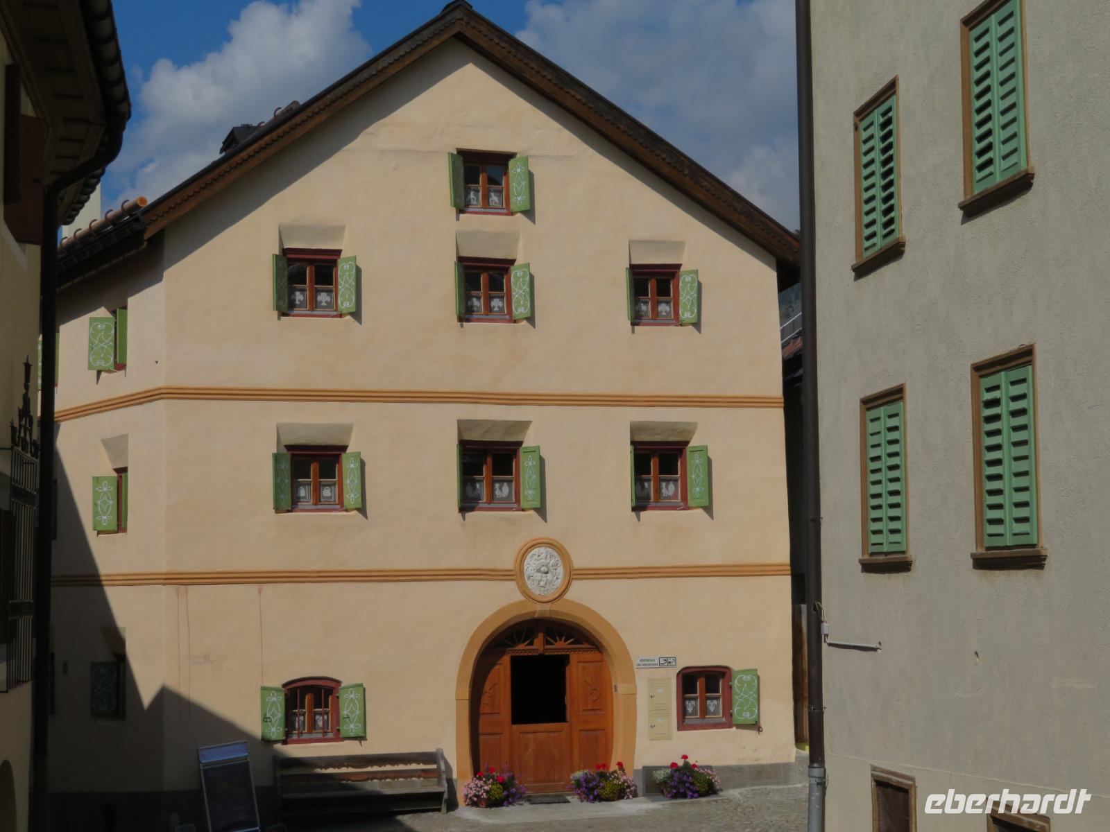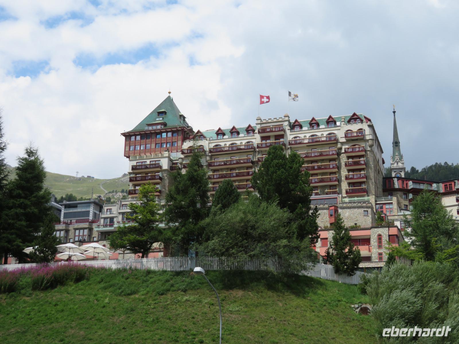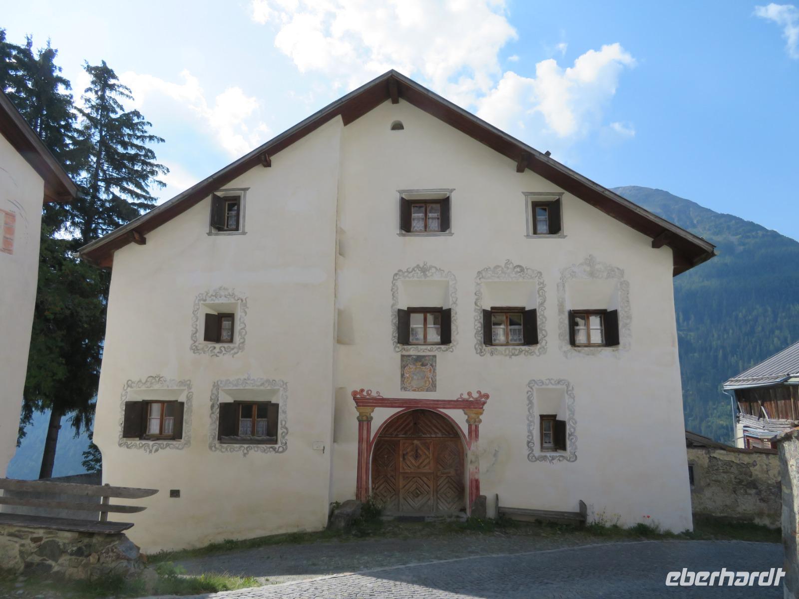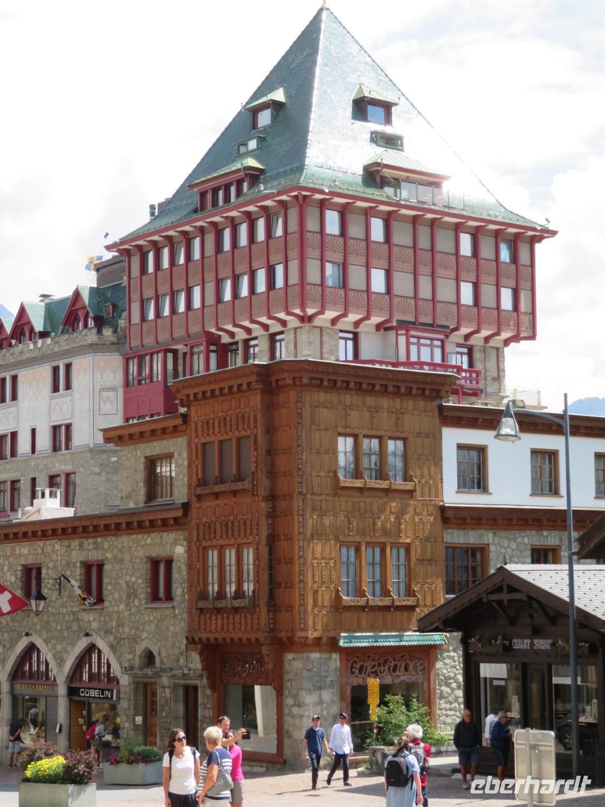 Wir unternehmen eine Entdeckungsreise in das Engadin. Über den 2.383 Meter hohen Flüela-Pass geht es in das Engadin. Wieder genießen wir die einmalige Bergwelt Graubündens. Unsere Route führt uns zuerst nach Guarda. Im kleinen Dorf hoch am Berg finden wir ein einzigartiges Ensemble der typischen Engadiner Steinhäuser. Diese Häuser vereinen die Wirtschaftsgebäude und den Wohntrakt unter einem Dach. Die Wohnräume befinden sich in einem höheren Teil, welche durch einen separaten Eingang erreichbar sind. Die Ställe, Scheunen und Vorratslager sind in den unteren Geschossen des Hauses untergebracht und durch große Tore erreichbar. Diese Gebäude aus Stein verfügen über dicke Mauern und die Fenster sind tief eingelassen. Die Fassaden mit wunderschönen Sgraffitis begeistern uns. Heute sind diese Kleinode Wohnhäuser oder kleine Pensionen und Hotels. Die ehemaligen Wirtschaftsräume, wie Ställe und Scheunen nutzen die Besitzer heute meist anderweitige. Bei einem Spaziergang erfreuen wir uns an diesem einmaligen Ensemble. Anschließend reisen wir durch das Inntal nach St. Moritz. Gerald, unser Chauffeur, beweist während der ganzen Fahrt seine ausgezeichneten Fahrkünste. Denn einige Baustellen auf den Schweizer Passstraßen und damit verbundene schwierige Durchfahrten meistert er perfekt! In St. Moritz unternehmen wir einen Spaziergang durch den mondänen Kurort. Zuerst erreichen wir über die Rolltreppen das Zentrum des Ortes. Unsere Runde führt uns vorbei am berühmten Bardrutt Hotel Palace. Hier residieren vor allem im Winter die Schönen und Reichen. Wir spazieren weiter durch die Fußgängerzone mit der berühmten Konditorei Hanselmann zum Rathaus. Dabei erzählt Annette die Geschichte, wie der Wintertourismus in St. Moritz und damit in der Schweiz begann: Der berühmte Hotelier Johannes Bardrutt hatte vor über 150 Jahren in seinem Kulmhotel im Sommer viele englische Gäste zu Gast. Gerne wollte er sie auch im Winter begrüßen. Vier seiner englischen Stammgäste schlug er eine Wette vor: Sie sollten im Winter nach St. Moritz reisen. Er würde Kost und Logis für die Zeit des Aufenthaltes übernehmen, wenn es Ihnen gefiel. Ansonsten käme er für die Reisekosten auf. Die Gäste kamen zu Weihnachten und verabschiedeten sich erst Ostern gut erholt und braungebrannt. Dies war der Startschuß für den Wintertourismus in der Schweiz. Unsere Rückfahrt geht vorbei am Silvaplaner See über den 2.284 Meter hohen Julierpass. Nach einer Pause auf dem Pass fahren wir durch das Landwassertal mit vielen kleinen Orten nach Davos zurück.