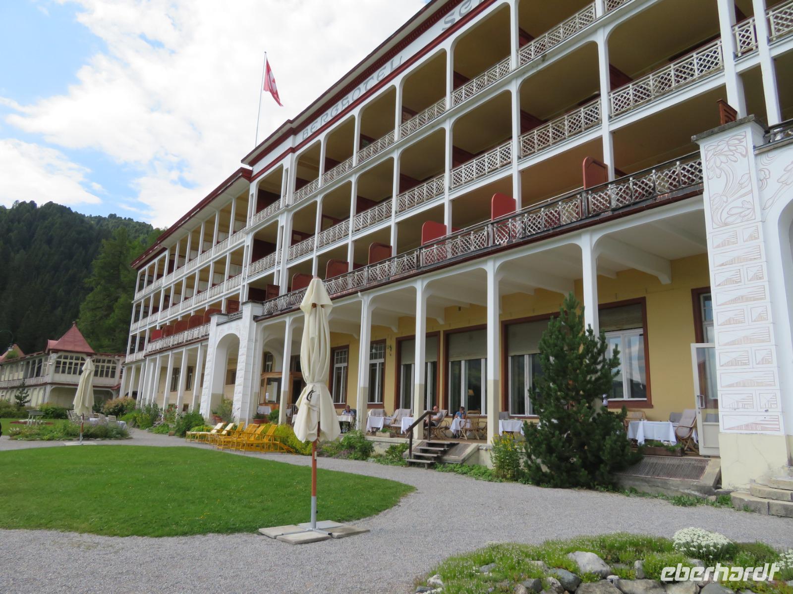 Also treffen wir uns am Vormittag zu einem gemeinsamen Ausflug auf den Weissfluh-Gipfel. Wir fahren mit dem Ortsbus zur Talstation und von dort bringen uns die Standseilbahnen und eine Seilbahn auf 2.863 Meter Höhe auf den Weissfluh-Gipfel. An den Zwischenstationen legen wir jeweils kurze Pausen ein, um die Aussicht zu genießen. Auf dem Gipfel eröffnet sich uns ein toller Blick in die Bündner Alpen. Individuell kehren wir nach Davos zurück. Einige Gäste wandern einen Teil der Strecke und andere fahren mit den Bahnen zurück. Am Nachmittag unternehmen wir einen Ausflug mit der Standseilbahn auf die Schatzalp. Wir erleben eine Führung im ehemaliges Sanatorium, welches früher Kurgäste mit Lungenkrankheiten betreute. Dieses beeindruckende Gebäude aus der Belle Epoque ist heute ein Hotel. Wir sehen die wunderschönen Räume, die fast alle noch im Jugendstil erhalten sind und sanft restauriert wurden. Einige Details und Einrichtungen sind noch im Original aus der Zeit der Erbauung des Hauses um 1900 erhalten. So zum Beispiel die Lifte oder der wunderschöne Speisesaal und die Liegen, auf denen die Kurgäste ihre Liegekuren absolvierten. Thomas Mann hat das Sanatorium und die Schatzalp in seinem Roman „Der Zauberberg" zum Schauplatz gemacht. Ein erlebnisreicher Tag geht für uns mit dem Abendessen und netten Gesprächen zu Ende.