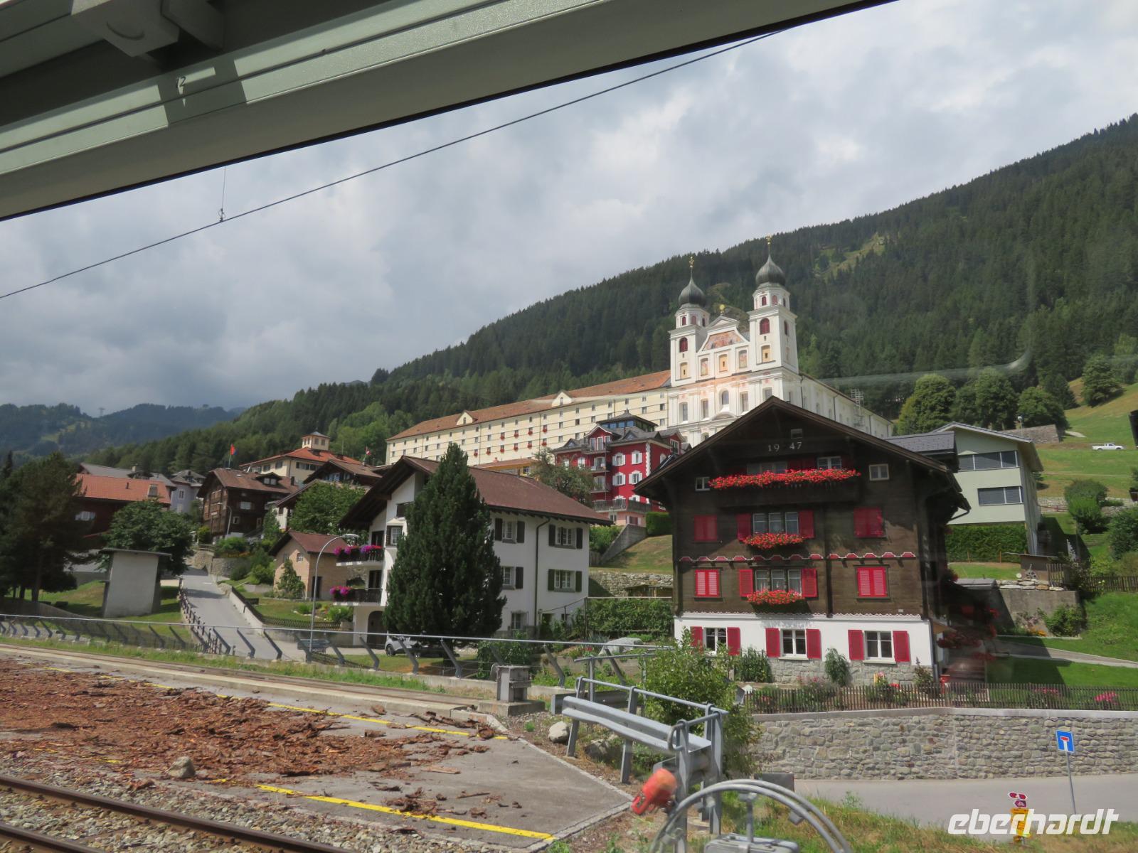 Wiederum beginnt der Tag mit Sonnenschein in Davos. Wir verstauen unser Gepäck im Bus und unser Chauffeur Gerald bringt uns zum Bahnhof Davos-Platz. Gerald fährt mit dem Bus über den Oberalppass und den Furkapass nach Täsch und schafft unser Gepäck ins Hotel. Wir reisen mit dem Nostalgischen Zug nach Filisur. Dieser fährt zweimal am Tag mit historischen Wagen von Davos nach Filisur und zurück. In Filisur steigen wir in den Panoramawagen der 2. Klasse des Glacier-Express um. Es beginnt eine einmalige Fahrt. Der Glacier-Express ist der langsamste Schnellzug der Welt. Er benötigt für die 291 Kilometer lange Strecke bis nach Zermatt etwas mehr als 7 Stunden Fahrzeit. Während der Reise erhalten wir interessante Informationen und Geschichten über Kopfhörer zur Strecke und deren Sehenswürdigkeiten. Bereits kurz nach dem Bahnhof Filisur passieren den ersten Höhepunkt auf der Strecke. Der Zug fährt über das wohl bekannteste und imposanteste Bauwerk der Strecke, das 65 Meter hohe und 142 Meter lange Landwasserviadukt. Deses einmalige Bauwerk überspannt mit einem kühnen Bogen im 100 Meter Radius das Landwassertal. Die Reise führt nun weiter durch die Landschaft des Prättigau nach Thusis und Reichenau. Bei Reichenau erkennen wir den Zusammenfluss von Hinterrhein und Vorderrhein zum Rhein. Anschließend fährt der Zug in den Bahnhof Chur. Die Lok wird umgespannt und es steigen weitere Gäste zu. Jetzt fährt der Glacier-Express zurück nach Reichenau und hinein in die Rheinschlucht. Nach der letzten Eiszeit fanden hier riesige Bergstürze statt und bildeten die einmalige Schlucht. Bizarre Felsgebilde und imposante Wände säumen den Swiss Grand Canyon. Nun erhalten wir einen Älplerteller mit Bergkäse und leckerer Trockenwurst aus Graubünden. Bald erreichen wir Disentis, wo uns schon Weitem das Benediktiner-Kloster grüßt. Hier wechselt der Glacier-Express von der Strecke der Rhätischen Bahn, auf der der Zug ohne Steighilfen auskommt, auf das Netz der Matterhorn-Gotthard-Bahn. Eine andere Lok wird nun angehangen. Ab Disentis wird der Zug durch Zahnstangen und Zahnräder bei den Steigungen unterstützt. Der Glacier-Express muss jetzt Klettern, denn es geht hinauf zum höchsten Punkt der Strecke auf den 2.033 Meter hohen Oberalppass. Dabei eröffnen sich uns trotz einiger Regentropfen immer wieder neue Blicke in die abwechslungsreiche Landschaft. Die Route führt uns über einmalige schwindelerregende Strecken aus Kehrtunneln und Serpentinen 600 Meter hinab nach Andermatt und weiter in das Ursenen- und Hospental nach Realp. Am den Bahnhof der Furka-Dampfbahn vorbei erreicht der Zug nun den 15,6 Kilometer langen Furka-Tunnel. In Oberwald endet der Tunnel und uns begrüßt das liebliche Goms. In dem Hochtal befinden sich viele Dörfer mit den typischen dunklen Walliser Holzhäusern. Durch das Tal reisen wir hinab nach Fiesch. Dabei geht die Tour in einem kühnen Kehrtunnel über einen größeren Höhenunterschied. Unsere Reise führt uns weiter durch das Rhônetal nach Brig und Visp. In Visp verläßt der Zug das Tal der Rhône und erreicht das Visper- und Mattertal. Vorbei an St. Niklaus und Randa fährt der Zug hinauf nach Täsch. In Randa sehen wir die längste Hängebrücke der Welt für Fußgänger. Sie überspannt auf deiner Länge von 494 Metern ein Tal und ermöglicht Wanderern einen bequeme Wanderung auf dem Europawanderweg von Grächen nach Zermatt. Der Zug legt nun das letzte Stück bis nach Zermatt zurück. Es regnet leicht und das Matterhorn versteckt sich hinter dicken Wolken. Wir spazieren zu unserem Hotel Perren, wo wir bereits erwartet und herzlich begrüßt werden, Bei einem leckeren Abendessen klingt wieder ein schöner Tag aus.
