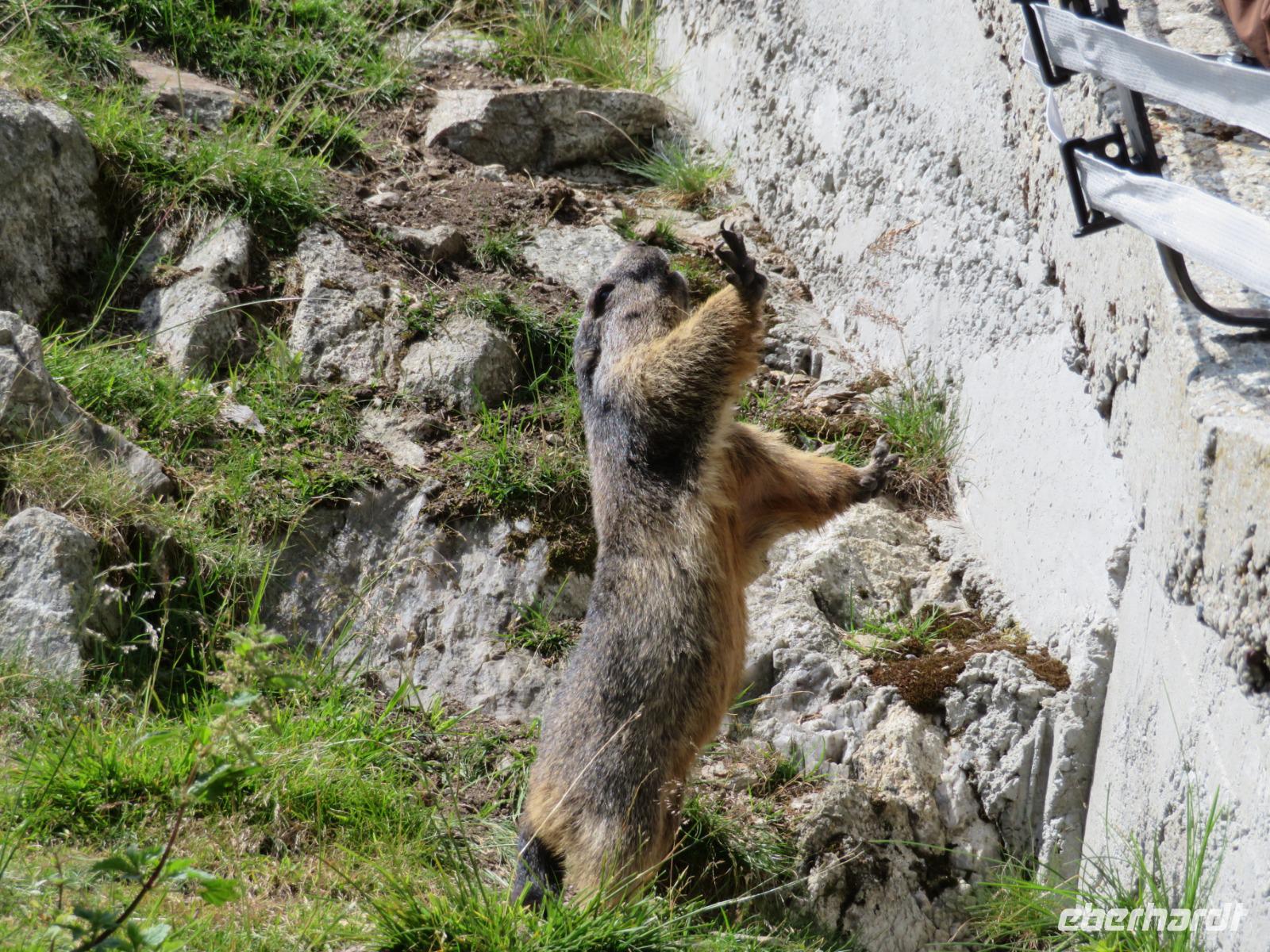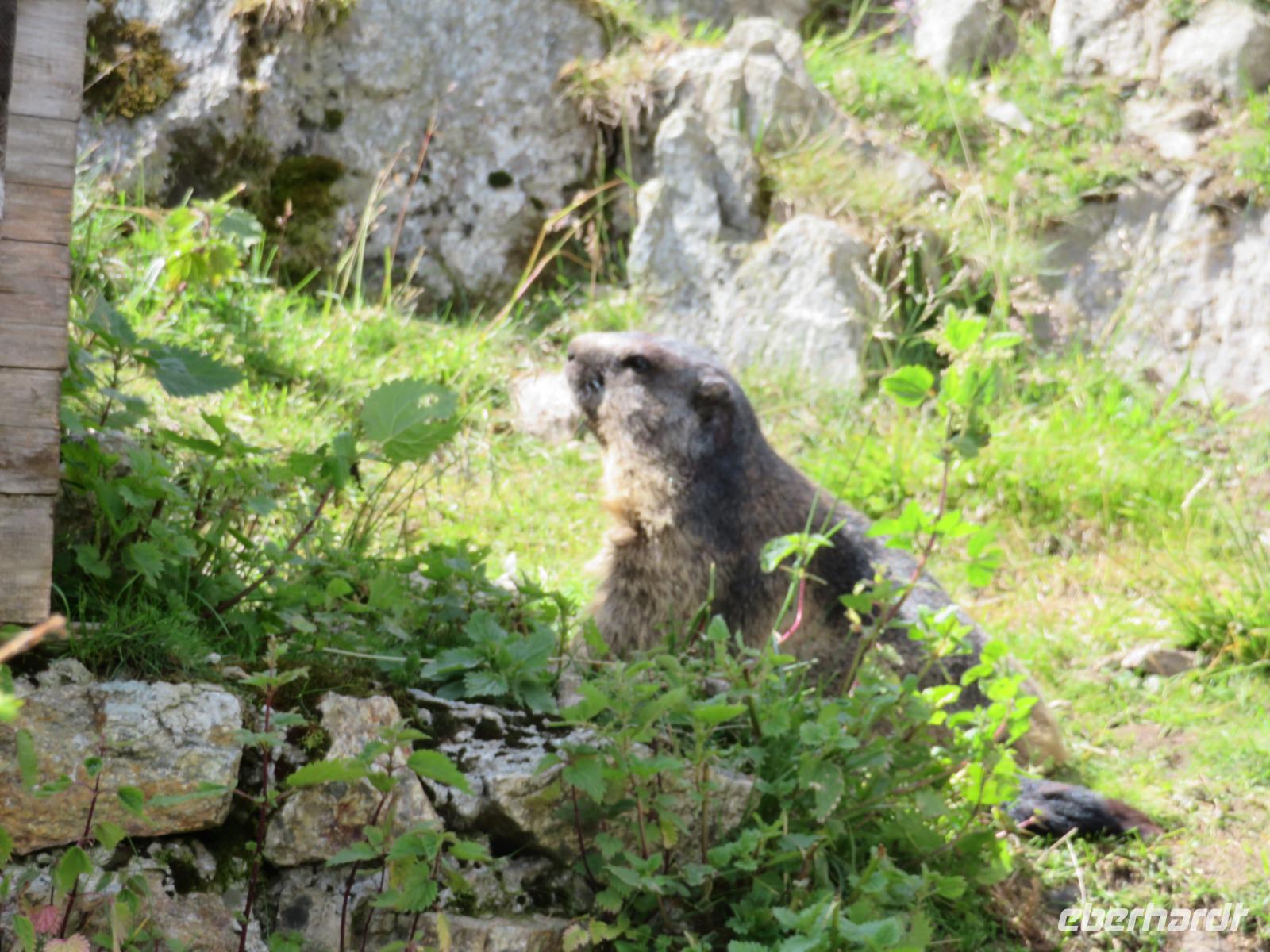 Wir müssen heute leider Abschied nehmen von Zermatt und dem Matterhorn. Nach dem Frühstück gehen wir zum Bahnhof von wo wir mit dem Pendelzug der Matterhorn-Gotthard-Bahn nach Täsch fahren. Gerald, unser Chauffeur, hat bereits unser Gepäck im Bus verstaut und so können wir zügig unsere Panoramafahrt ins Appenzeller Land starten. Zunächst führt uns die Tour durch das Mattertal ins Rhônetal. Wir reisen durch das liebliche Goms, mit seinen hübschen Dörfern mit den typischen Walliser Holzhäusern. In Niederwald, dem Geburtsort von Cäsar Ritz, dem großen Hotelier, machen wir eine Pause. Wir spazieren durch den Ortskern mit schönen Häusern und besuchen die Kirche und das Grab der Familie Ritz. Nun klettert unser Bus hinauf ins Grimselgebiet. In Oberwald beginnt die Straße nach Gletsch, wo die Furka- und die Grimselpassstraße aufeinandertreffen. Es ist ein atemberaubender Anblick, wie sich beide Straßen in kühnen Serpentinen die Berge hinaufwinden. Gerald bringt uns sicher auf den Grimselpass. In 2.165 Metern Höhe angekommen, statten wir den Murmeltieren einen Besuch ab und finden schöne Fotomotive.