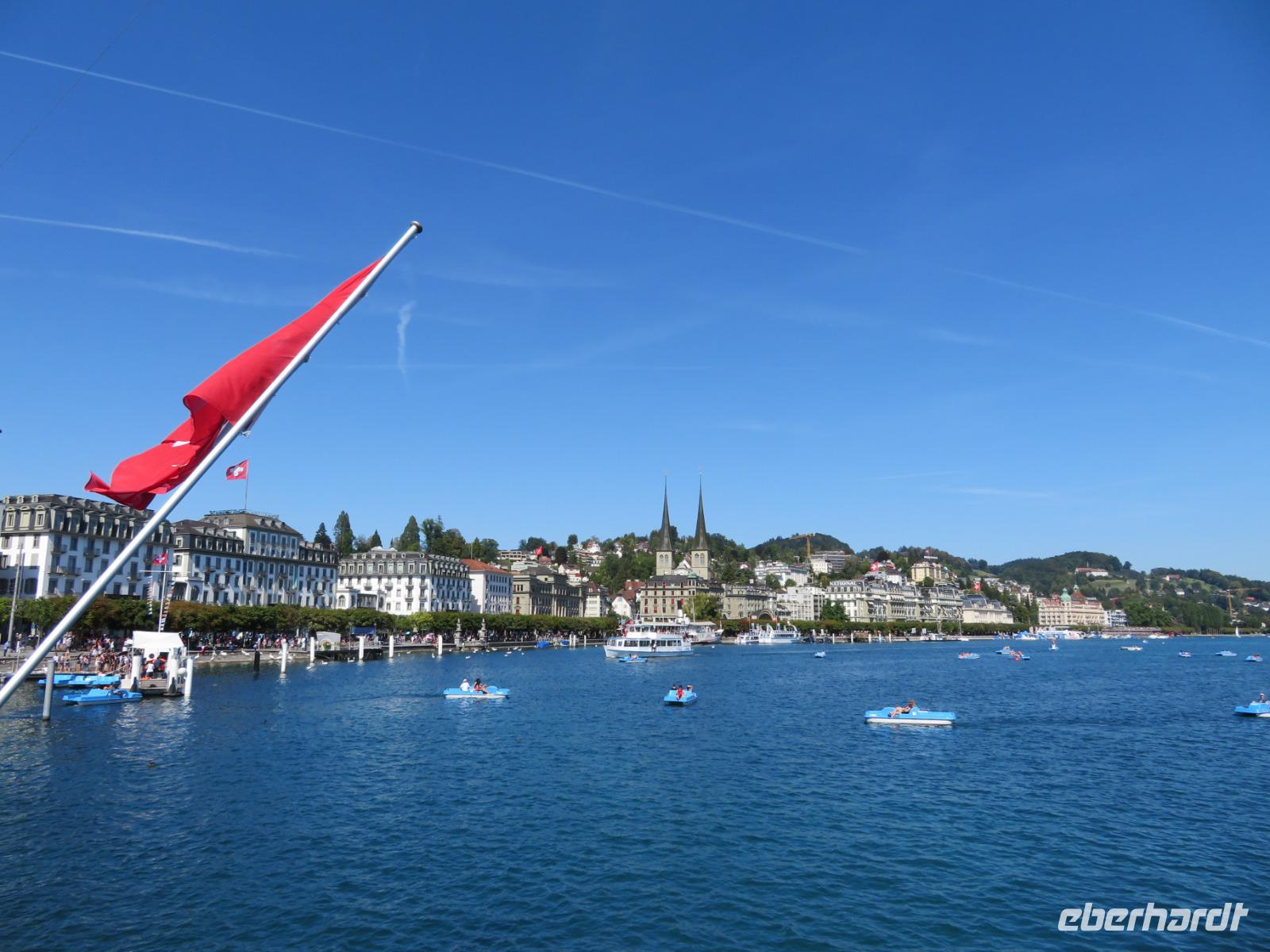 Dann geht es hinab Richtung Berner Oberland. Am Käsestand von Judith machen wir unsere Mittagspause. Wir genießen die wunderschöne Bergwelt und die faszinierenden Landschaft des Grimselgebietes. Dieses ist das Wasserschloss der Schweiz und hier wird r Energie aus der Wasserkraft gewonnen. Anschließend fahren wir hinunter ins Haslital, von wo die Straße gleich wieder ansteigt auf den 1.007 Meter hohen Brünigpass. Jetzt geführt uns die Reise vorbei am Sarnersee und am Lungernsee nach Luzern am Vierwaldstätter See. In der Stadt am Nordufer des Sees haben wir Zeit für einen kurzen Spaziergang. Wir entdecken die Museggmauer, die alte Stadtmauer mit ihren trutzigen Türmen. Nun bummeln wir über das Wahrzeichen der Stadt, die Kapellbrücke, die einst Teil der Stadtbefestigung war. Ein riesiger Brand zerstörte die Brücke im August 1993. Sie wurde aber sofort wieder aufgebaut. 81 der 111 historischen Bilder im Giebel der Brücke wurden leider Opfer der Flammen. Nach etwas Zeit zum Schauen und Spazieren setzen wir unsere Fahrt fort Vorbei an Zürich und entlang des Zürichsees fahren wir ins Toggenburg und ins Appenzellerland. Auf der Schwägalp beziehen wir im neuen Säntis - das Hotel unsere Zimmer. Der Tag endet bei eine typischen Appenzeller Abendessen. Dabei können wir noch das Alpenglühen am Säntis erleben.