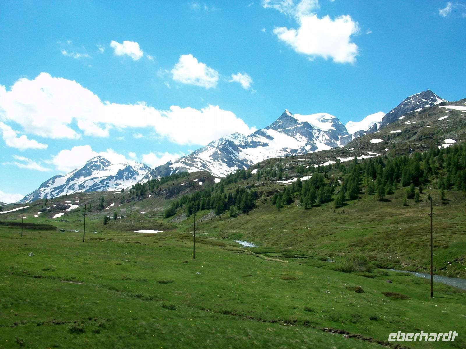 Doch, unser Rückweg ist noch weit; gegen halb vier müssen wir aufbrechen und mit einem Zwischenstopp auf dem Bernina- Pass gelangen wir auf demselben Weg zurück den wir gekommen. Nun sind doch einige Wolken aufgezogen, zu dieser Zeit stören sie nicht mehr, ein eindrucksvoller Tag geht zu Ende.