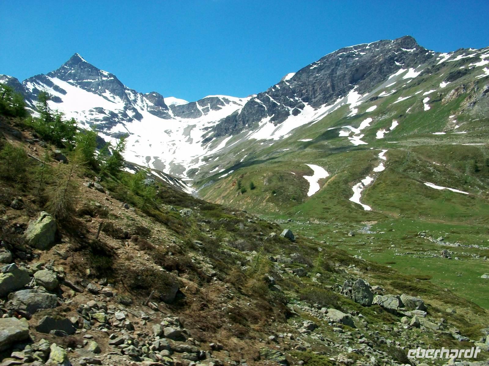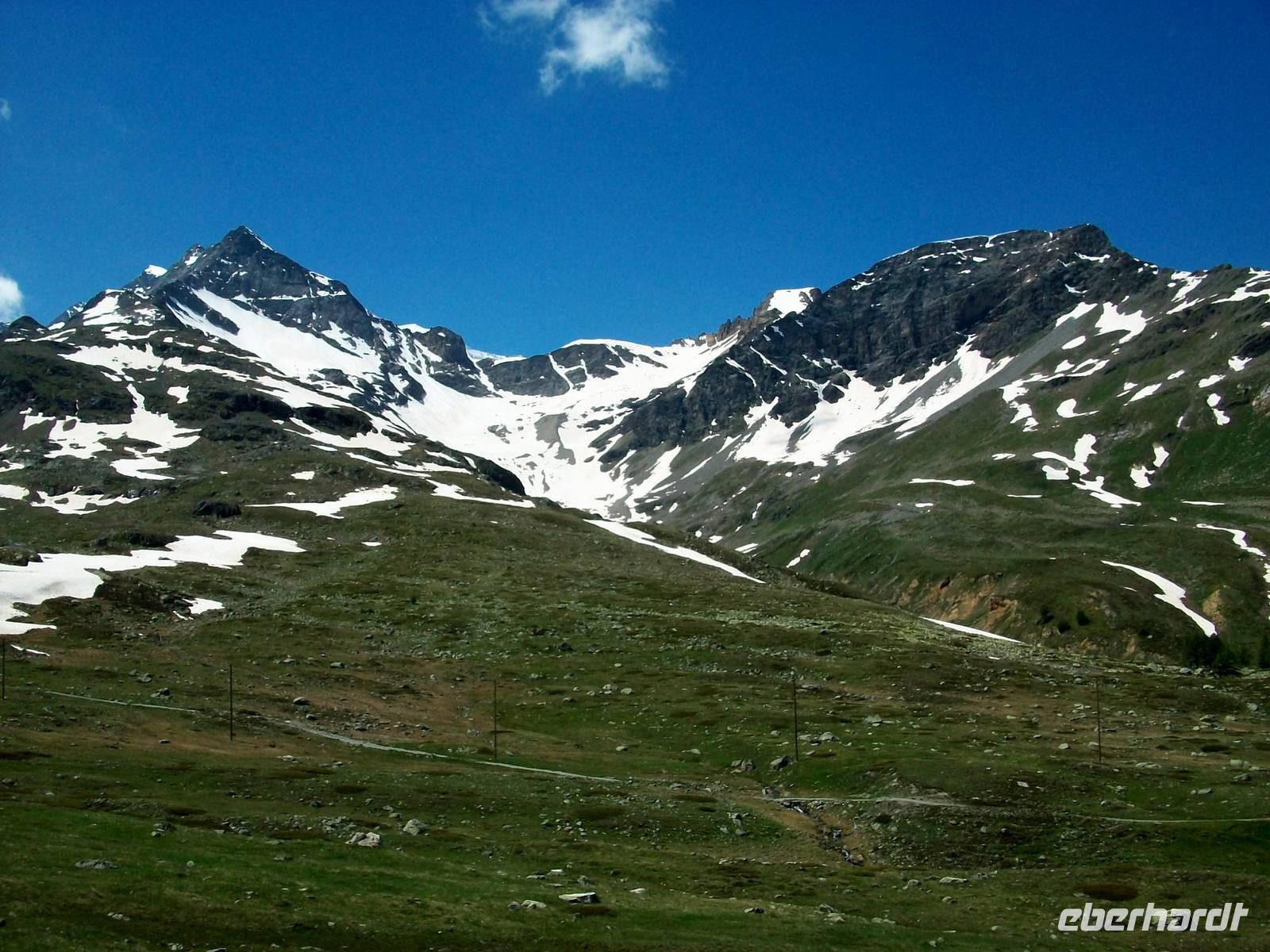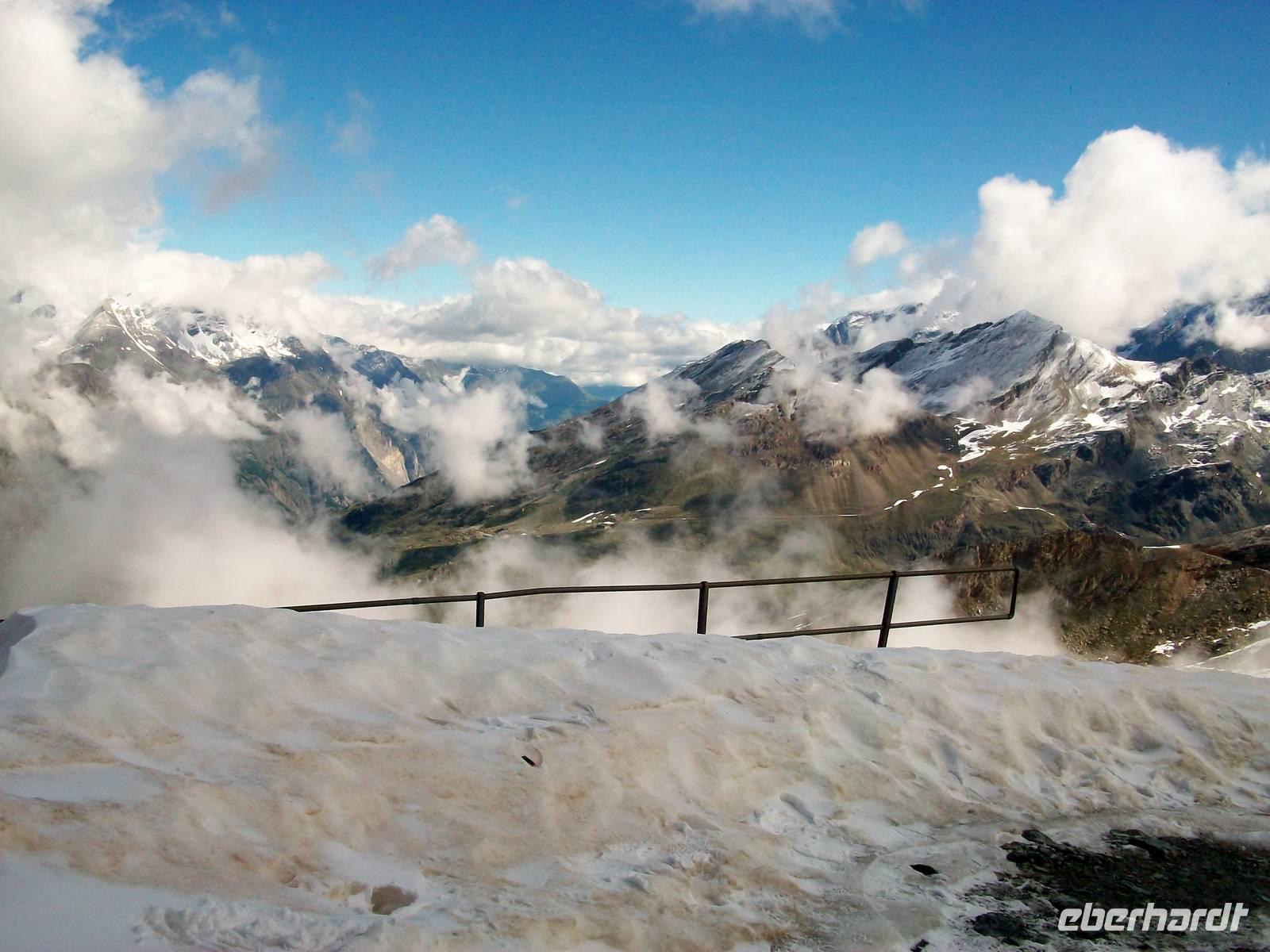 Richtung Italien hat sich nun die Sonne durchsetzen können, das Weiß kontrastiert mit dem tiefen Blau des Himmels; spätestens hier ist alle Unbill des vergangenen Tages vergessen!
