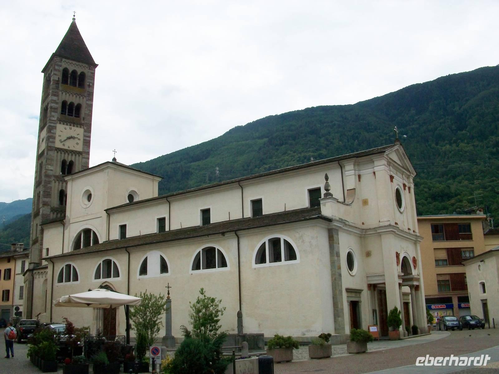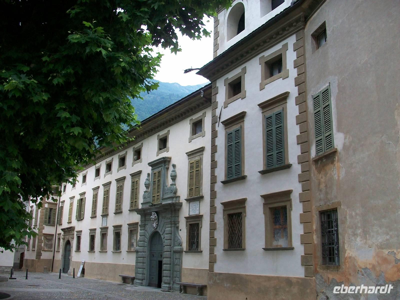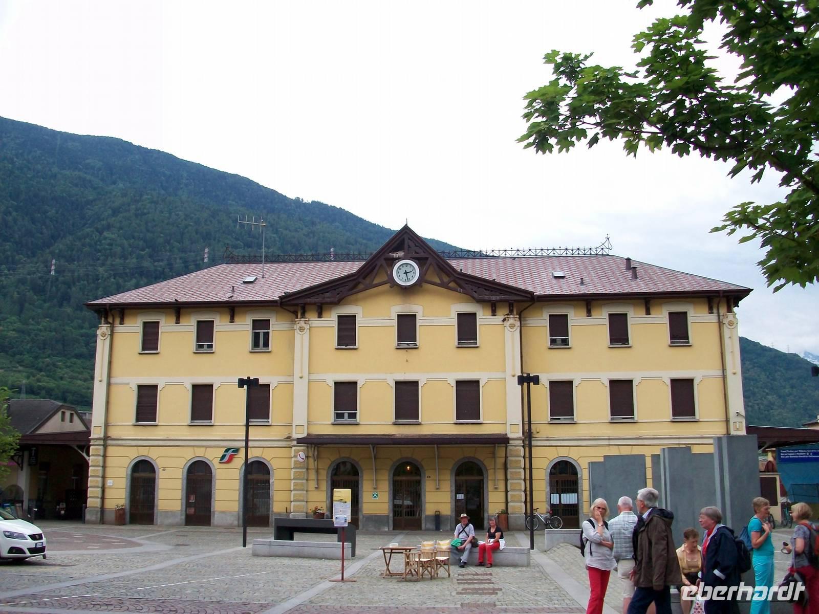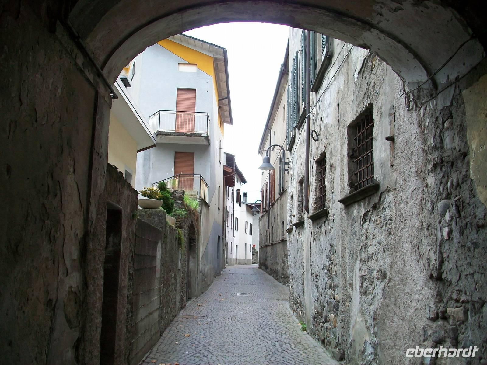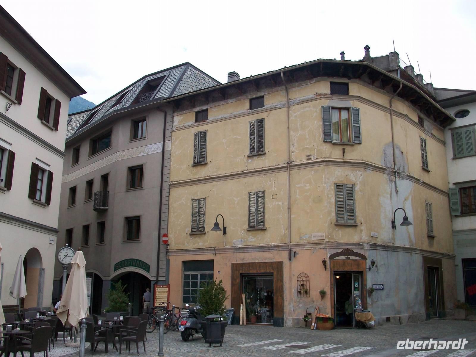 Dann senkt sich die Strecke wieder ab; durch zahlreiche Kehrtunnels gelangen wir nach unten und im Tal ist auch schon der Ort Poschiavo zu sehen, von hier oben ist es ein Blick wie auf ein Spielzeugland. Doch, die Häuser werden größer; wir sehen die schöne Architektur, gelangen am Lago di Poschiavo vorbei, einem sehr romantischer See und haben noch einen Fahrthöhepunkt vor uns: das berühmte Kreisviadukt von Brusio. Einmal im Kreis herum, und wir sind schon in Italien angelangt. Der Ort Tirano ist der Endpunkt unserer Zugreise, er empfängt uns mit warmen Temperaturen und beim Italiener um die Ecke holen wir uns die nötige Stärkung bei einem leckeren Mittagessen. Nun verbleibt noch Zeit für eigene Erkundungen im reizvollen Ort, sehr authentisch ist die Altstadt mit pittoresken Häusern und Gassen, durchflossen vom Fluss Adda. Das Tal in dem Tirano liegt ist umgeben von den schneebedeckten Spitzen der Alpen, dieser Aufenthalt hat sich gelohnt.