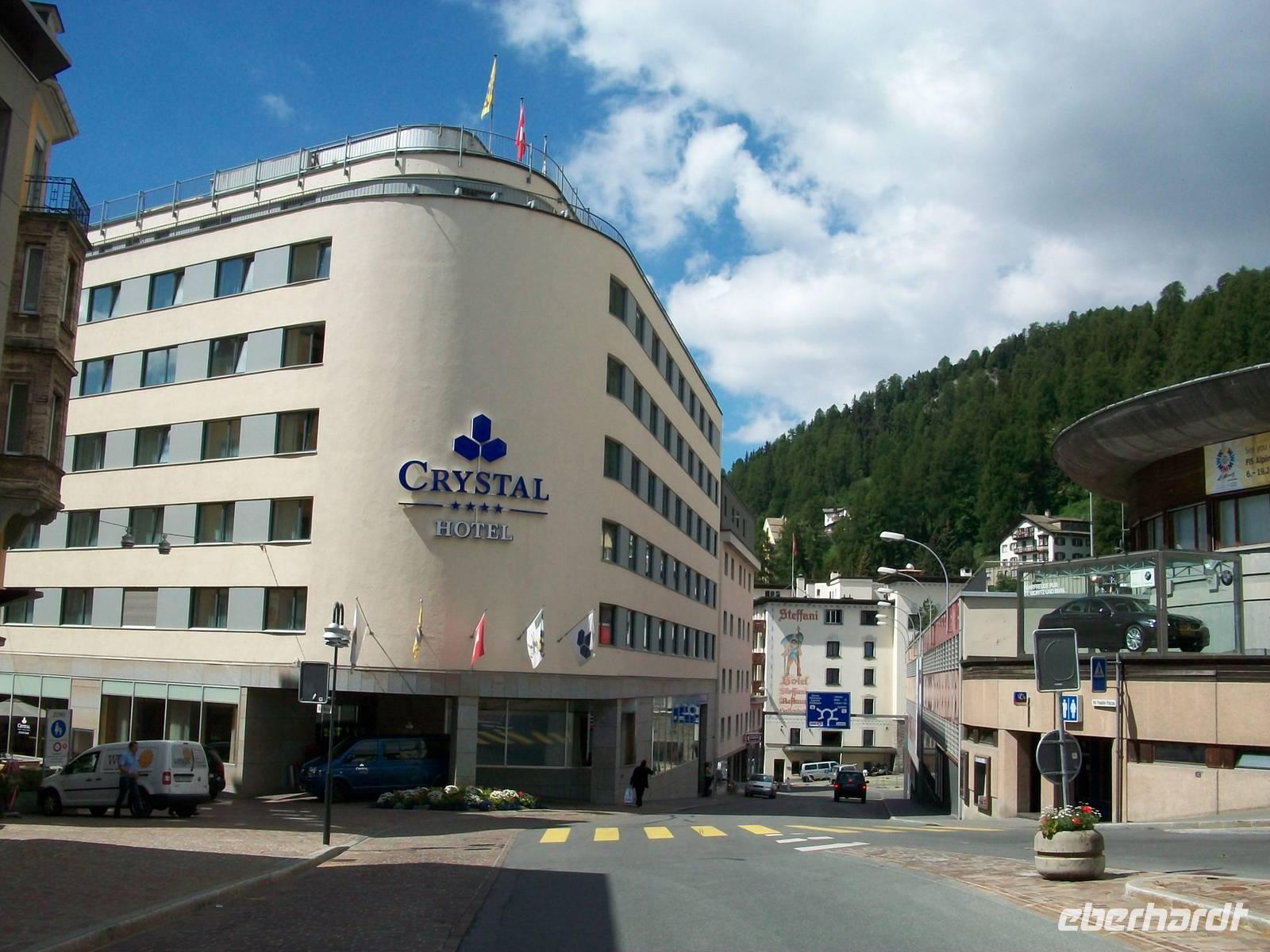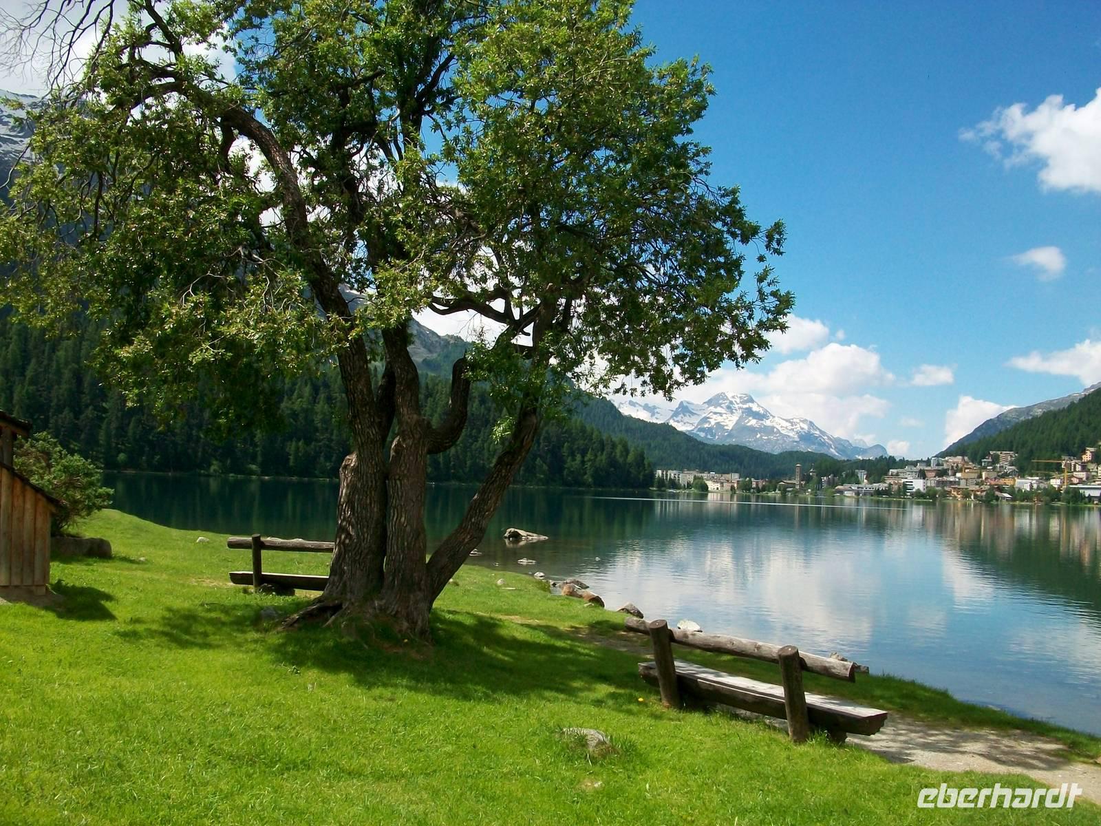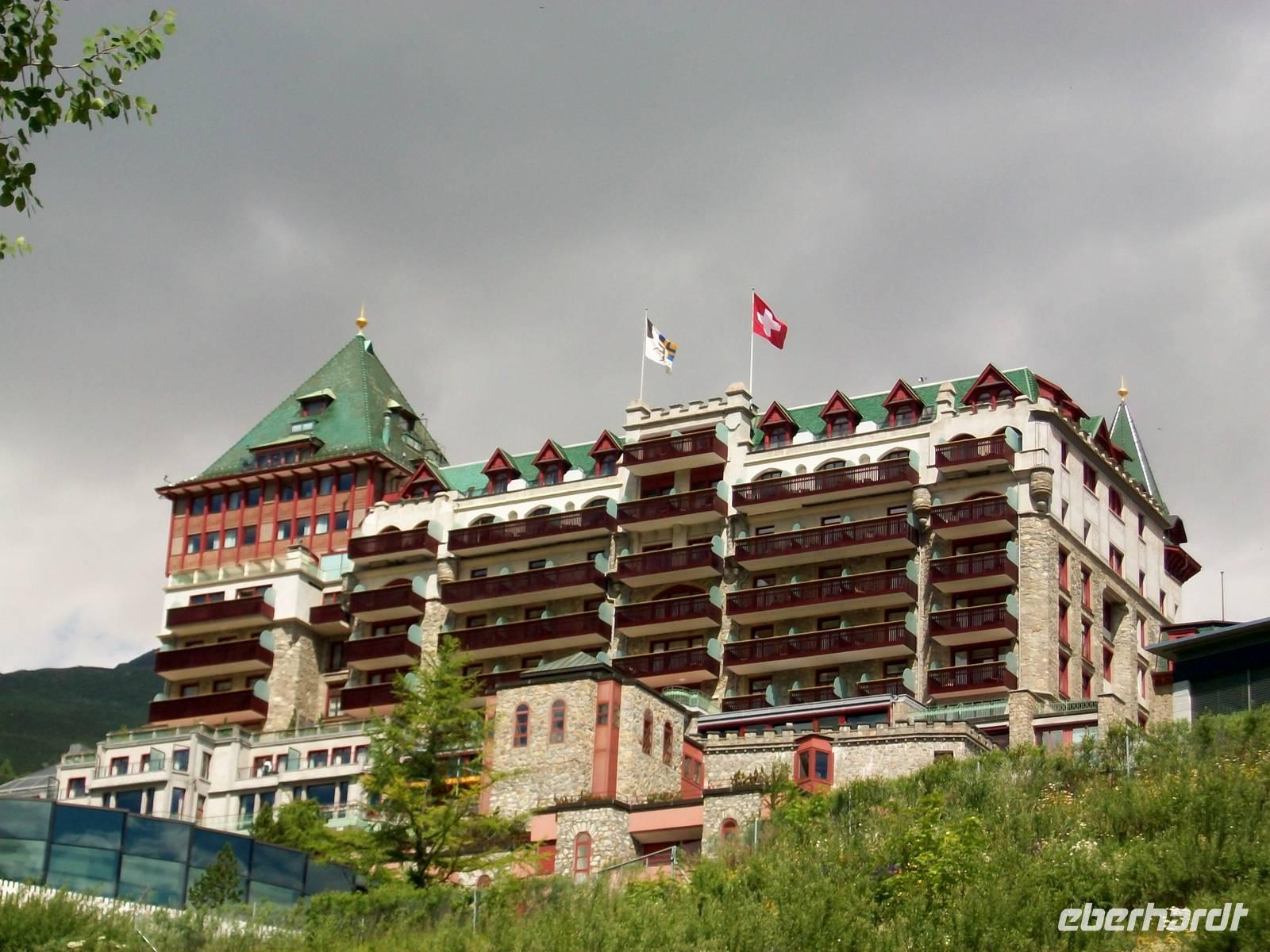 Dann kommen wir in Sankt Moritz an; vom Bahnhof gelangen wir durch das Parkhaus und über eine Rolltreppe hinauf in den mondänen Ort. Bei einem Bummel erschließen wir uns die Welt der Reichen und Schönen, sehen die Edelboutiquen und gepflegten Straßenzüge und unten am See erblicken wir die schöne Hochgebirgslandschaft die den Ort umgibt.