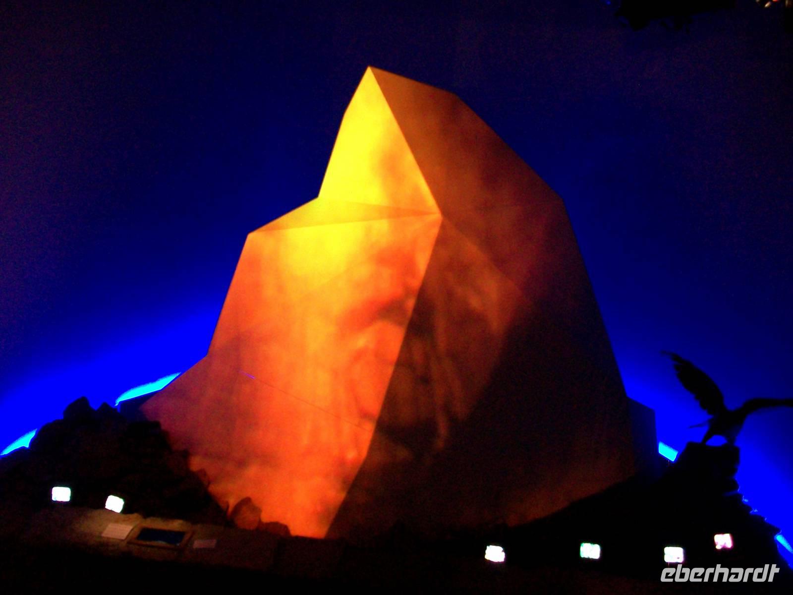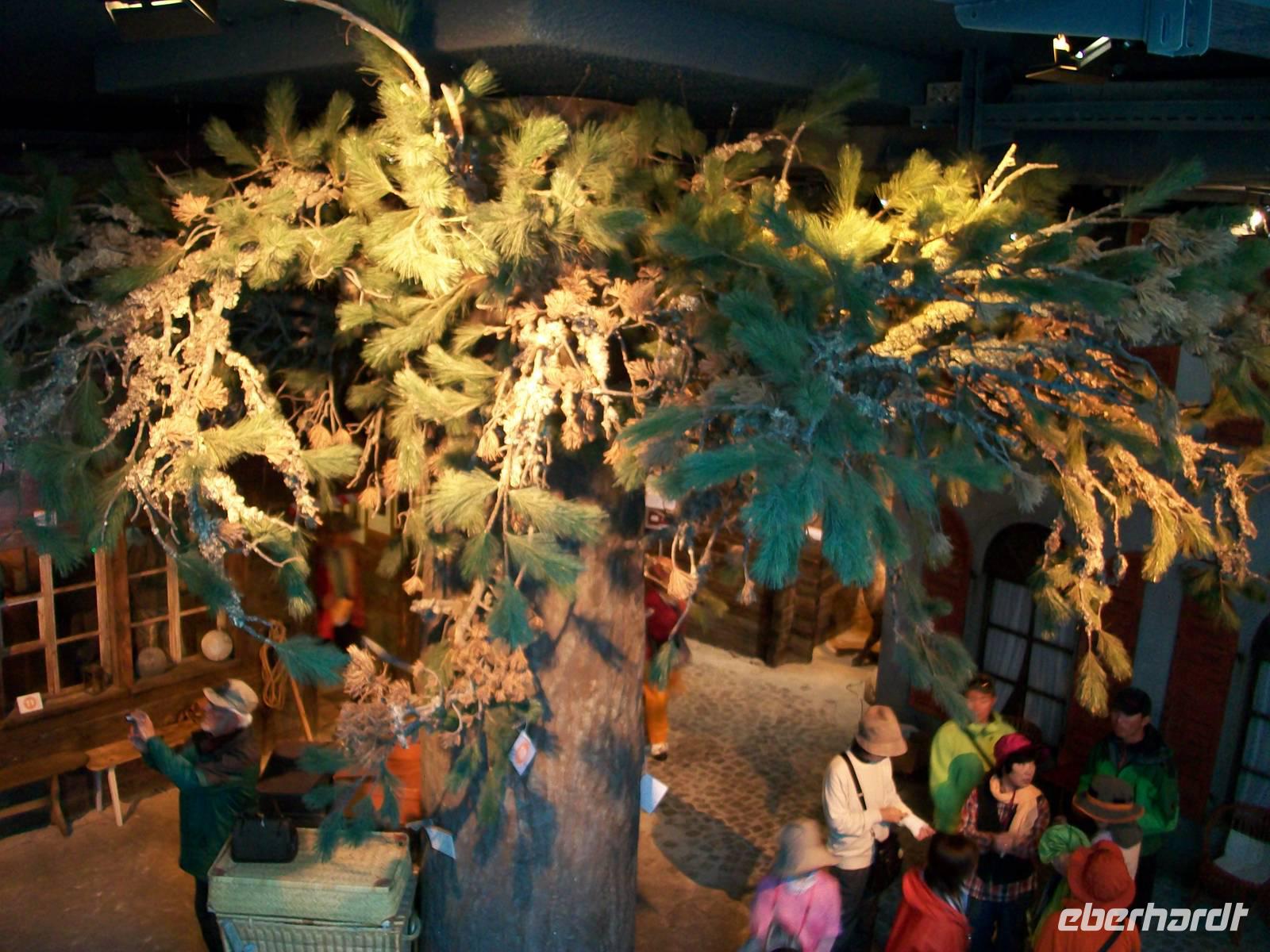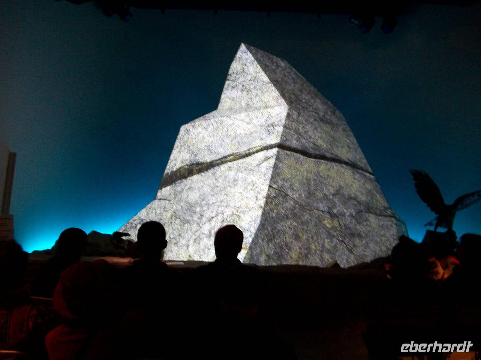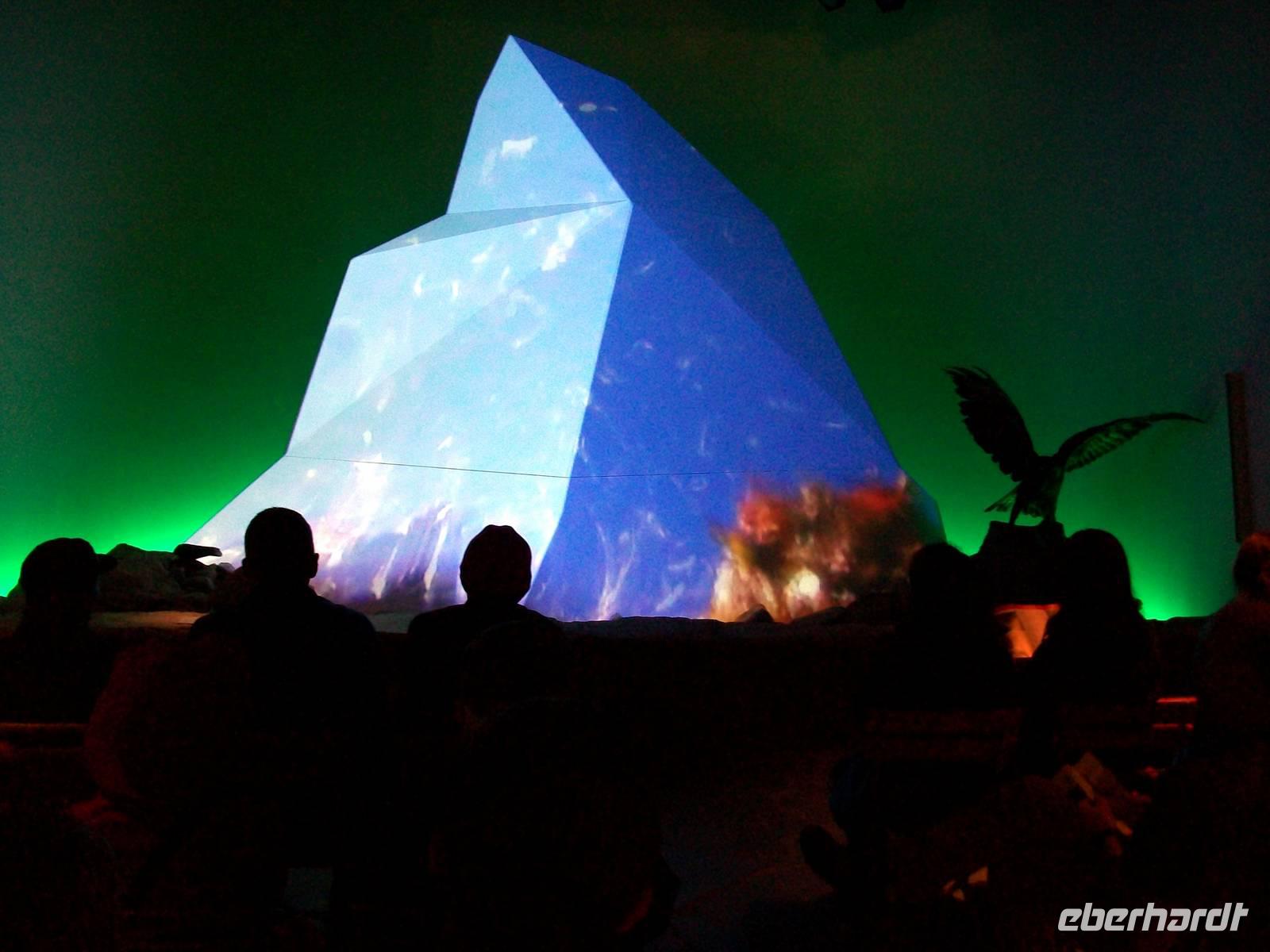 Dann tauchen wir im Museum ab in eine ganz andere Welt. Hier, tief unter der Erde, sehen wir den Ort wie er vor über hundert Jahren ausgesehen haben mag. Da sind sie wieder zu sehen: die Holzhäuser, aber auch eine kleine Kapelle; wir können in die Wohnstuben der Älpler hineinschauen, sehen so manches Getier und eine Hotelrezeption aus dem 19. Jahrhundert. Auf der Leinwand läuft gerade ein Film mit der Bergsteigerlegende Luis Trenker; nach diesen Bildern entfaltet sich vor unseren Augen ein stilisiertes Matterhorn und eine beeindruckende Installation beginnt: der Berg der Berge im Wandel der Jahreszeiten, immer in einem neuen Licht erstrahlend- einfach grandios!