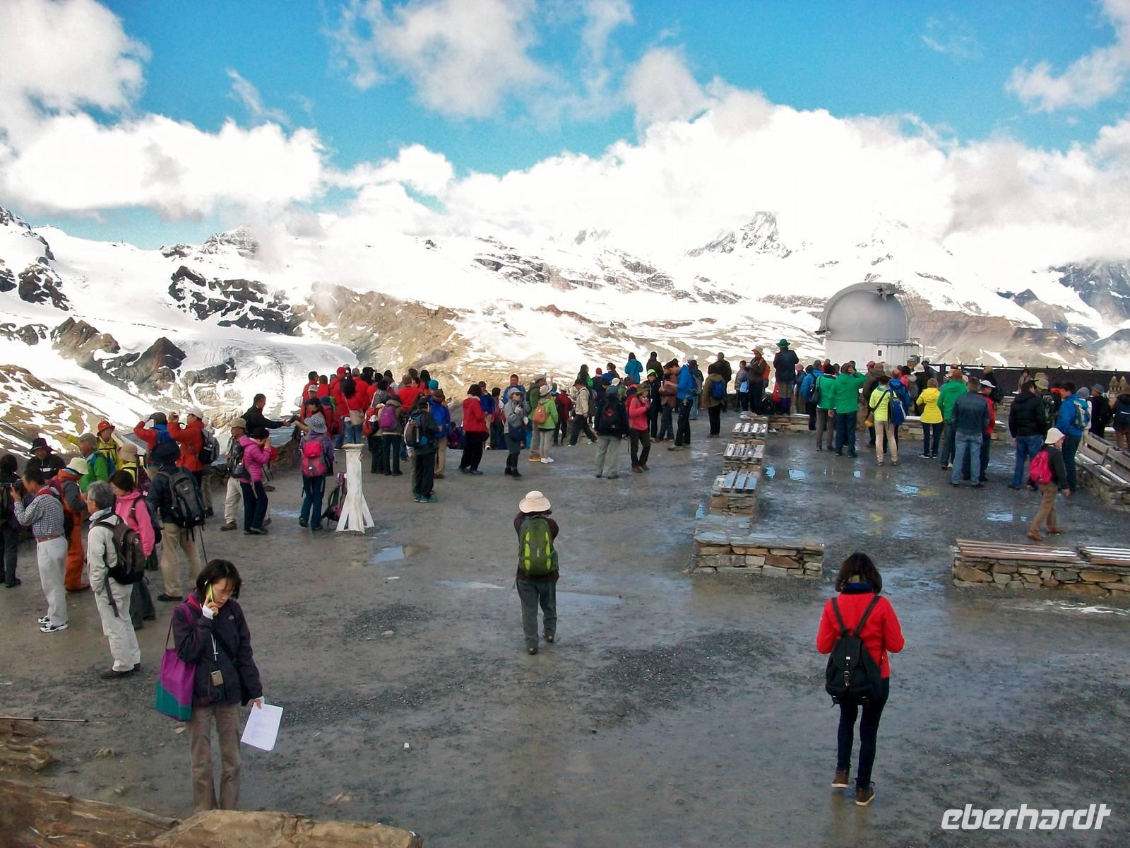 Ein Teil der Gäste wagt den Aufstieg mit der Seilbahn auf fast 4 000 Meter zum Klein- Matterhorn. Oben im ewigen Schnee auf dem zahlreiche Skifahrer unterwegs sind, hat man einen grandiosen Blick auf die Bergwelt und hält den Atem an ob der großartigen Werke der Schöpfung.