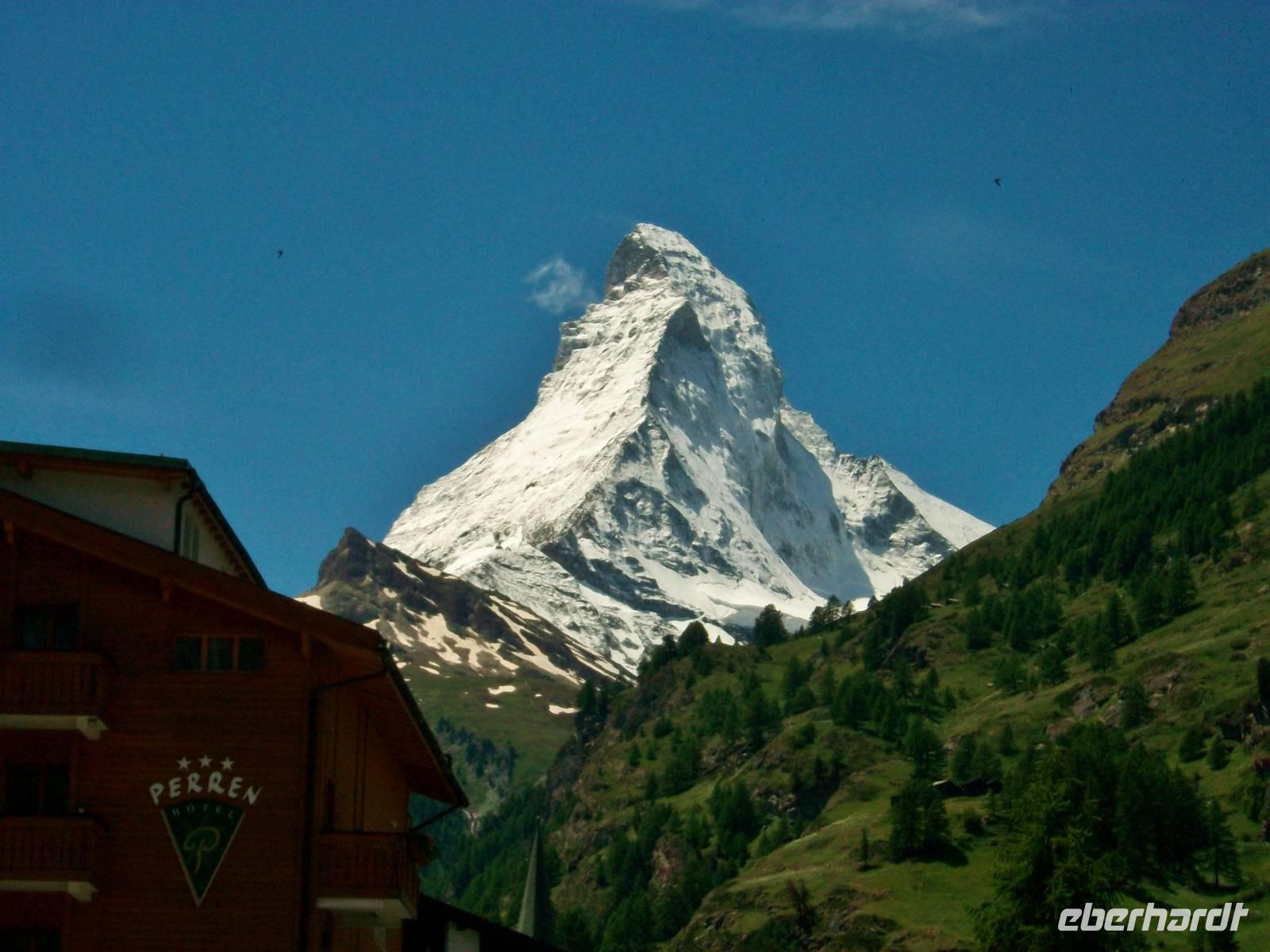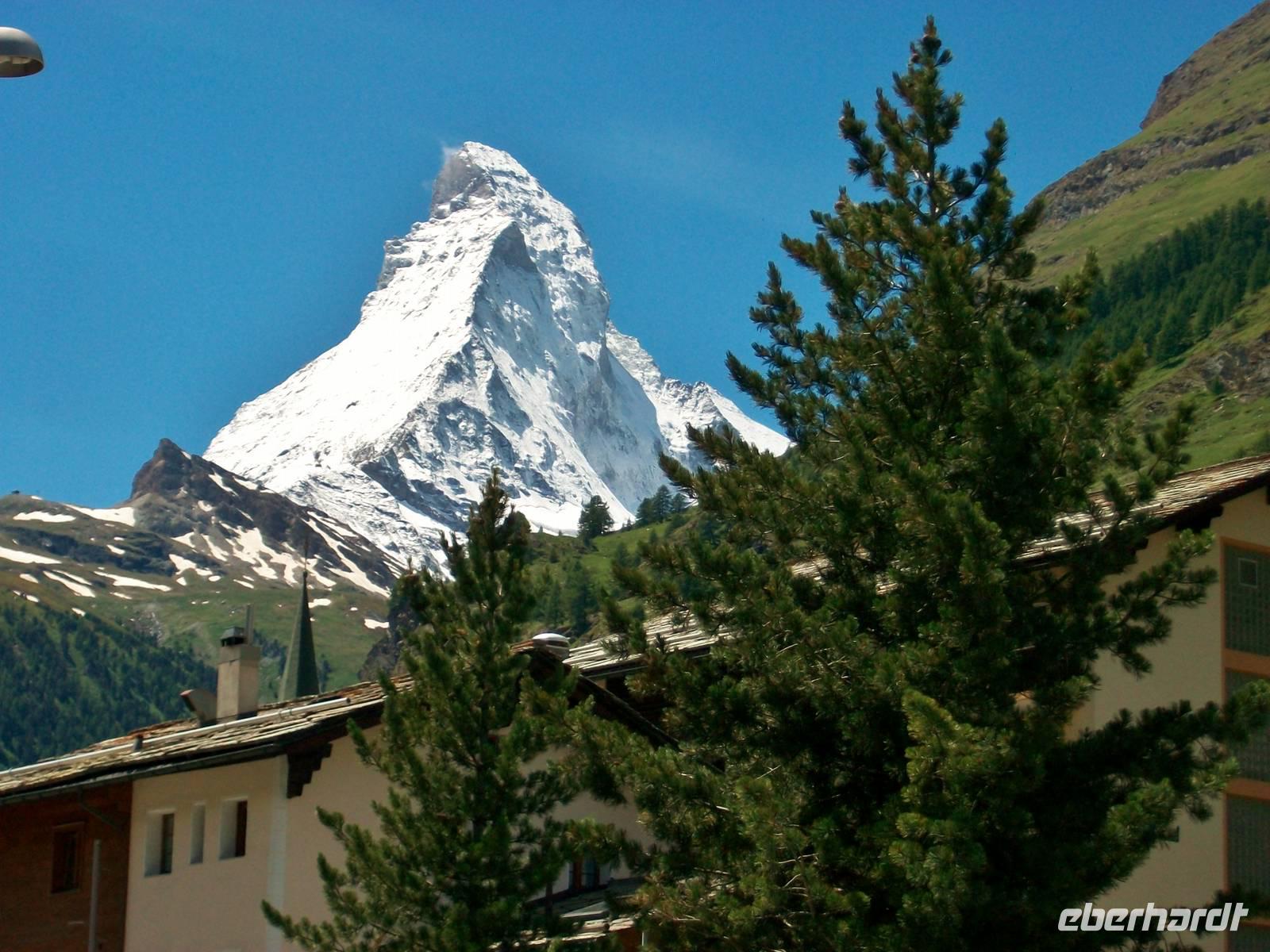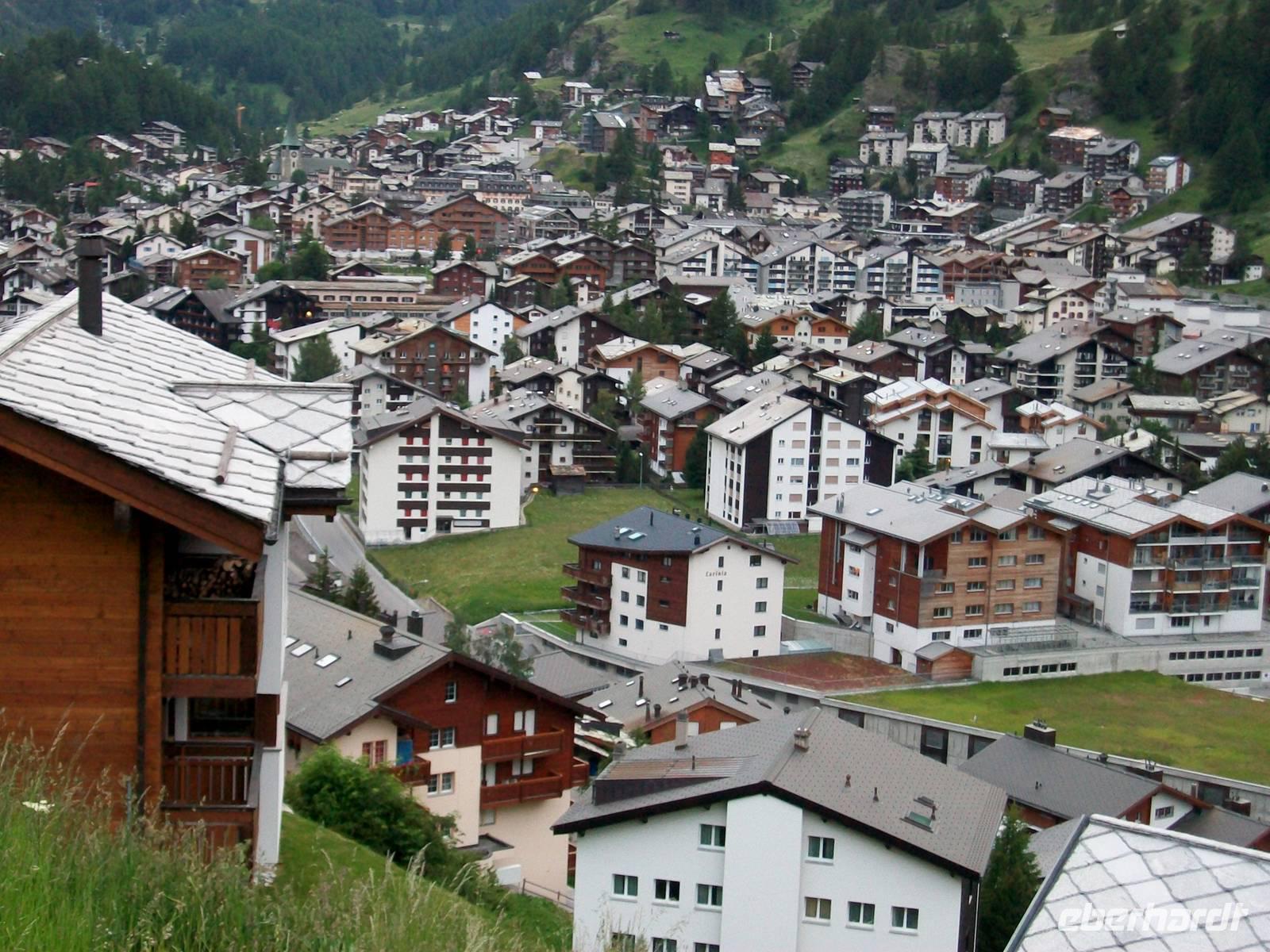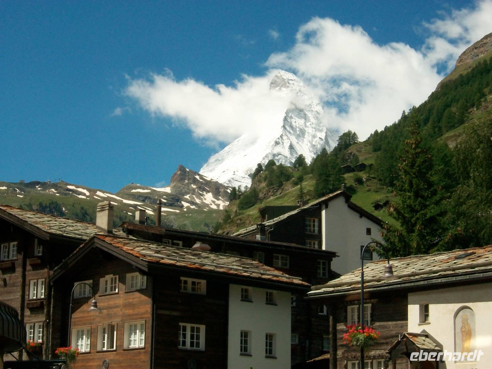 Unten im schönen Ort lohnt ein Bummel entlang der pittoresken Häuser und edlen Geschäfte. Etwas abseits gelangt man ins alte Zermatt um wenig später an der Kirche herauszukommen und über den possierlichen Murmeltierbrunnen zu staunen. Hinter der Kirche befindet sich der sehr gepflegte Friedhof; ein Besuch lohnt schon deshalb, weil es hier eine besondere Abteilung für verunglückte Bergsteiger und deren Führer gibt. Dem Eingeweihten ist so manch Name bekannt, besonders die bei der Erstbesteigung des Matterhorns umgekommen Menschen um Edward Whymper, das war 1865.