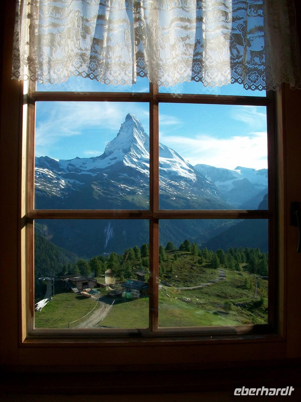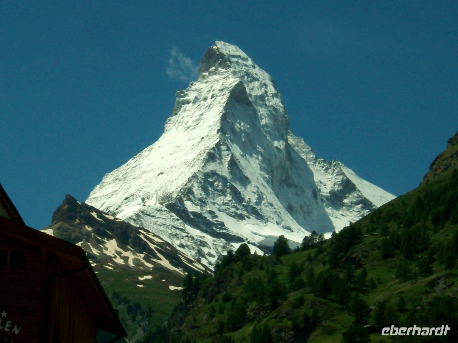 Manch einer nutzt die Zeit zu einer Wanderung hinab, dabei immer wieder die schöne Natur bewundernd; aber auch im Tal, in Zermatt, ist das Matterhorn in seiner vollen Pracht zu sehen. Umrahmt vom Grün des Waldes erstrahlt es im strahlenden Weiß frisch gefallenen Schnees.