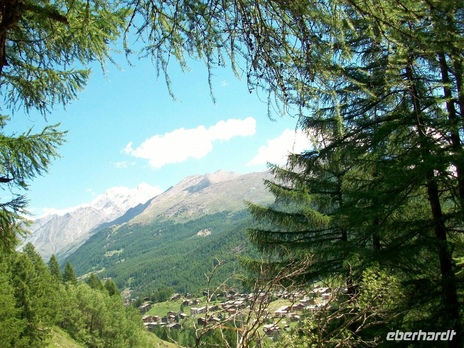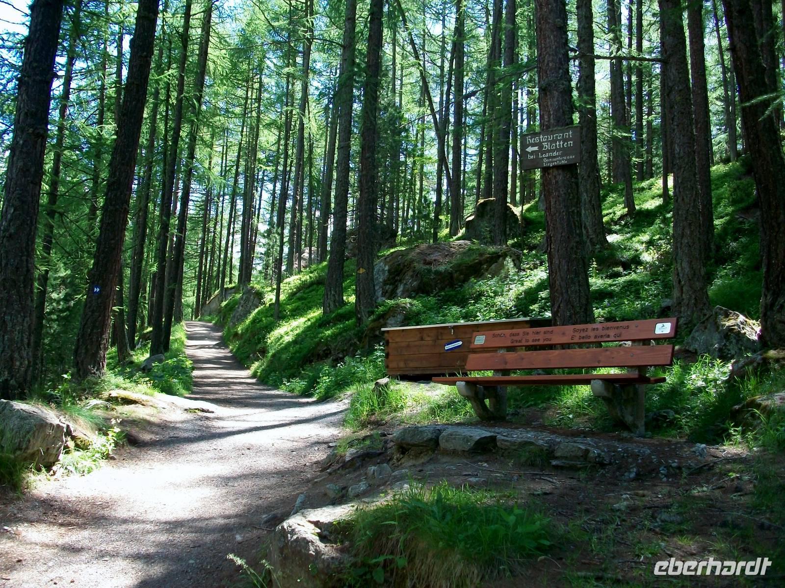 Hinter Zermatt führen zahlreiche Wege in eine schöne Natur; schnell ist der Wanderer im gesunden Wald eingetaucht und kann mit vollen Zügen die saubere Gebirgsluft einatmen. Auf einer der zahlreichen Bänke platzgenommen, lauscht er dem Konzert der Vögel welches ihm hier geboten wird.