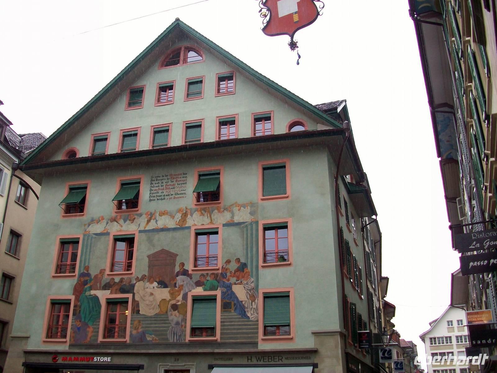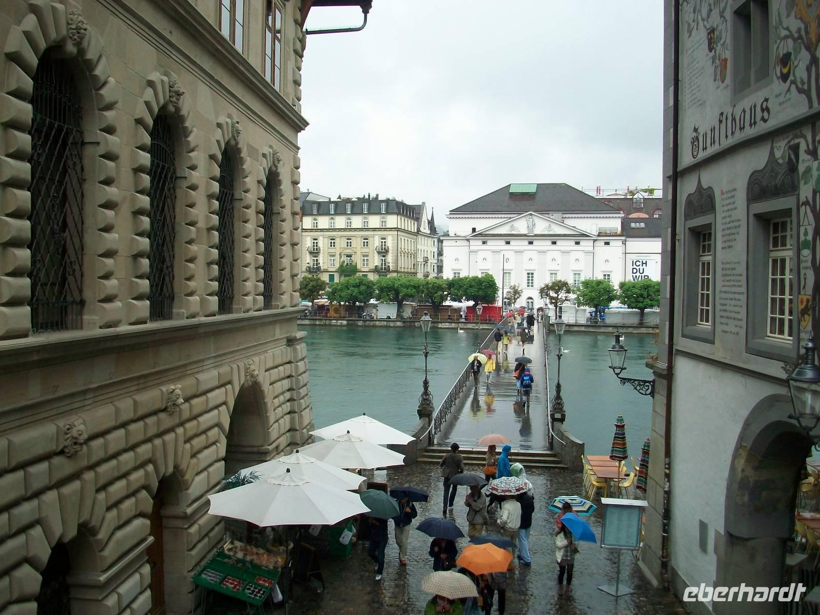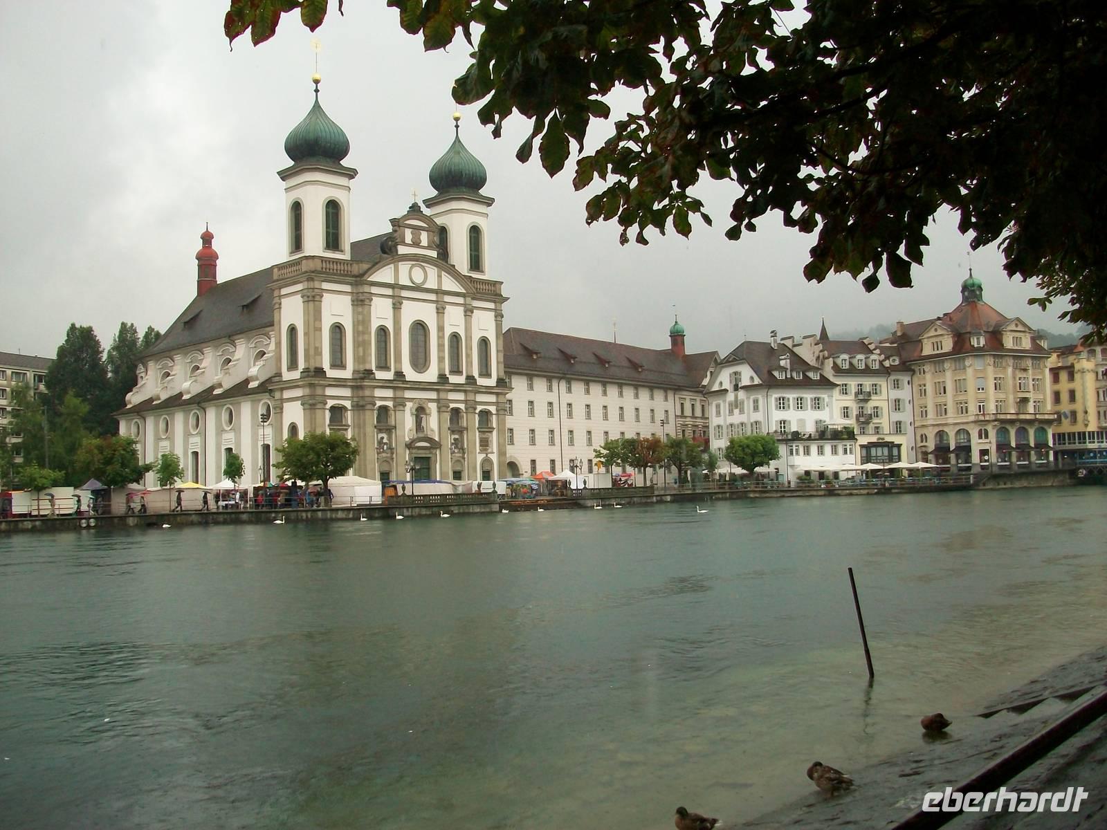 Dann geht es das Haslital abwärts. Auch hier, im oberen Teil, dominiert unwirtliches Land welches aber nicht ohne Reiz ist. Vorbei an den Stauseen gelangen wir wieder unter die Baumgrenze und sind fortan in grüner Vegetation unterwegs. Dem Fluss Aare folgen wir eine Weile um dann später über den Brünigpass in die Zentralschweiz zu gelangen. Leider hat Petrus nun auch endgültig die Schleusen des Himmels geöffnet; Regen tropft gegen den Bus als wir in Luzern anlangen. Dennoch, dieser Ort ist so reizvoll, auch bei diesem Wetter kann man an ihm nicht vorbei fahren!