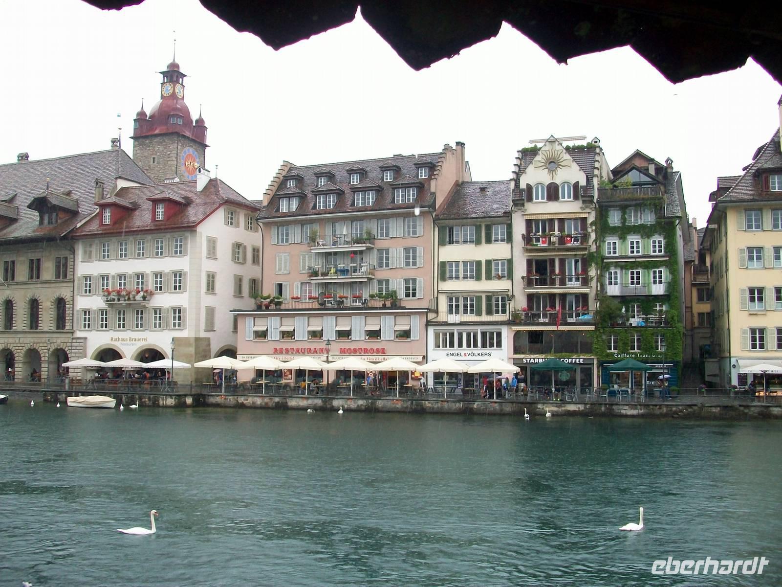 Und so legen wir hier eine Pause ein; wenige Schritte führen uns in die Altstadt mit den pittoresken Häusern und ein Gang über die altehrwürdige Kapellbrücke mit dem schönen Blumenschmuck ist ein Muss für alle Besucher von Luzern.