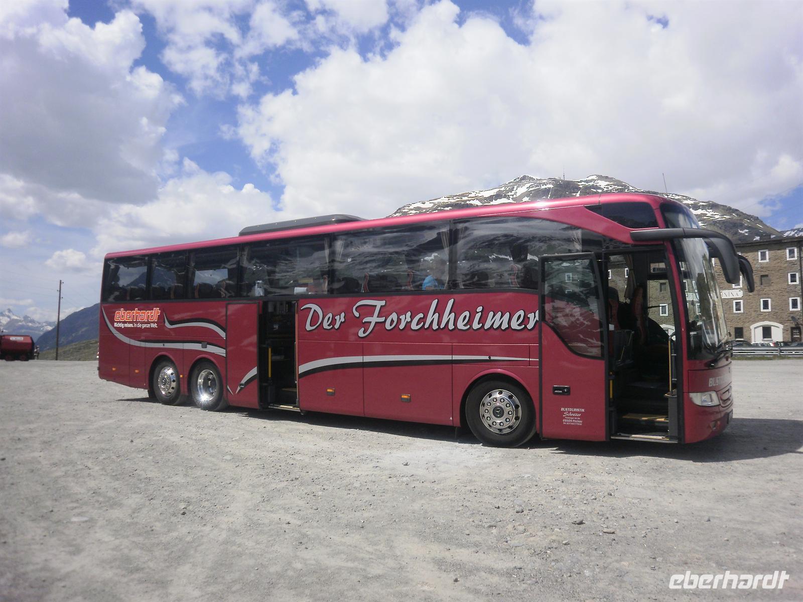 Pünktlich um 6 Uhr morgens ging es am Dresdner Flughafen los. Die letzten Gäste stiegen am Autohof in Zwickau-Ost zu und damit war unsere Reisegruppe mit 22 Personen komplett. Wie bei unseren Reisen üblich, legten wir im Abstand von jeweils etwa zwei Stunden eine Pause ein. So konnte jeder mal etwas frische Luft schnappen beziehungsweise sich die Beine vertreten. Die Fahrt führte uns über Nürnberg und Ulm in Richtung Bodensee. Das Wetter war optimal und so ging es für uns ein kleines Stück dem Bodensee entlang, bereits bei Lindau verließen wir somit die Autobahn.