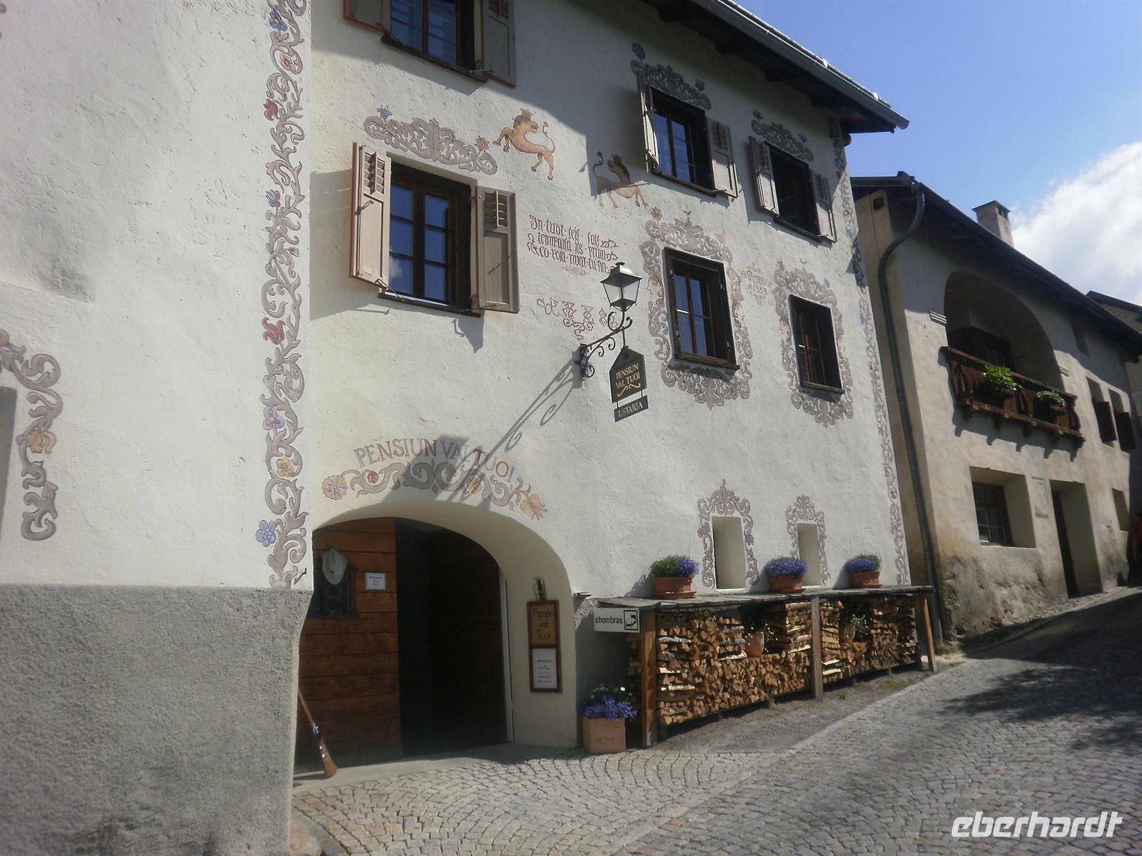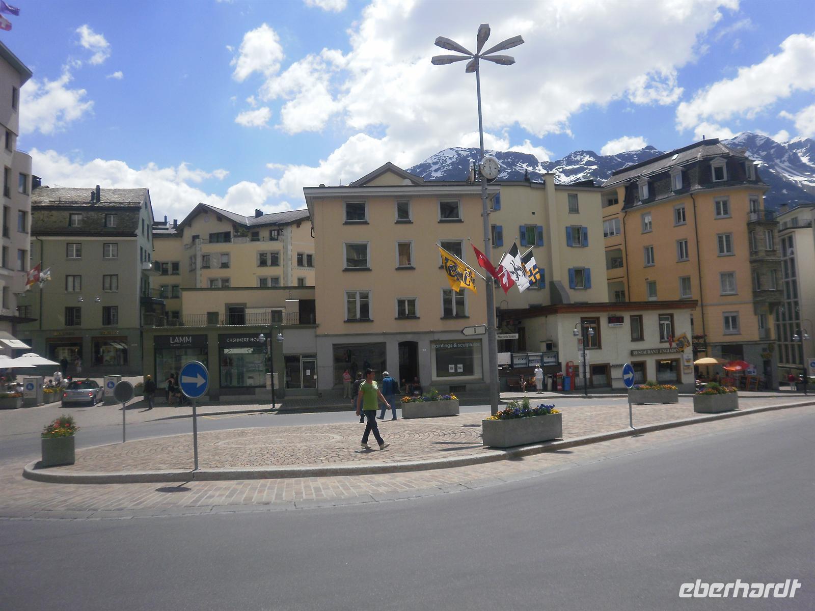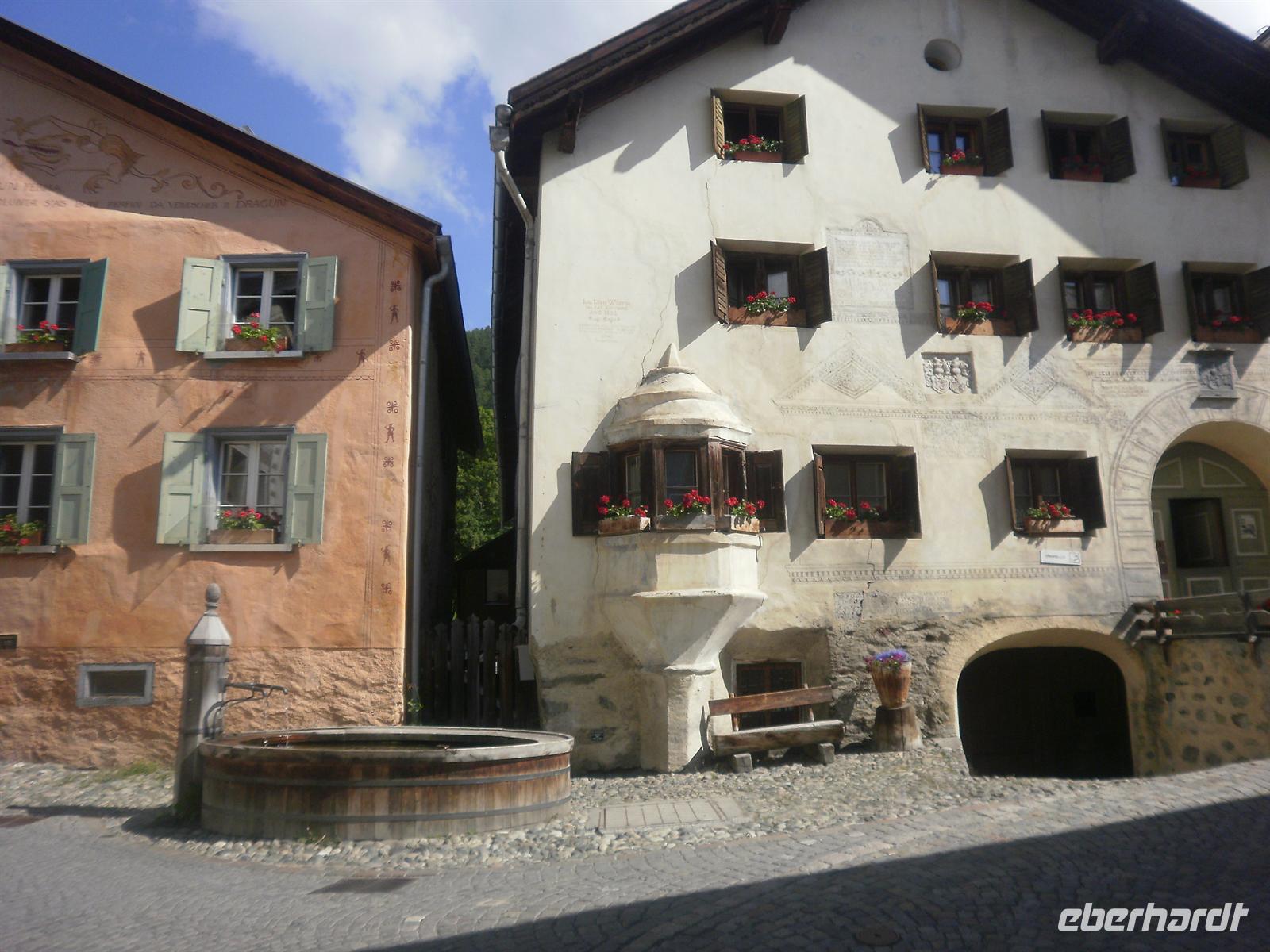 Zuerst ging es für uns nach Guarda, einem typisch Engadiner Dorf, das ich vor einigen Jahren mal entdeckt habe und unseren Gästen unbedingt zeigen musste. Guarda hat noch heute ein intaktes Ortsbild, wie man es leider nur noch selten sieht. Während die Gebäude in den Hochburgen des Tourismus, vor allem aber in St. Moritz, Hotelbauten weichen mußten, sieht man in Guarda noch sehr viele Häuser im Engadiner Baustil. Kennzeichnend für das Engadiner Haus sind die tief eingelassenen Fenster, die Eingangstore und die wertvollen Sgraffito-Malereien. Von Guarda genießt man übrigens auch einen herrlichen Ausblick auf das Inntal, denn der Ort liegt auf einer Terrasse oberhalb des Inntals. Nun führte uns die Fahrt durch die Ortschaften Susch, Zernez, vorbei an Zuoz und Samedan nach St. Moritz. St. Moritz ist in erster Linie als Wintersportort bekannt, im Sommer ist hier so gut wie gar nichts los.