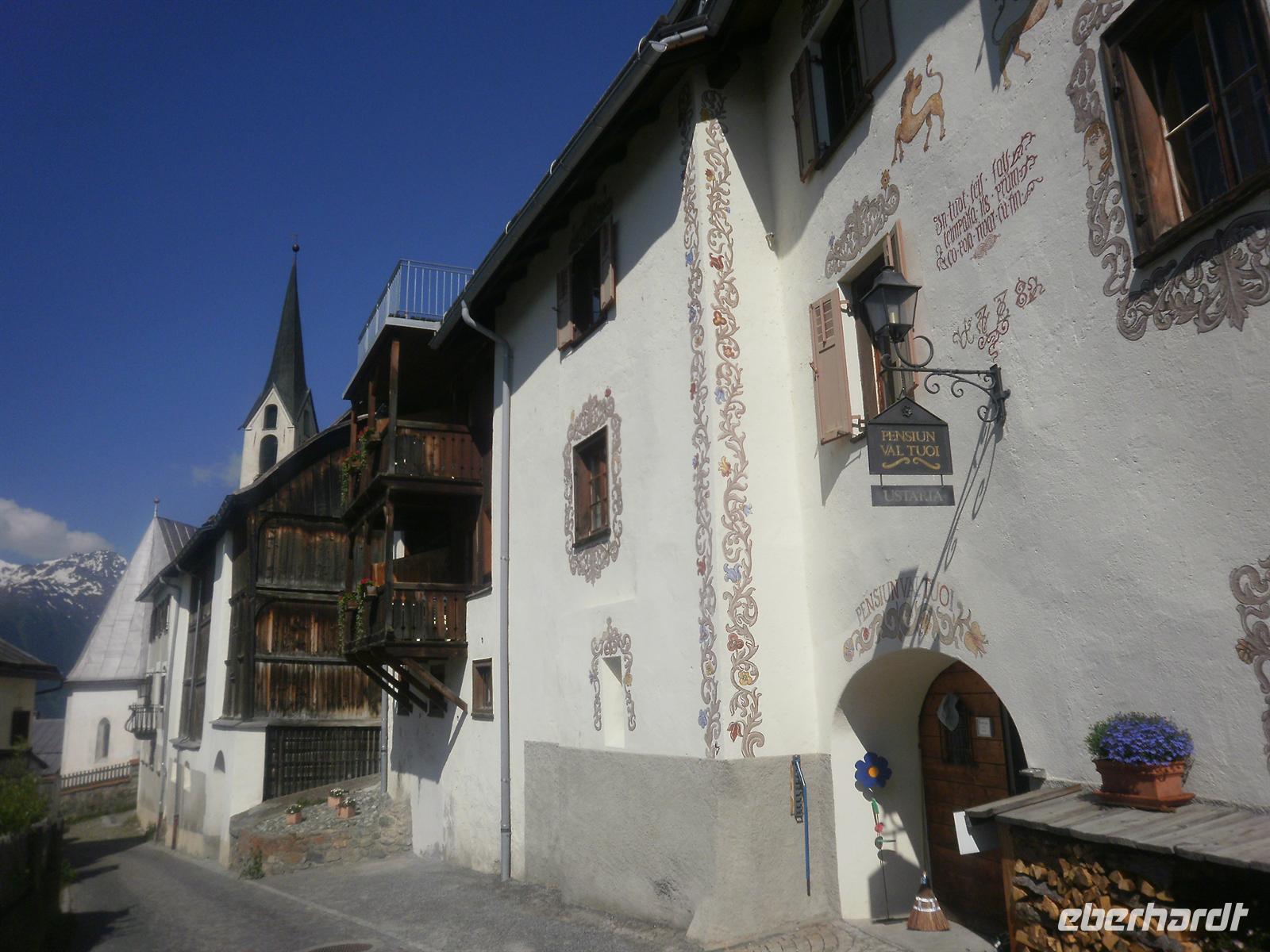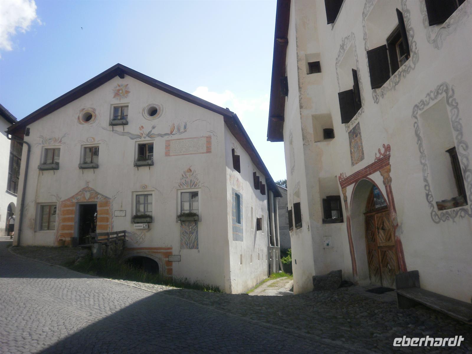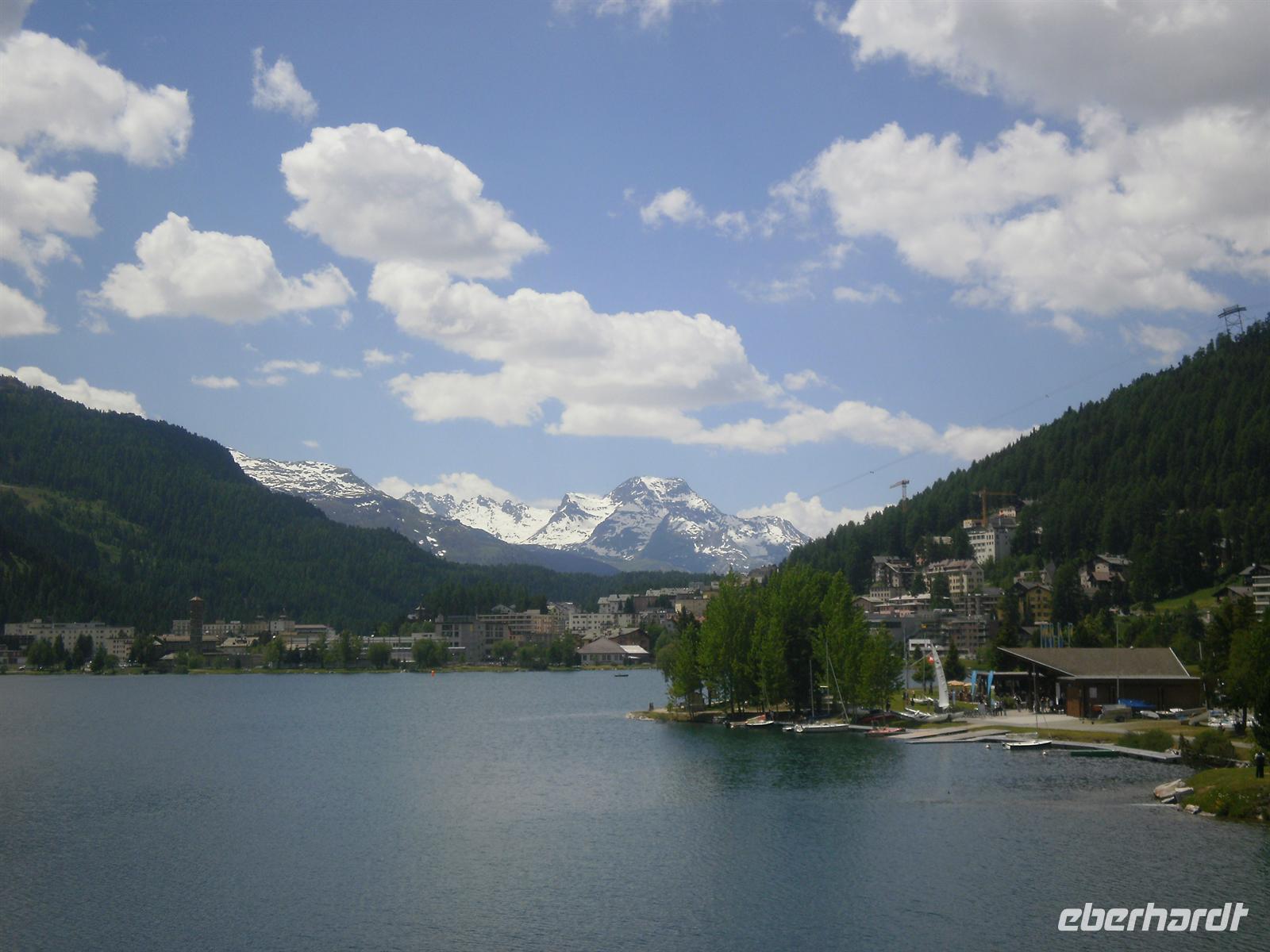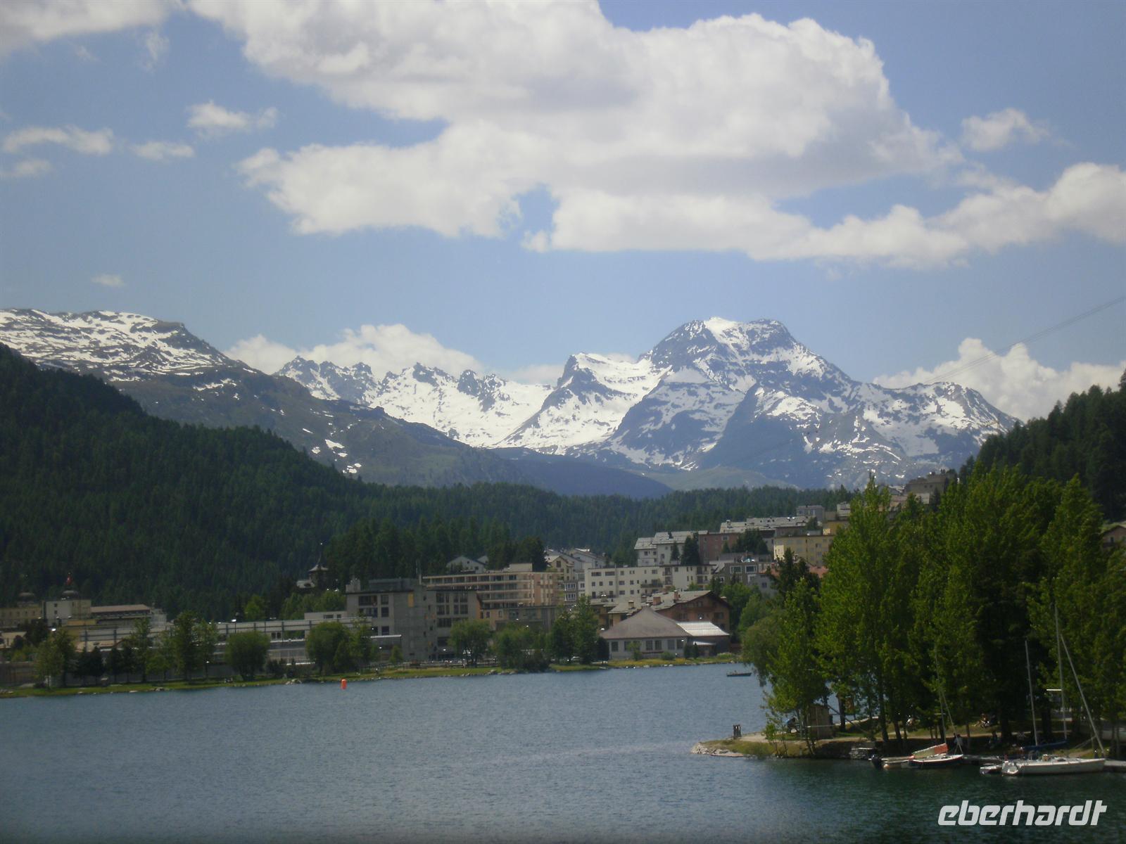 Zuerst ging es für uns nach Guarda, einem typisch Engadiner Dorf, das ich vor einigen Jahren mal entdeckt habe und unseren Gästen unbedingt zeigen musste. Guarda hat noch heute ein intaktes Ortsbild, wie man es leider nur noch selten sieht. Während die Gebäude in den Hochburgen des Tourismus, vor allem aber in St. Moritz, Hotelbauten weichen mußten, sieht man in Guarda noch sehr viele Häuser im Engadiner Baustil. Kennzeichnend für das Engadiner Haus sind die tief eingelassenen Fenster, die Eingangstore und die wertvollen Sgraffito-Malereien. Von Guarda genießt man übrigens auch einen herrlichen Ausblick auf das Inntal, denn der Ort liegt auf einer Terrasse oberhalb des Inntals. Nun führte uns die Fahrt durch die Ortschaften Susch, Zernez, vorbei an Zuoz und Samedan nach St. Moritz. St. Moritz ist in erster Linie als Wintersportort bekannt, im Sommer ist hier so gut wie gar nichts los.