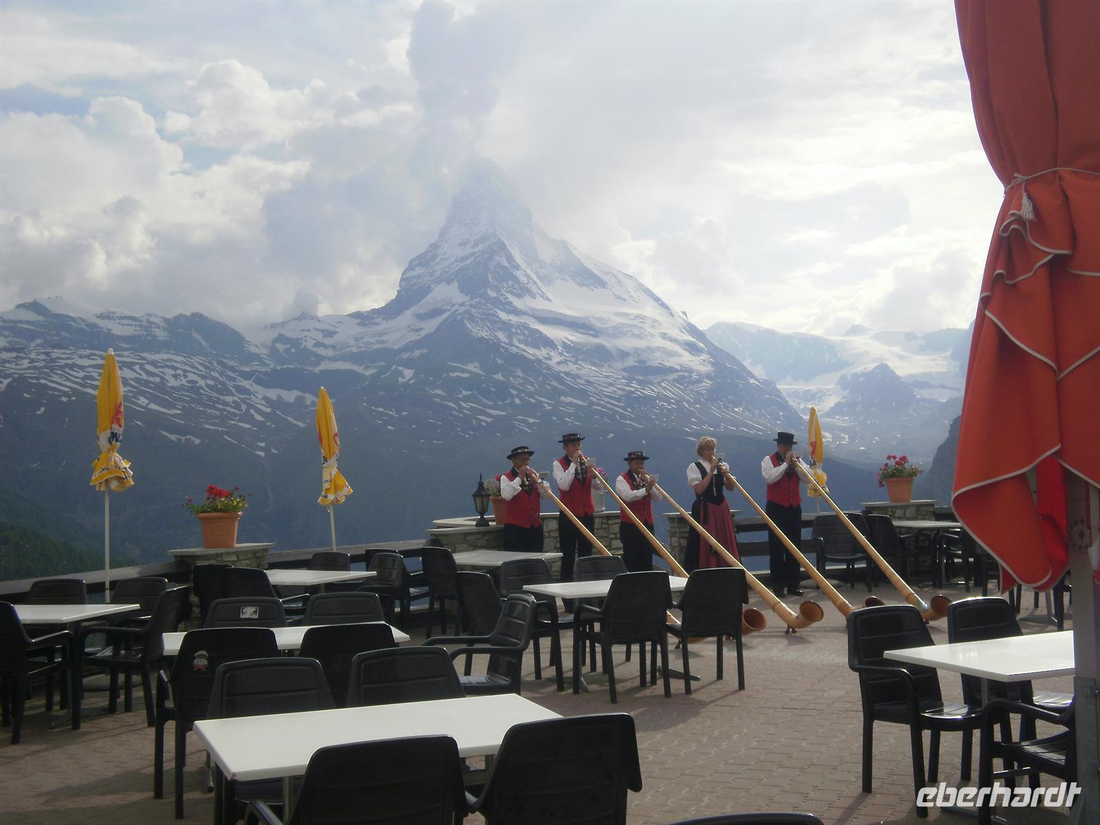 Jetzt hatten wir unseren freien Tag in Zermatt und auch heute meinte es das Wetter wieder gut mit uns. Bei herrlichem Sonnenschein und einer super Sicht fuhren die meisten Gäste schon am zeitigen Vormittag mit der Zahnradbahn auf den 3.089 Meter hohen Gornergrat. Das Panorama und der Blick auf einige Viertausender ist atemberaubend und einfach unbeschreiblich! Auch für einen Spaziergang in Zermatt blieb noch genügend Zeit. Besonders interessant ist das alte Zermatt mit den typisch Walliser Holzhäusern.