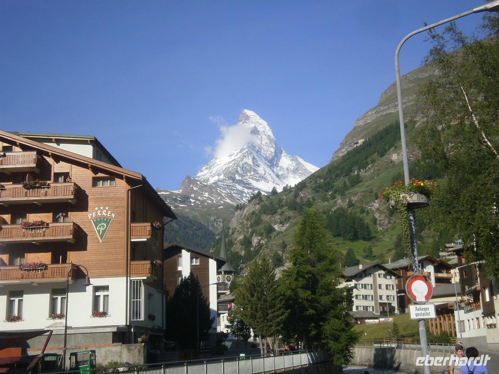 Am Abend erreichten wir schließlich unser Ziel Zermatt und ein traumhafter Blick auf das Matterhorn und die anderen umliegenden Berge erwartete uns. Gemütlich spazierten wir nunmehr zum Hotel "Perren", unserem Hotel für die nächsten zwei Nächte. Einige von uns hatten Glück und sogar ein Zimmer mit "Matterhornblick"!