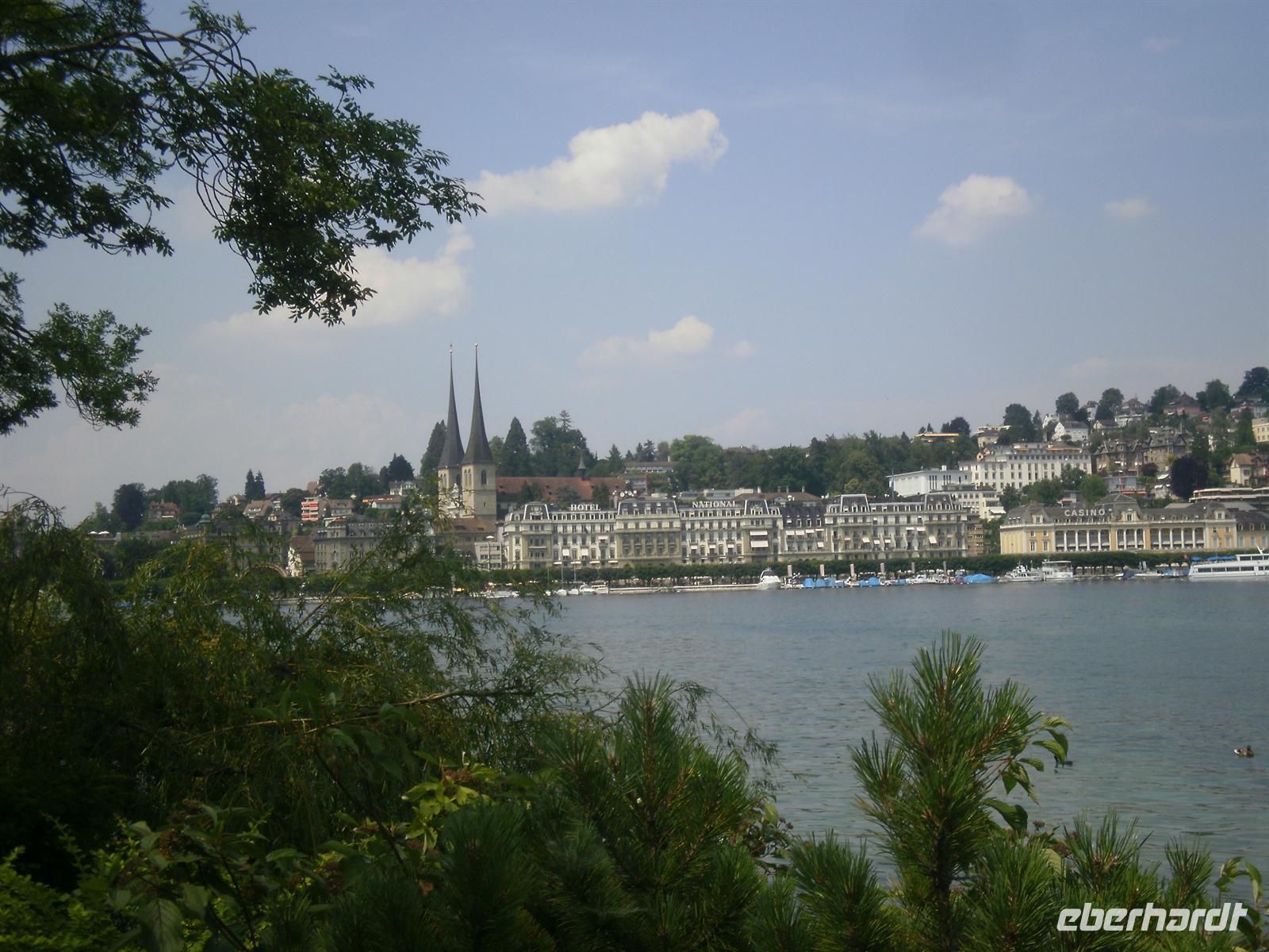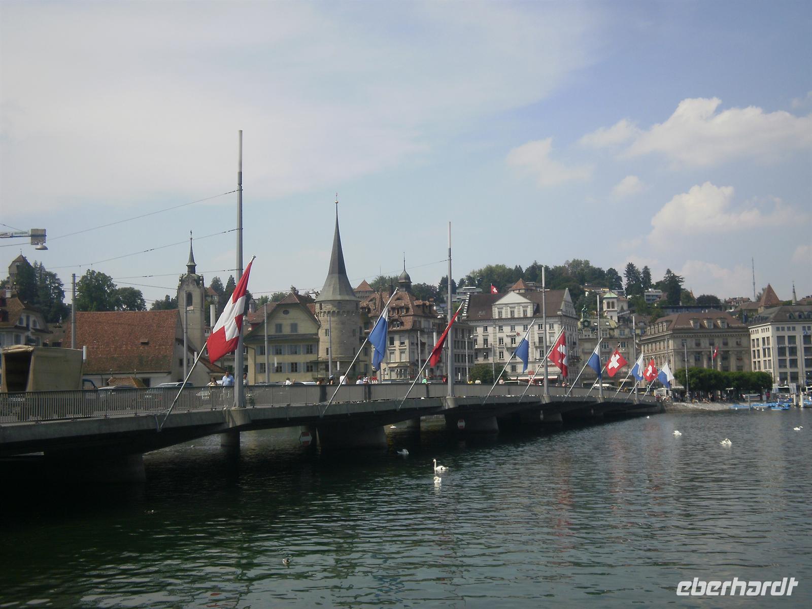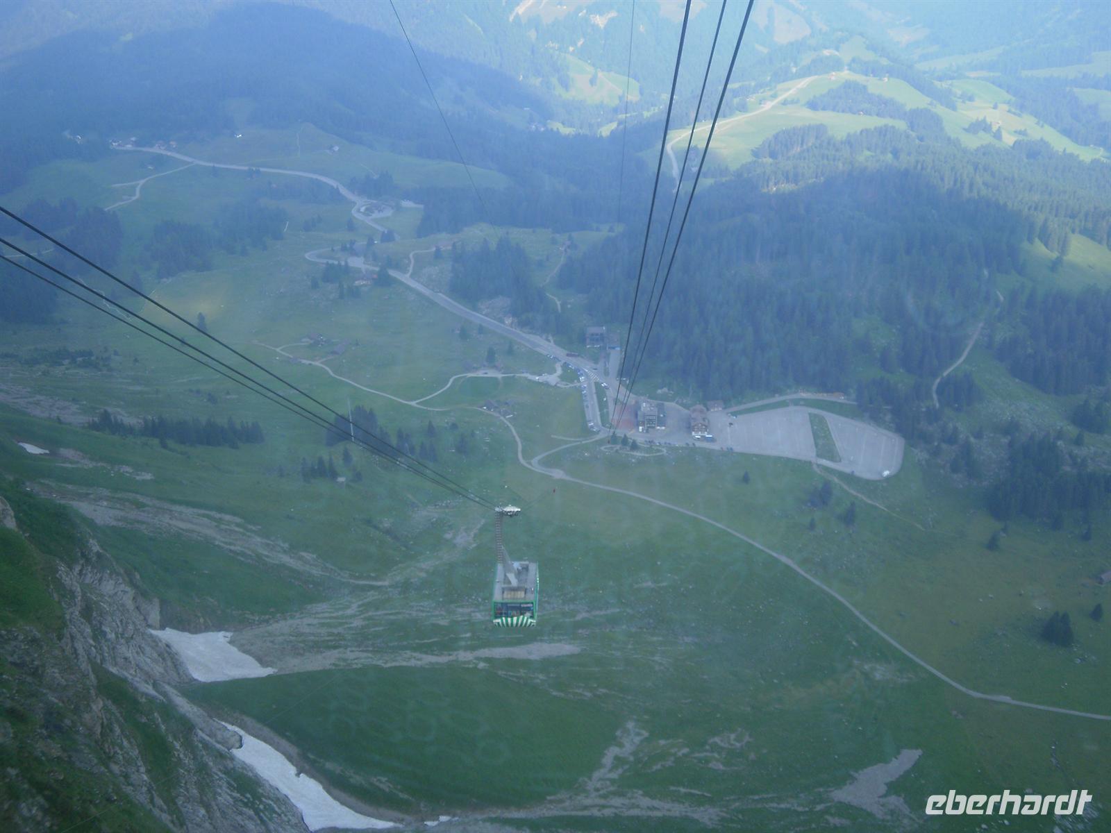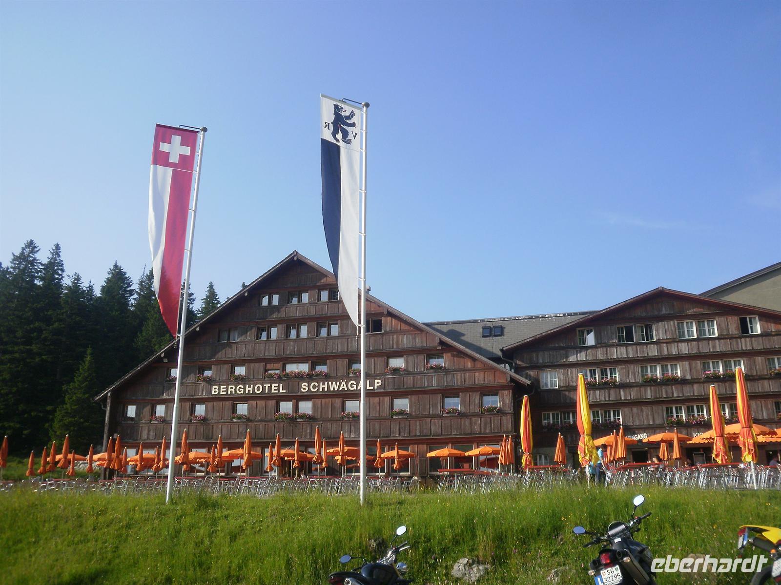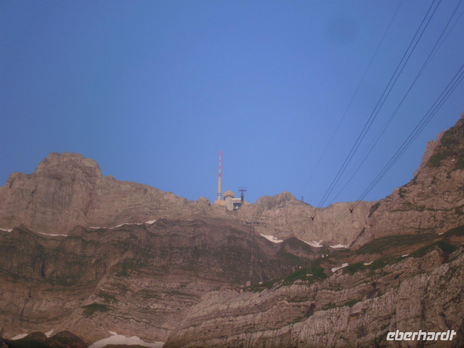 Unser Buschauffeur Frank, das Hotel und letztendlich die Bahn kümmerten sich darum, dass alle Koffer rechtzeitig im Bus waren. Nach einer etwa 2-stündigen Fahrt über Visp, Brig und das obere Rhonetal beziehungsweise einem kurzen Fotostopp mit Blick auf den Rhonegletscher erreichten wir den 2165 Meter hohen Grimselpass. Auf der Passhöhe schauten sich die meisten von uns im Murmeltierpark um - wie niedlich! Am Nachmittag erreichten wir schließlich Luzern mit der berühmten Kapellbrücke. So konnten wir immerhin behaupten, die zwei meistfotografierten Bildmotive der Schweiz wahrhaftig gesehen zu haben! Die Kapellbrücke wurde übrigens in der ersten Hälfte des 14. Jahrhunderts als Teil der Stadtbefestigung errichtet und hat ihren Namen von der benachbarten St.-Peters-Kapelle. Am Abend kamen wir nunmehr an unserem letzten Übernachtungsort an - der etwa 1.300 Meter hoch gelegenen Schwägalp im Appenzeller Land. Diese Ruhe dort war einfach himmlisch... Einige Gäste glaubten mir sogar, daß einige dort in Hütten schlafen müßten - das war natürlich ein Spaß, aber etwas Spaß mußte schließlich auch sein! Letztendlich freuten sich alle darüber, daß sie ein gemütliches Zimmer hatten.