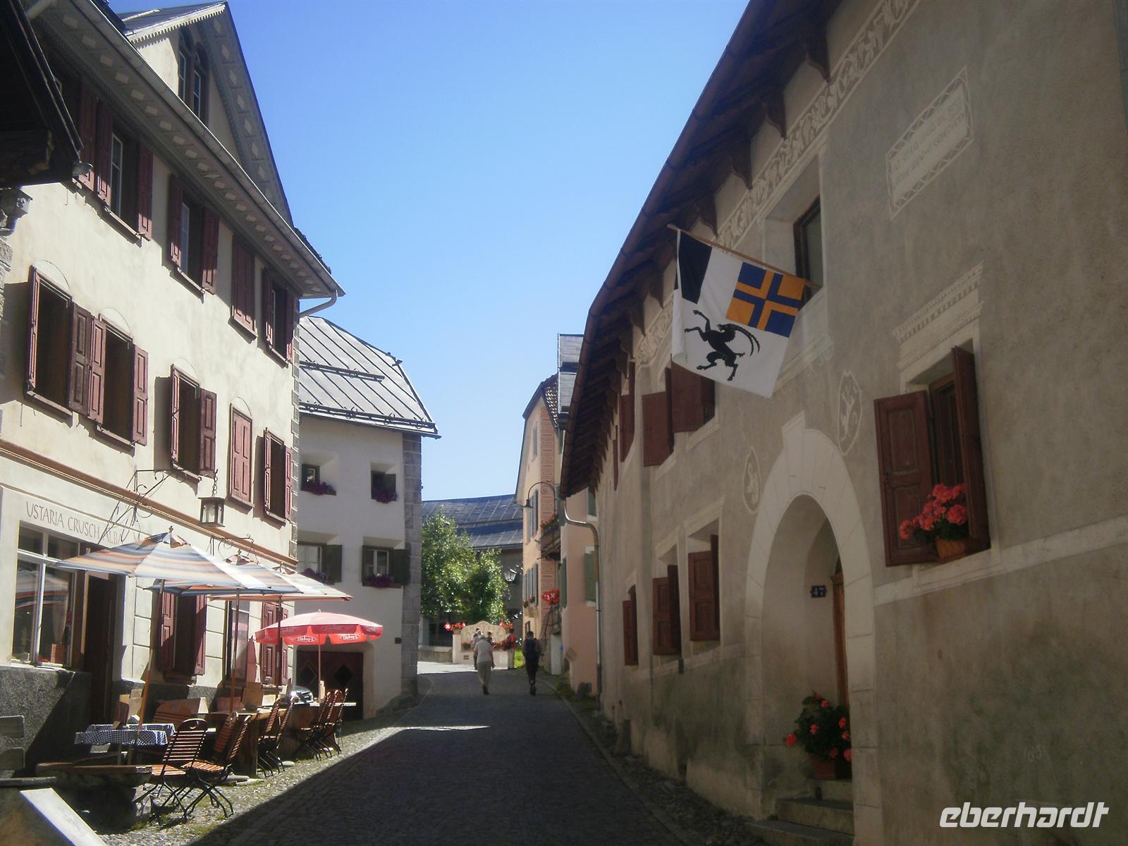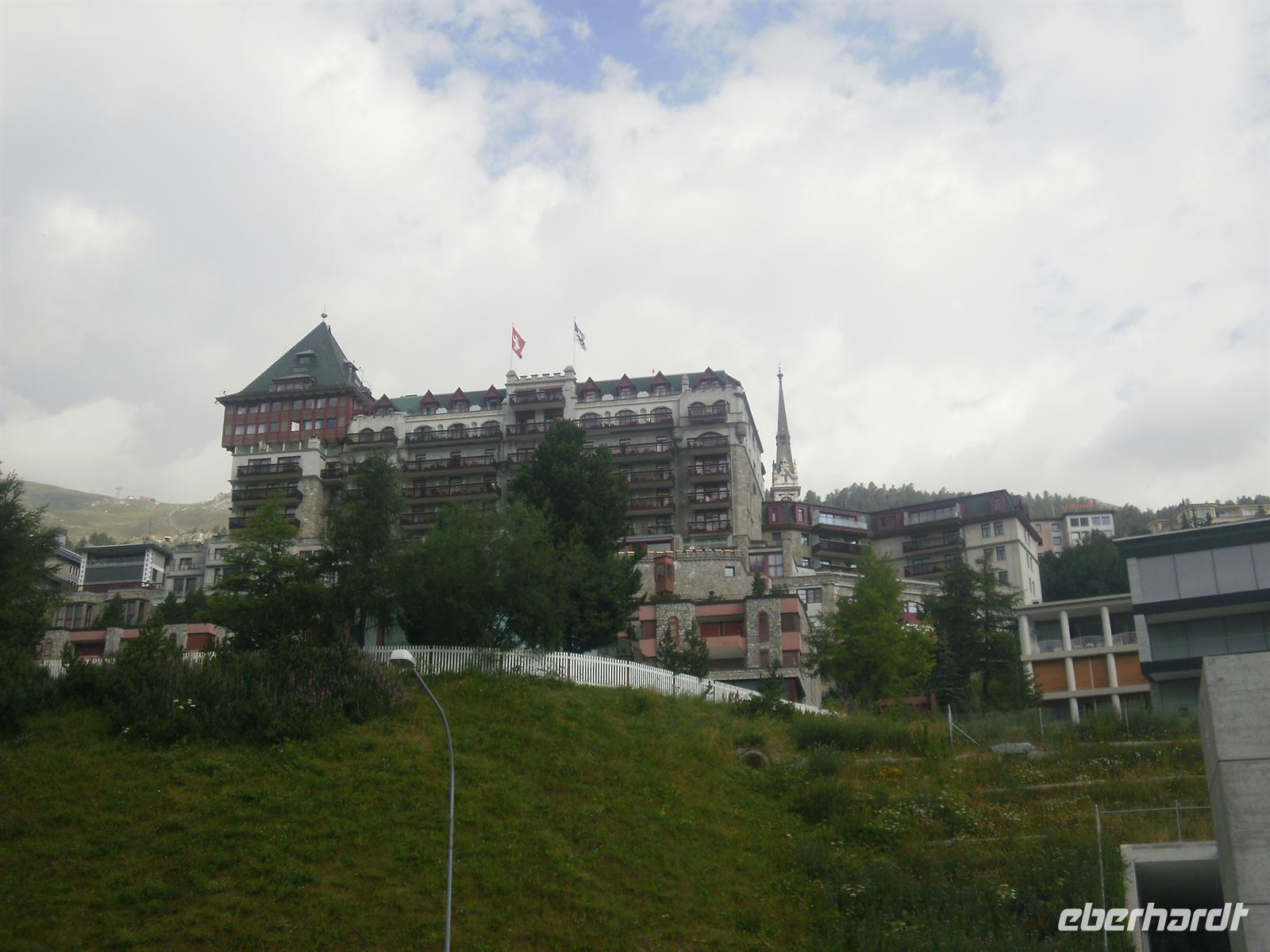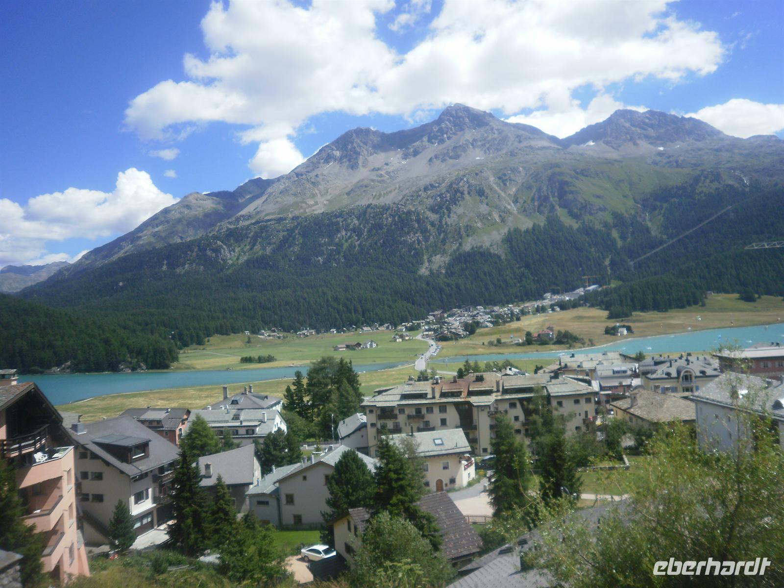 Im Engadin spricht man Rätoromanisch und dort sagt man En, wenn man vom Inn spricht. Zuerst ging es für uns nach Guarda, einem typisch Engadiner Dorf, das ich vor einigen Jahren mal entdeckt habe und unseren Gästen unbedingt zeigen musste. Guarda hat noch heute ein intaktes Ortsbild, wie man es leider nur noch selten sieht. Während die Gebäude in den Hochburgen des Tourismus, vor allem aber in St. Moritz, Hotelbauten weichen mußten, sieht man in Guarda noch sehr viele Häuser im Engadiner Baustil. Kennzeichnend für das Engadiner Haus sind die tief eingelassenen Fenster, die Eingangstore und die wertvollen Sgraffito-Malereien. Von Guarda genießt man übrigens auch einen herrlichen Ausblick auf das Inntal, denn der Ort liegt auf einer Terrasse oberhalb des Inntals. Nun führte uns die Fahrt durch die Ortschaften Susch, Zernez, vorbei an Zuoz und Samedan nach St. Moritz. St. Moritz ist in erster Linie als Wintersportort bekannt, im Sommer ist hier so gut wie gar nichts los.