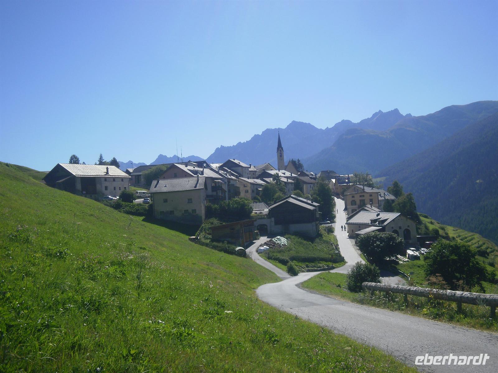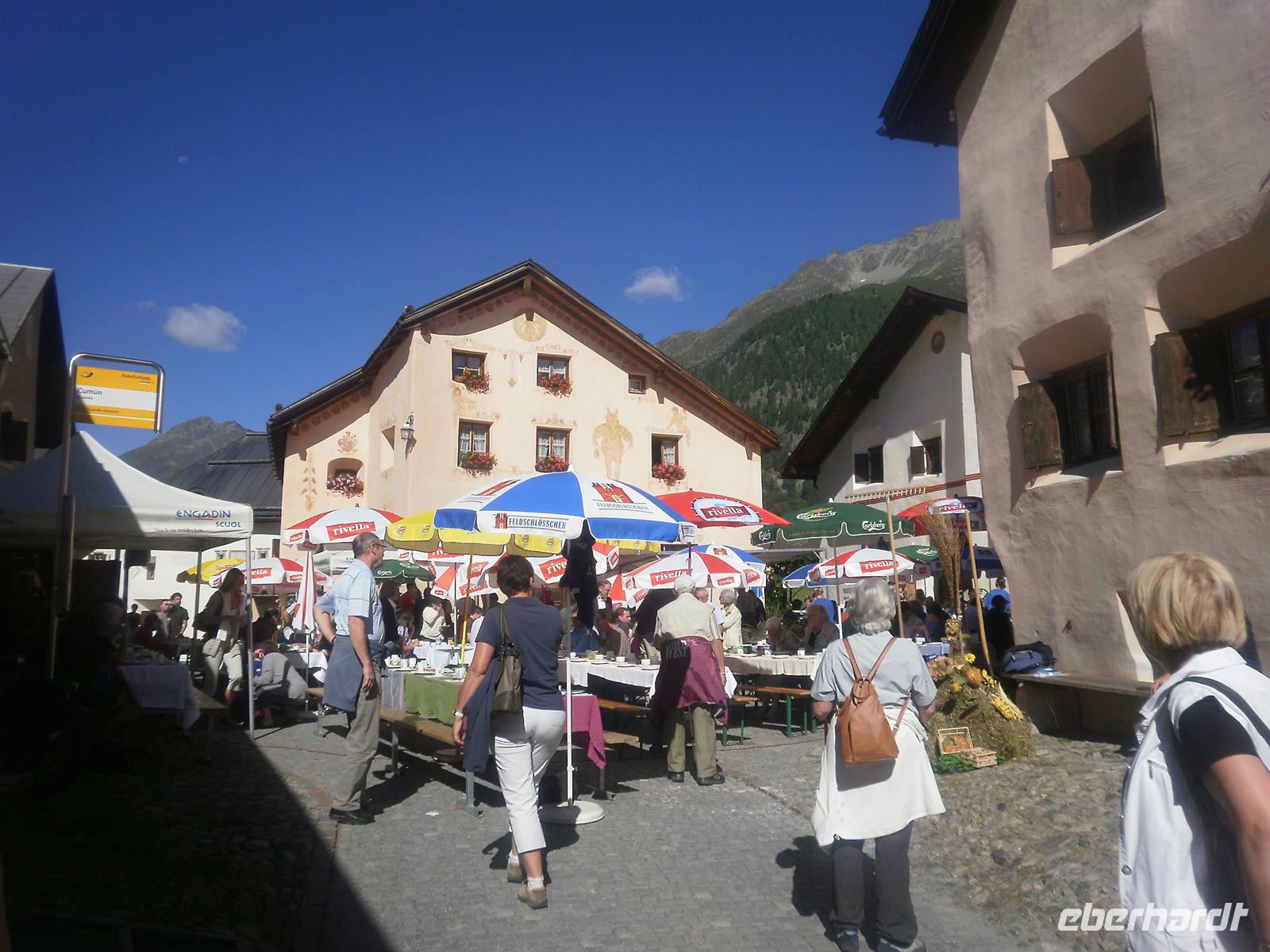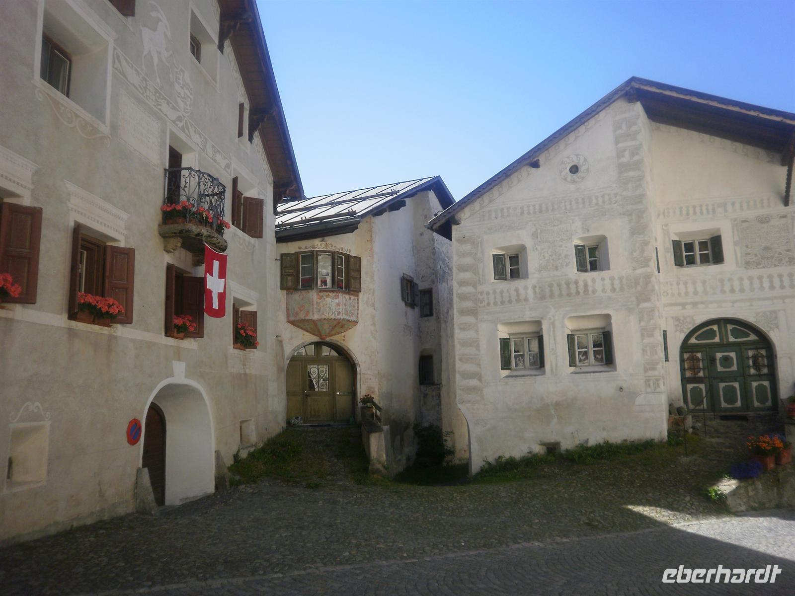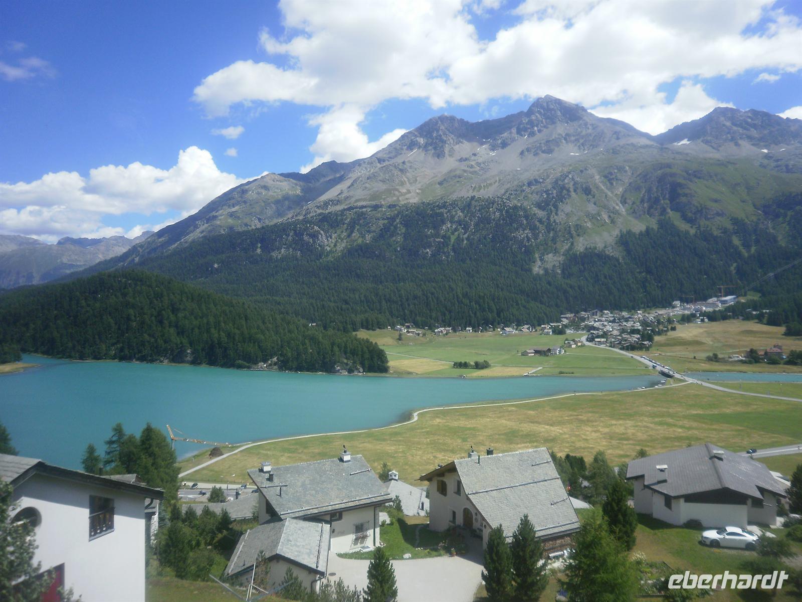 Im Engadin spricht man Rätoromanisch und dort sagt man En, wenn man vom Inn spricht. Zuerst ging es für uns nach Guarda, einem typisch Engadiner Dorf, das ich vor einigen Jahren mal entdeckt habe und unseren Gästen unbedingt zeigen musste. Guarda hat noch heute ein intaktes Ortsbild, wie man es leider nur noch selten sieht. Während die Gebäude in den Hochburgen des Tourismus, vor allem aber in St. Moritz, Hotelbauten weichen mußten, sieht man in Guarda noch sehr viele Häuser im Engadiner Baustil. Kennzeichnend für das Engadiner Haus sind die tief eingelassenen Fenster, die Eingangstore und die wertvollen Sgraffito-Malereien. Von Guarda genießt man übrigens auch einen herrlichen Ausblick auf das Inntal, denn der Ort liegt auf einer Terrasse oberhalb des Inntals. Nun führte uns die Fahrt durch die Ortschaften Susch, Zernez, vorbei an Zuoz und Samedan nach St. Moritz. St. Moritz ist in erster Linie als Wintersportort bekannt, im Sommer ist hier so gut wie gar nichts los.