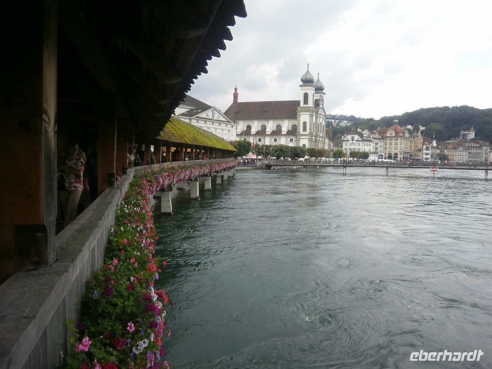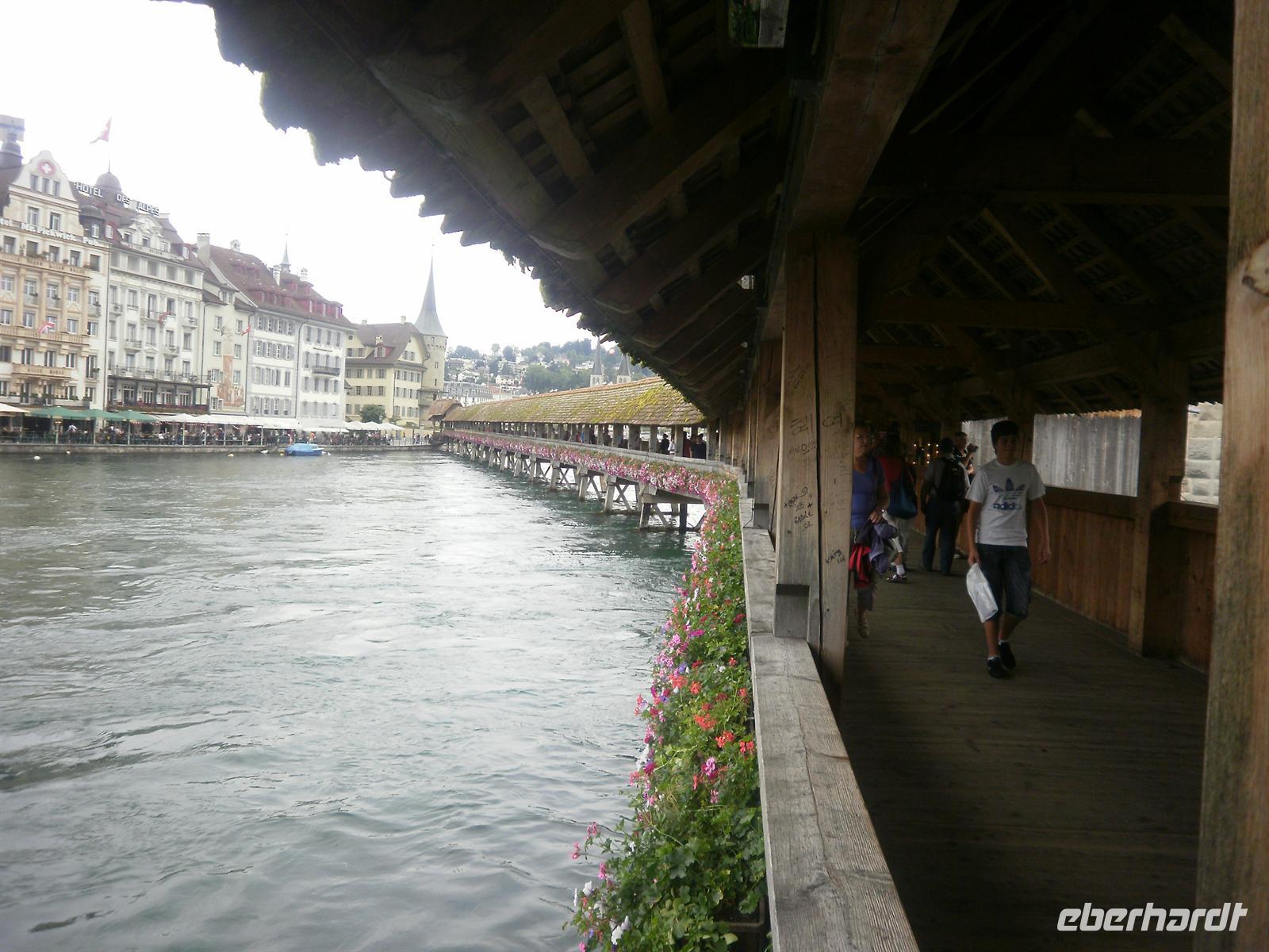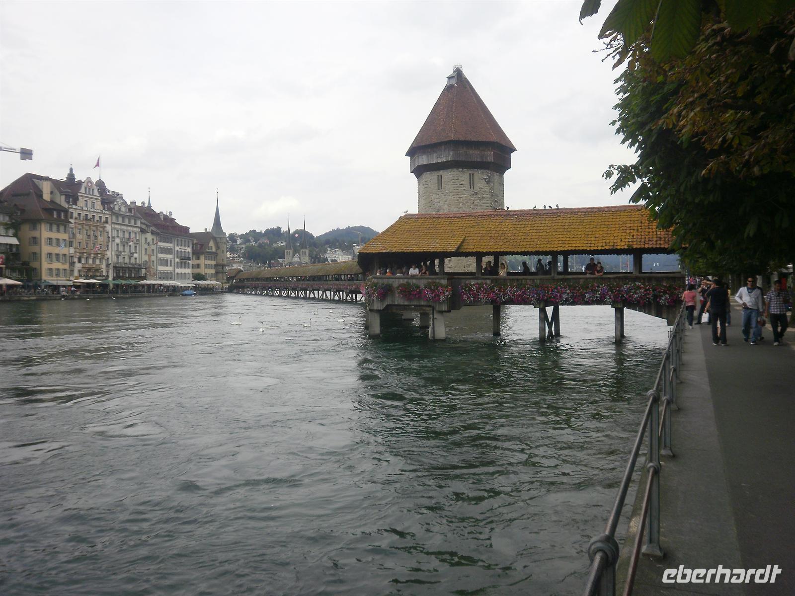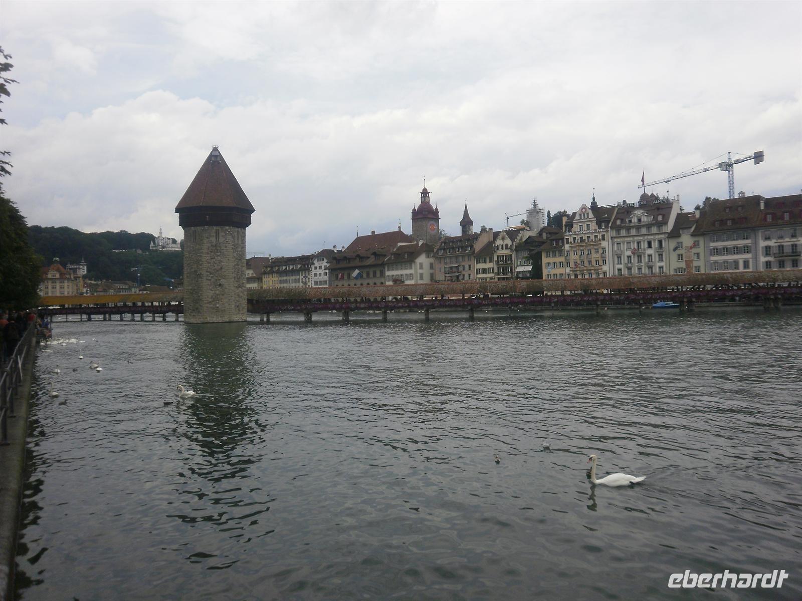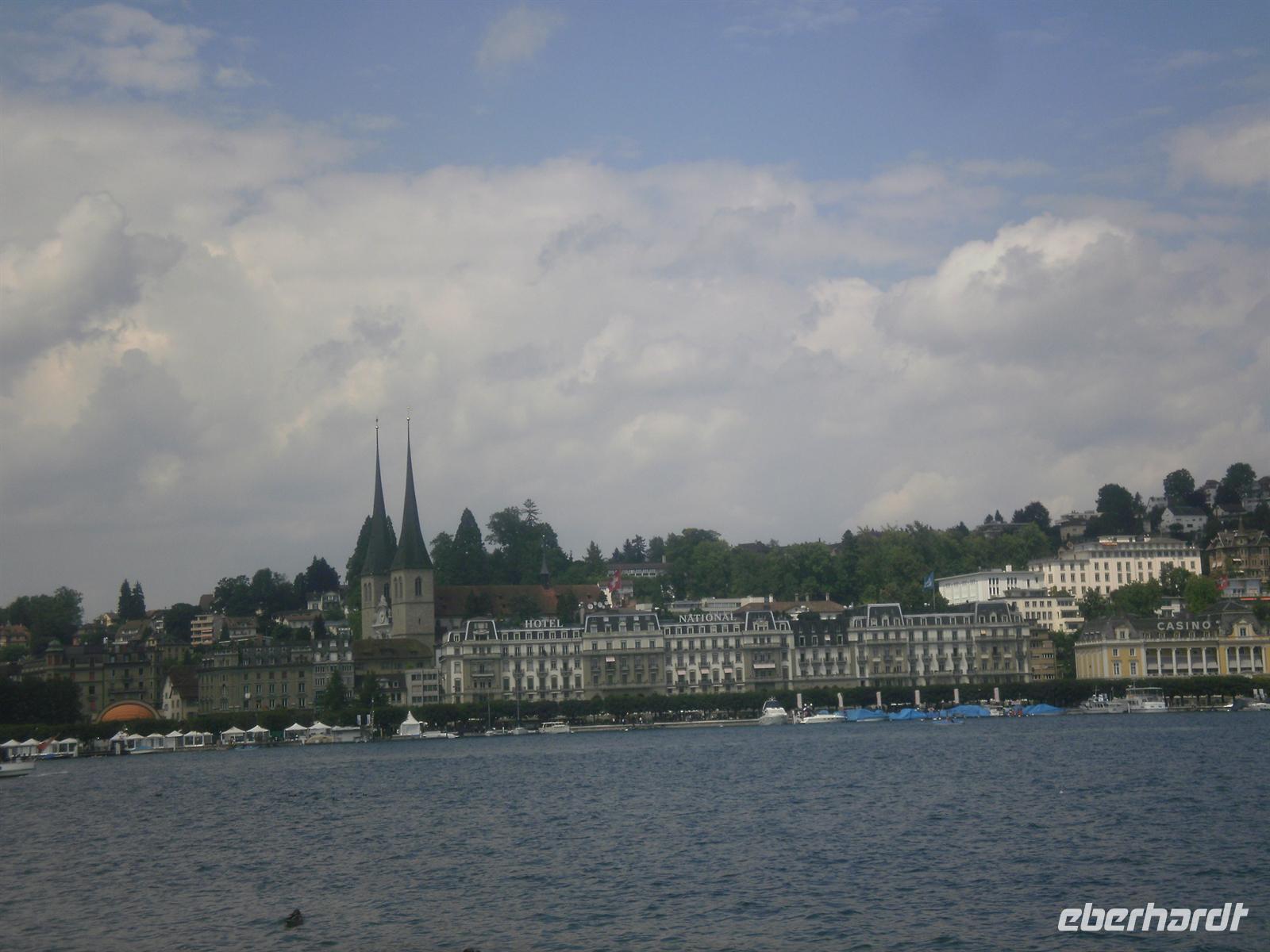 Unser Buschauffeur Andreas, das Hotel und letztendlich die Bahn kümmerten sich darum, dass alle Koffer rechtzeitig im Bus waren. Nach einer etwa 2-stündigen Fahrt über Visp, Brig und das obere Rhonetal beziehungsweise einem kurzen Fotostopp mit Blick auf den Rhonegletscher erreichten wir den 2165 Meter hohen Grimselpass. Auf der Passhöhe schauten sich die meisten von uns im Murmeltierpark um - wie niedlich! Am Nachmittag erreichten wir schließlich Luzern mit der berühmten Kapellbrücke. So konnten wir immerhin behaupten, die zwei meistfotografierten Bildmotive der Schweiz wahrhaftig gesehen zu haben!