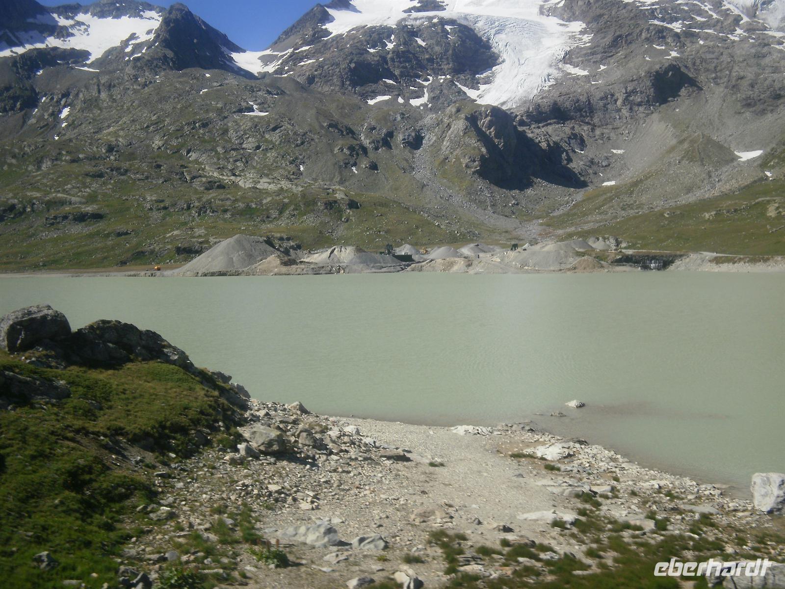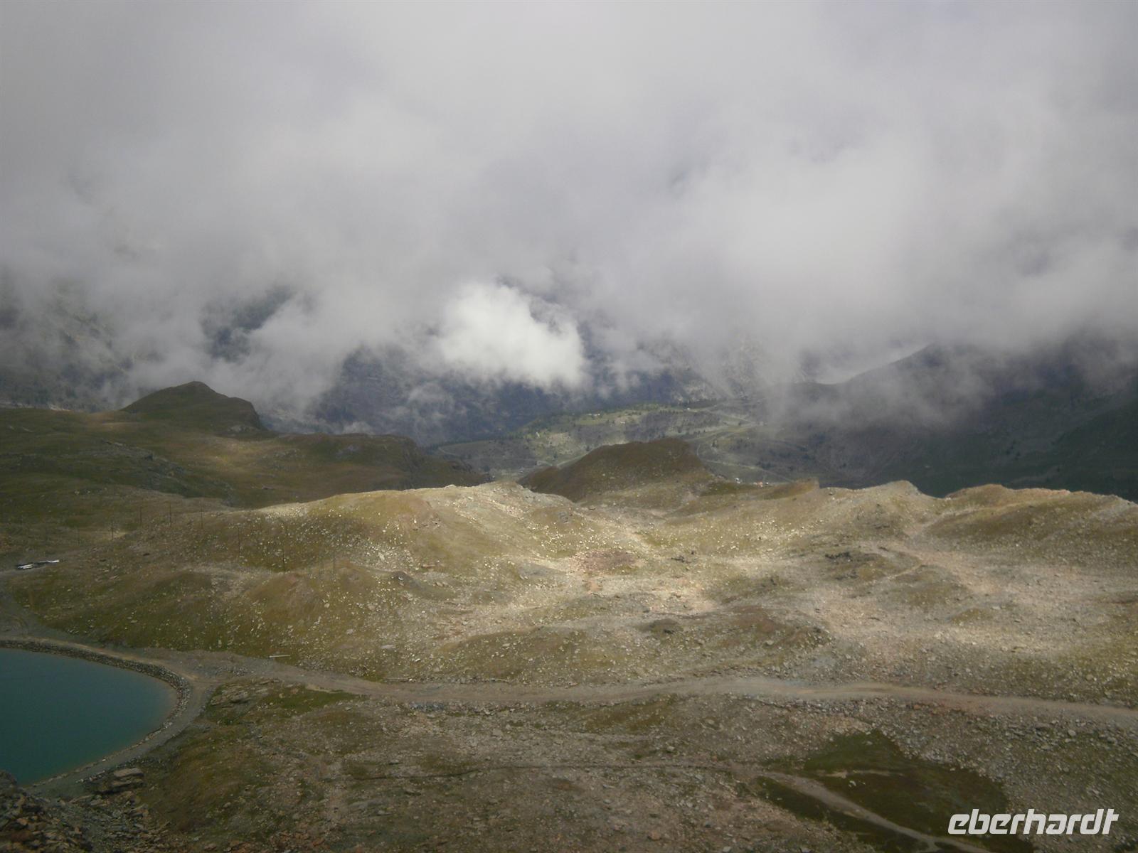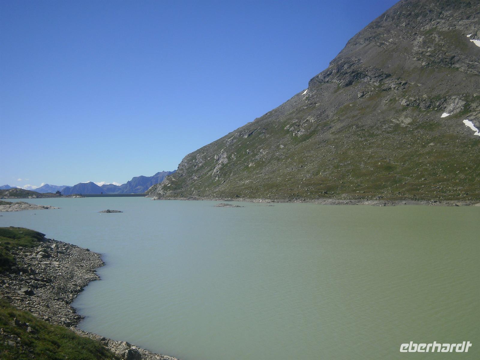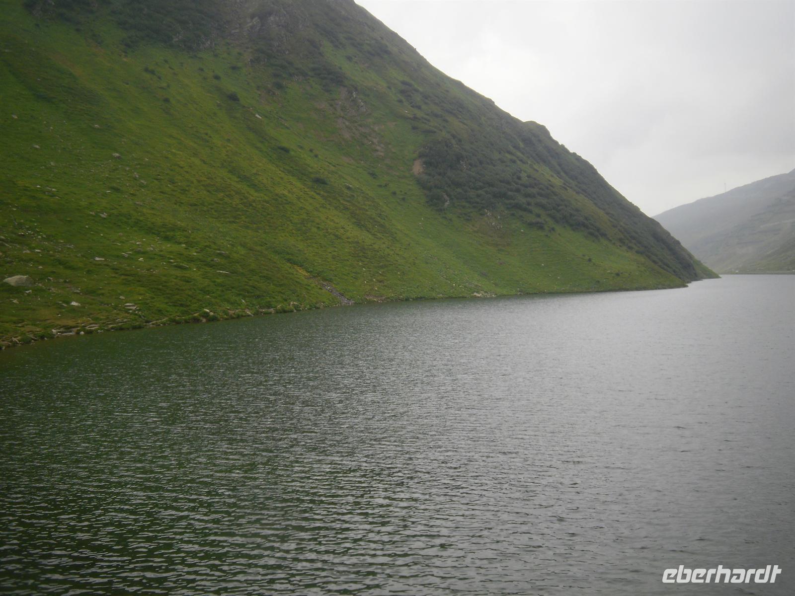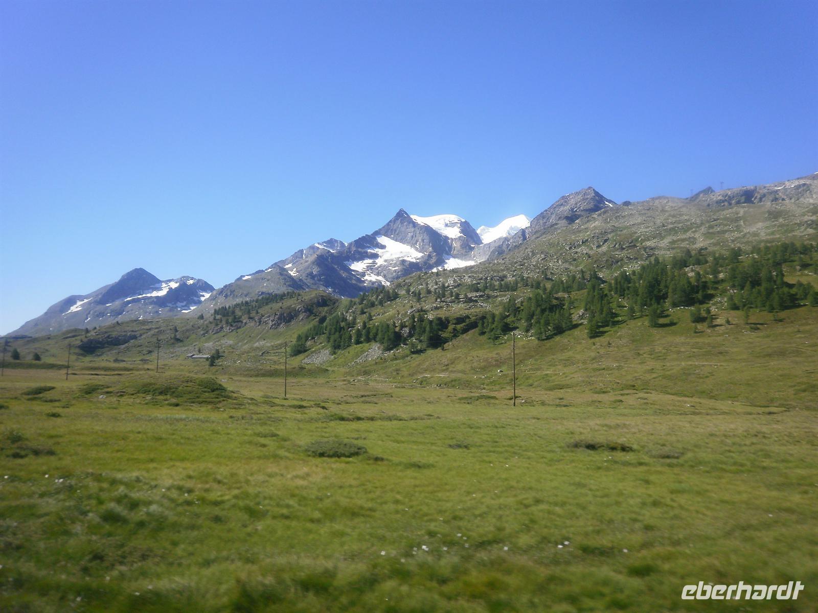 Zahlreiche Baustellen prägten das Ortsbild, aber das ist im Sommer normal. Die meisten Touristen besuchen St. Moritz nämlich im Winter. Das hatte natürlich auch einen Vorteil, denn so konnten wir ganz in Ruhe flanieren. Zum Glück für die Männer, hatten auch noch einige der teuren Geschäfte geschlossen und so mußte niemand seine Kreditkarte zücken. Ich führte unsere Gäste bis zum sogenannten "Schiefen Turm", dem Rest einer alten Kirche aus dem Mittelalter. Dieser Turm ist eines der Wahrzeichen von St. Moritz. Für die meisten von uns ging es einfach darum, St. Moritz zumindest mal gesehen zu haben, um mitreden zu können. Fast alle waren der Meinung, daß hier sehr viel von der Ursprünglichkeit verloren gegangen ist. Vorbei an den Oberengadiner Seen ging es nunmehr zum Julierpass hinauf. Dieser Pass bildet den Übergang vom Engadin nach Tiefencastel bzw. ins Rheintal.