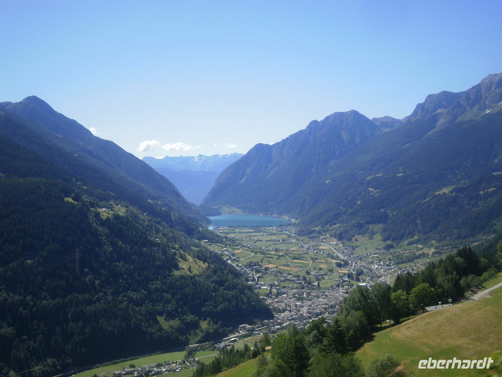 Durch die Ortschaften des Val di Poschiavo, einem italienischsprachigen Südtal des Kantons Graubünden, erreichten wir die Bernina-Passstraße. Diese ist gewöhnlich ganzjährig geöffnet und stellt die Verbindung zwischen dem Puschlav im Süden und dem Engadin im Norden dar. Damit ist der Pass gleichzeitig eine Sprachgrenze. Eine gelbe Tafel auf dem Pass signalisiert die Europäische Wasserscheide, das Wasser in Richtung Süden gelangt über die Flüsse Poschiavino, Adda und Po ins Adriatische Meer und das Wasser in Richtung Norden wird über den Inn und die Donau ins Schwarze Meer geleitet. Nach einem Aufenthalt auf dem Bernina-Pass ging es mit einem kurzen Stopp mit Blick auf den Morteratsch-Gletscher zurück über den Flüela-Pass nach Davos. Nun ging ein langer und erlebnisreicher Tag zu Ende.