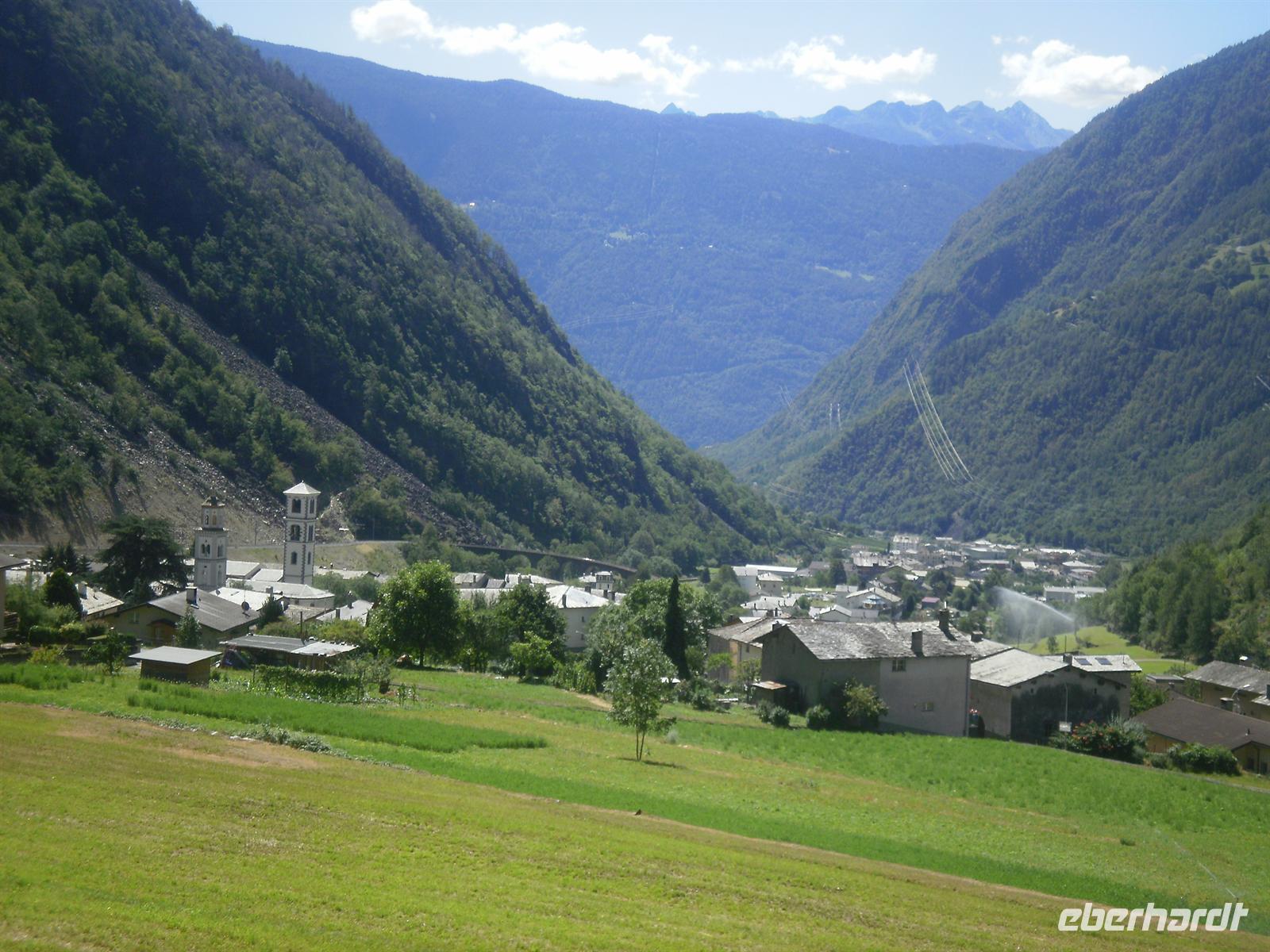 Gegen Mittag kamen wir schließlich nach einer etwa 2-stündigen Fahrt im Bernina-Express im italienischen Tirano an und die meisten von uns gingen zum Mittagessen ins Restaurant "Al Portici". Einige von uns probierten auf meine Empfehlung hin eine Spezialität dieser Gegend, nämlich "Pizzoccheri". Das ist eine Mischung aus Buchweizennudeln, Spinat, Karotten, Knoblauch, Zwiebeln und das alles mit Butter und Käse überbacken. Dazu gab es für einige ein Glas Hauswein, natürlich aus dieser Gegend - dem milden Veltlin. Wir hatten wahrhaftig Temperaturen an die 30 Grad. Einige von uns nutzten auch noch die Gelegenheit und spazierten zur Wallfahrtkirche "Madonna di Tirano" - diese Kirche mit ihren herrlichen Fresken hatte heute sogar ihre Türen geöffnet, denn meistens ist sie über die Mittagszeit geschlossen - wie fast alle Geschäfte hier! In Italien pflegt man nämlich die Tradition der Siesta und ein altes römische Sprichwort sagt: "Zu dieser Zeit sind nur Hunde und Franzosen unterwegs...".