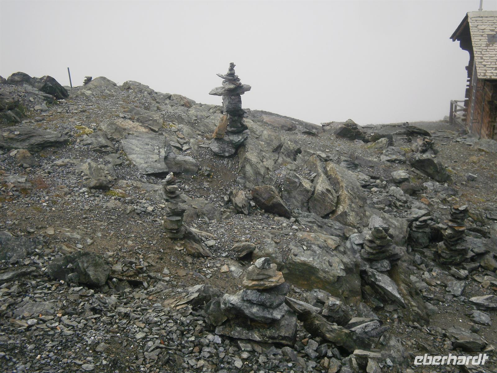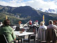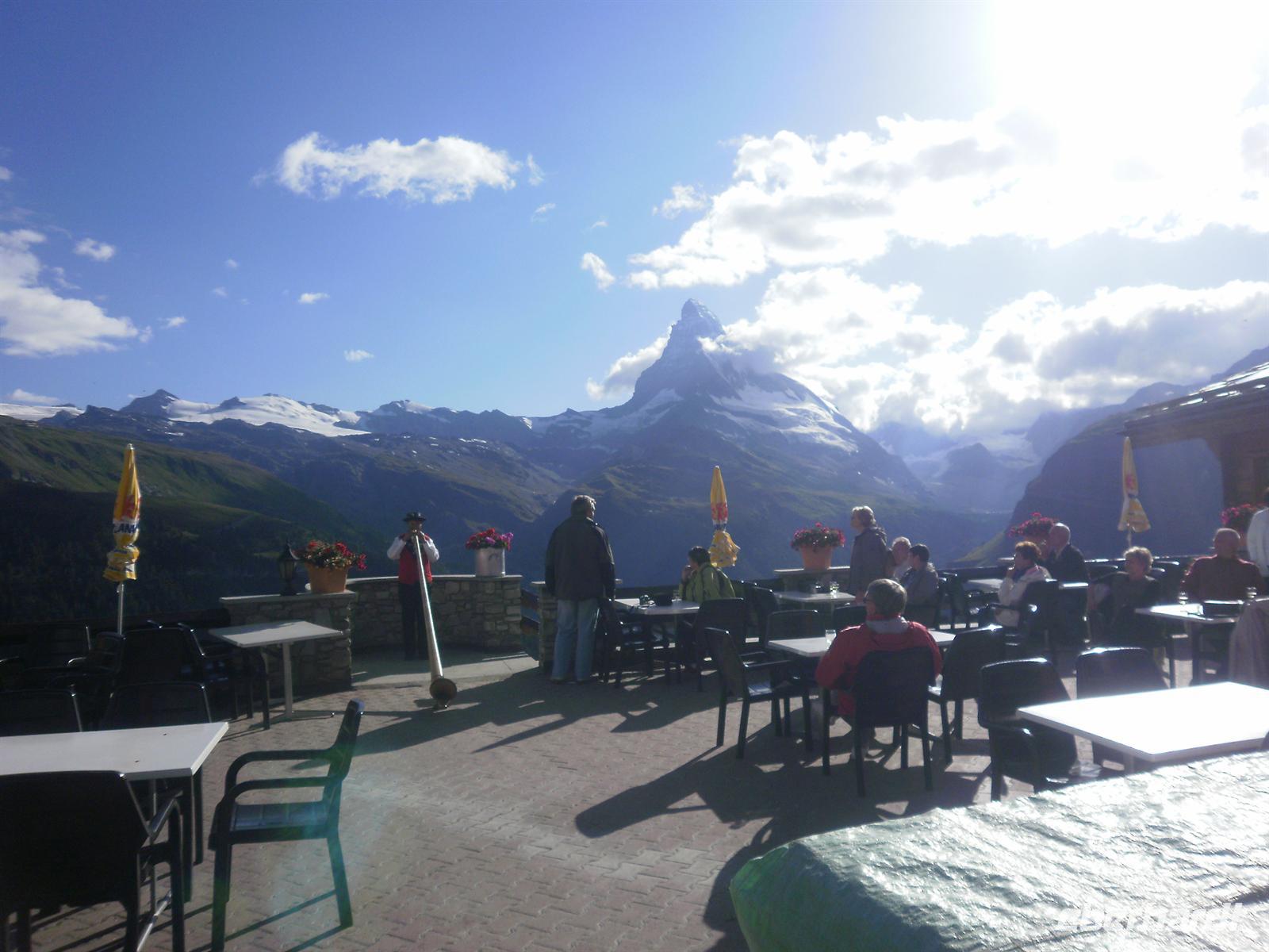 Diese Häuser stehen häufig auf sogenannten "Mäuseplatten" und dienten früher dazu, daß keine Mäuse an die Vorräte rankamen. So erlebte jeder diesen Tag nach seinen eigenen Vorstellungen. Am frühen Abend trafen wir uns alle wieder und nun ging es mit einer unterirdischen Standseilbahn zur Sunnegga hinauf. Wir befanden uns jetzt auf 2.288 Metern Höhe - Gornergrat und Matterhorn waren zum Greifen nah!