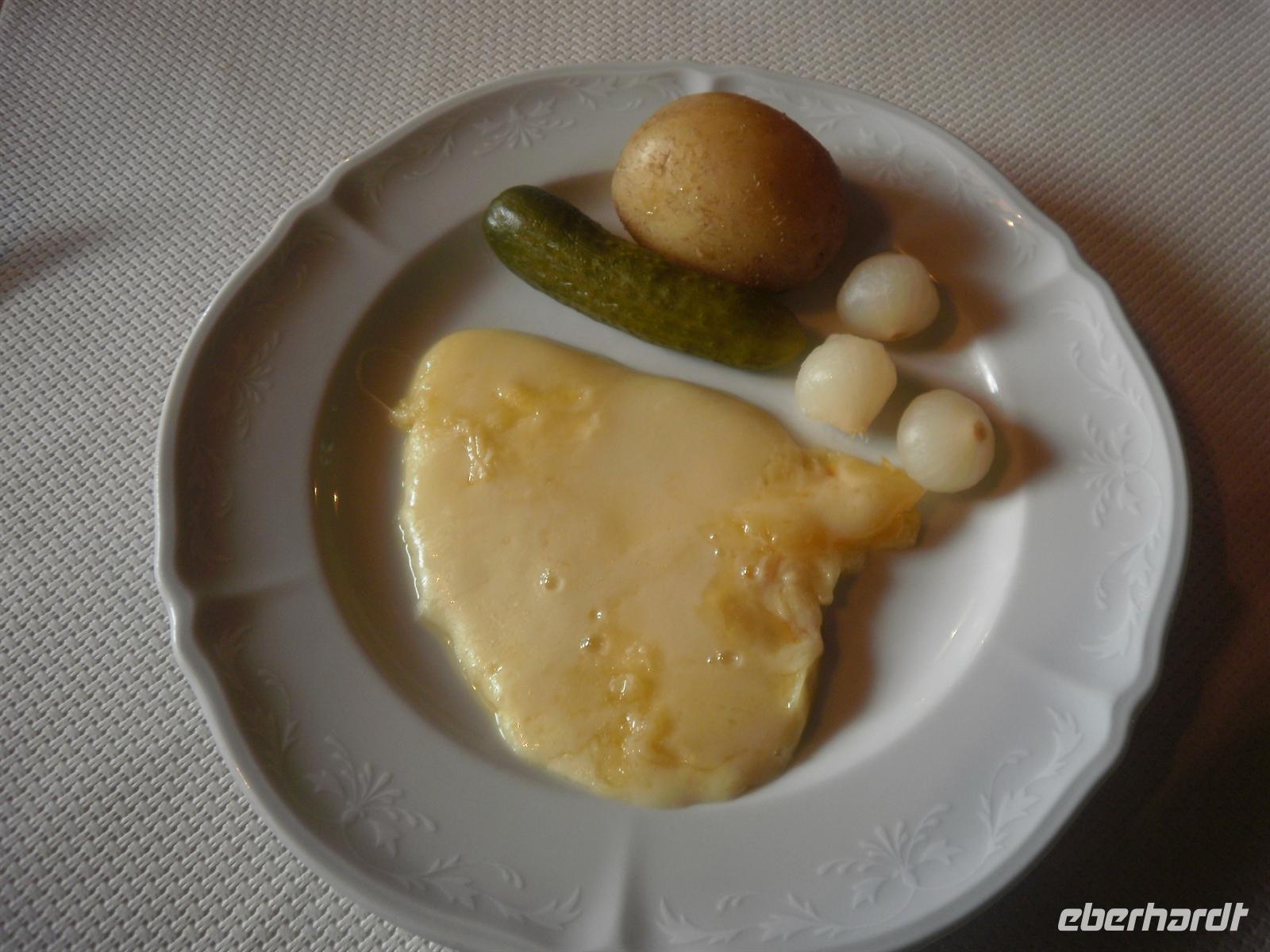 Wir saßen auf der Terrasse und genossen einfach diese herrlichen Blicke, bevor wir ein typisch schweizerisches Essen erleben durften. Es gab Raclette - eine Käsespezialität mit Pellkartoffeln, grünen Gurken und Glaszwiebeln. Jeder konnte soviel essen, wie er wollte und wir konnten auch bei der Zubereitung zuschauen. Um Raclette zuzubereiten, wird übrigens ein großer halbierter Käse an der Schnittfläche erhitzt und die geschmolzene Oberfläche jeweils abgeschabt. Für die meisten von uns war es das erste Raclette-Essen des Lebens. Die Schweizer lieben Käse und das merkt man natürlich auch, wenn es um hiesige kulinarische Spezialitäten geht. Nachdem wir alle satt und zufrieden waren, ging es zurück nach Zermatt.