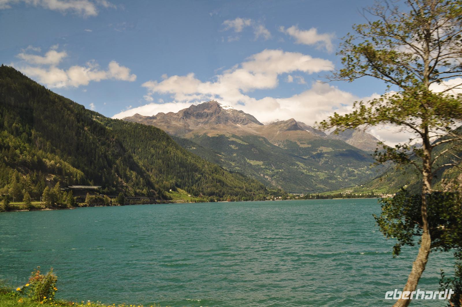Der Blick aus den Fenstern der Hotelzimmer ließ zunächst wenig Optimismus entwickeln. Aber unser Ziel sind Passüberquerungen gen Süden, so dass unsere Hoffnung auf einen sonnigen Tag stieg, denn in Gedanken verbinden alle Italien mit Sonne und Wärme. Bereits am Bernina-Pass ahnten wir - es sollte ein toller Tag werden. War zunächst der Morteratsch-Gletscher nur unter Wolken zu erkennen, spürten wir, je weiter es Richtung Veltlin ging, die Sonne des Südens. Fast mediterranes Flair empfing uns in Tirano.