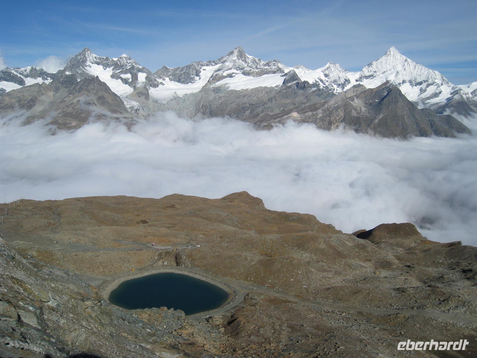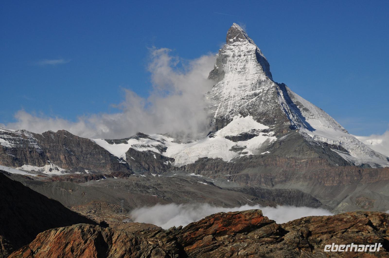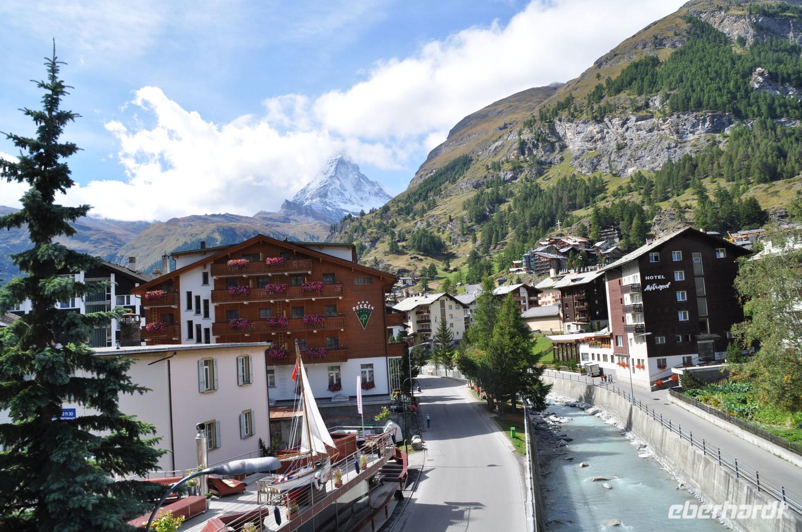 Zermatt, das Matterhorn - einen der markantesten Gipfel der Welt zu sehen - war für manchen ein besonderes Ziel der Reise. Ein wenig Bummeln im bekannten Ort oder die Fahrt auf den Gornergrat - beides kann bei Sonnenschein Blicke auf das Matterhorn gewähren. Frühmorgens im Tale tiefe Wolken, dennoch wagten viele die Auffahrt auf den Gornergrat. Bei 2600 m waren die Wolken durchstoßen und ein allgemeines ?wow!" erscholl im Bahnwagon. Wer dann auf dem Gornergrat in 3100 m stand, konnte einen Blick auf die Gipfel und Gletscher werfen und die höchsten Berge rund um Zermatt, wie Monte Rosa, Dom, Matterhorn und Breithorn im Sonnenschein blitzen sehen. Ein beeindruckendes Panorama, das sicher allen unvergesslich bleiben wird.