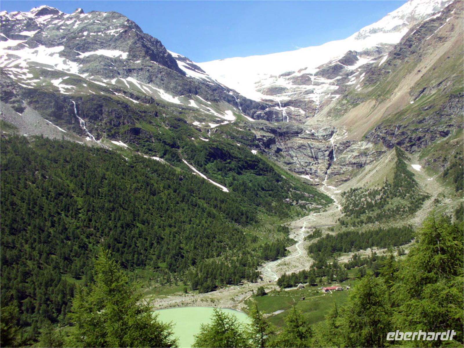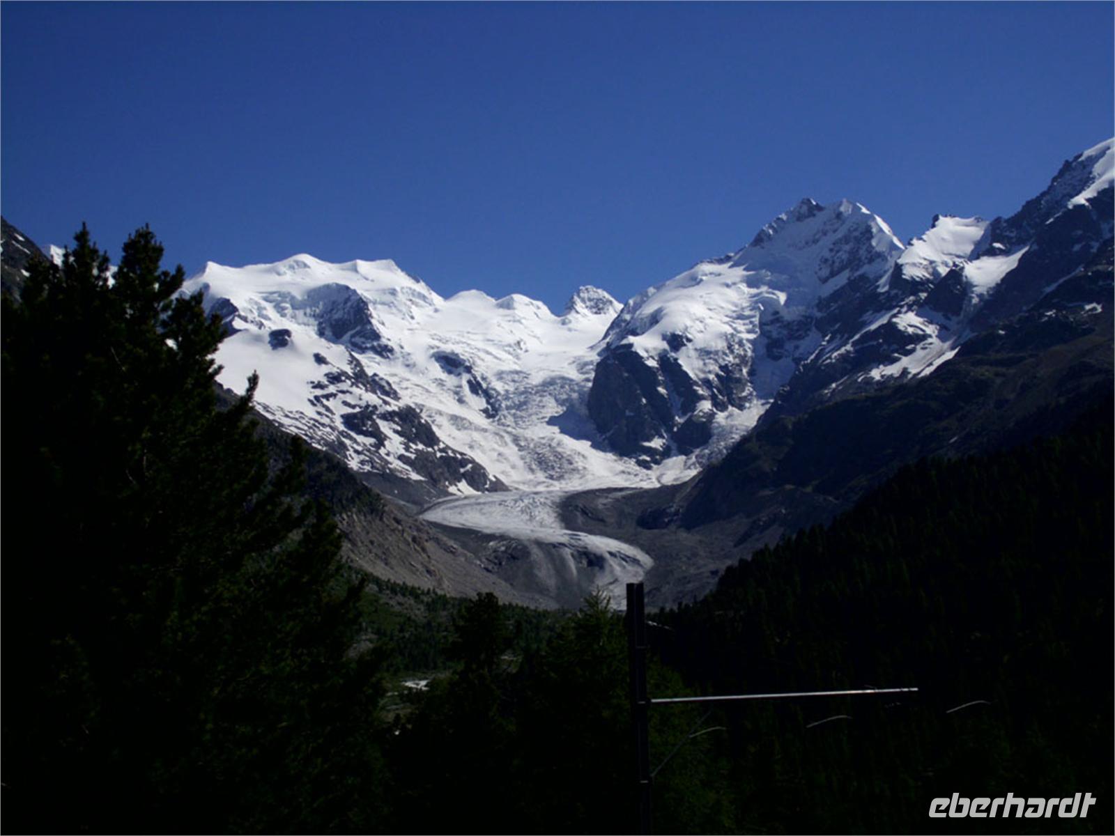 Grandios ist auch der riesige Morteratschgletscher, der seine Eismassen ins Tal schiebt. Er entspringt dem Piz Morteratsch mit 3207 m Höhe.