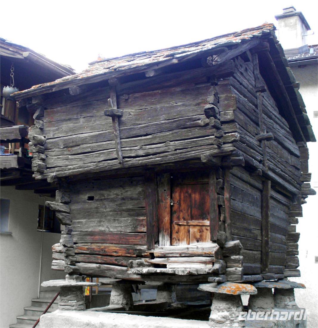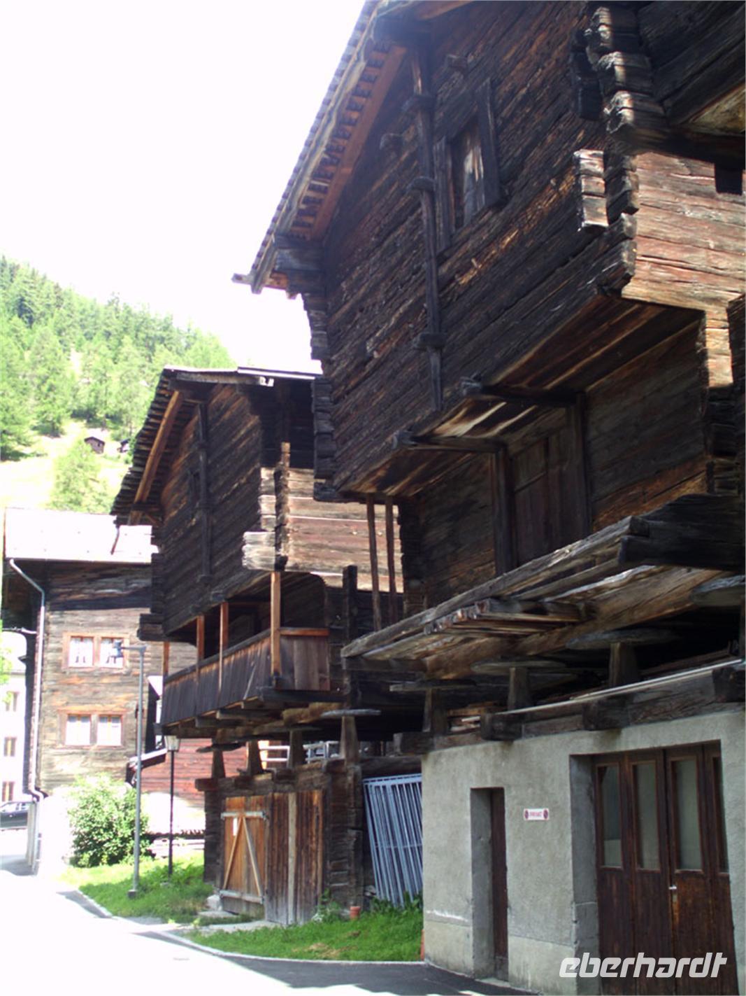 Dort hat sich ein Rest des alten Zermatt erhalten, mit uralten Speichern und Wohnhäusern. Man kann viel zum Ort hier erzählen. Das die Altvorderen sich auch gegenüber kleinen Nagern zu erwehren wussten zeigen die großen Steinscheiben an den Stelzen der Getreidespeicher. Effektiver Mäuseschutz!