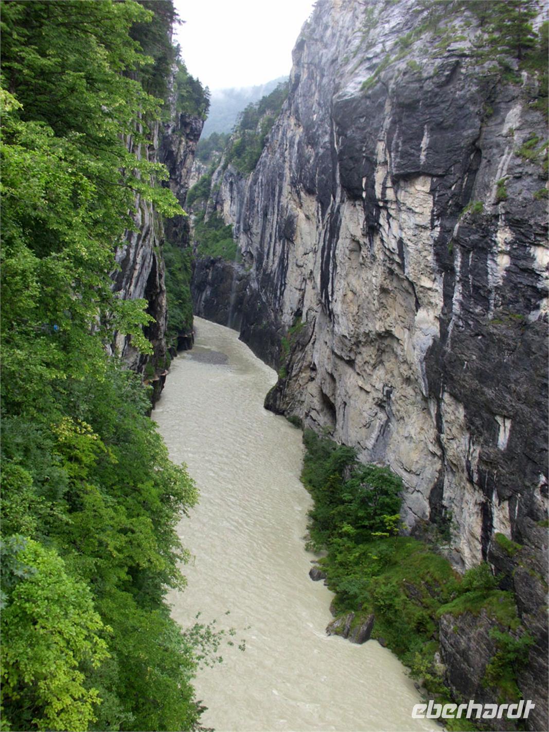 An der gegenüber liegenden Rheinseite schmiegt sich das Fürstenschloss von Vaduz an die bewaldeten Hänge. Nun ändert sich die Landschaft rapide. Die Berge werden höher und ab Chur muss hin und wieder durch kräftiges Schlucken für Druckausgleich in den Ohren gesorgt werden.