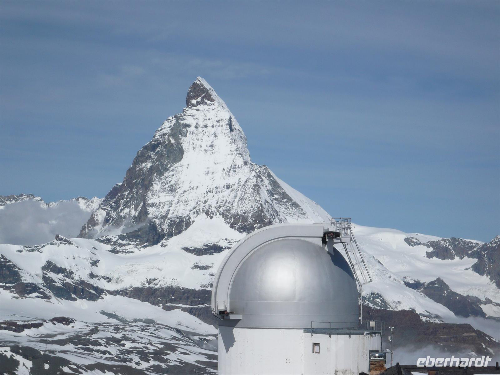 Nachdem wir den Bahnhof in Zermatt verlassen hatten, galt natürlich der erste Blick dem Matterhorn, welches an diesem Tag noch nicht vollkommen zu sehen war.