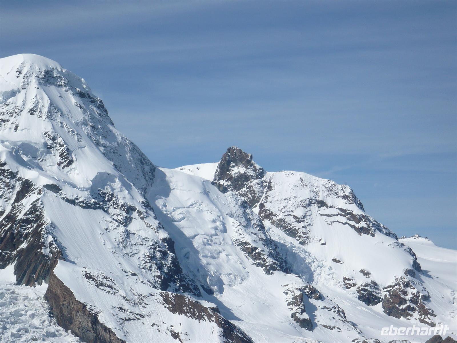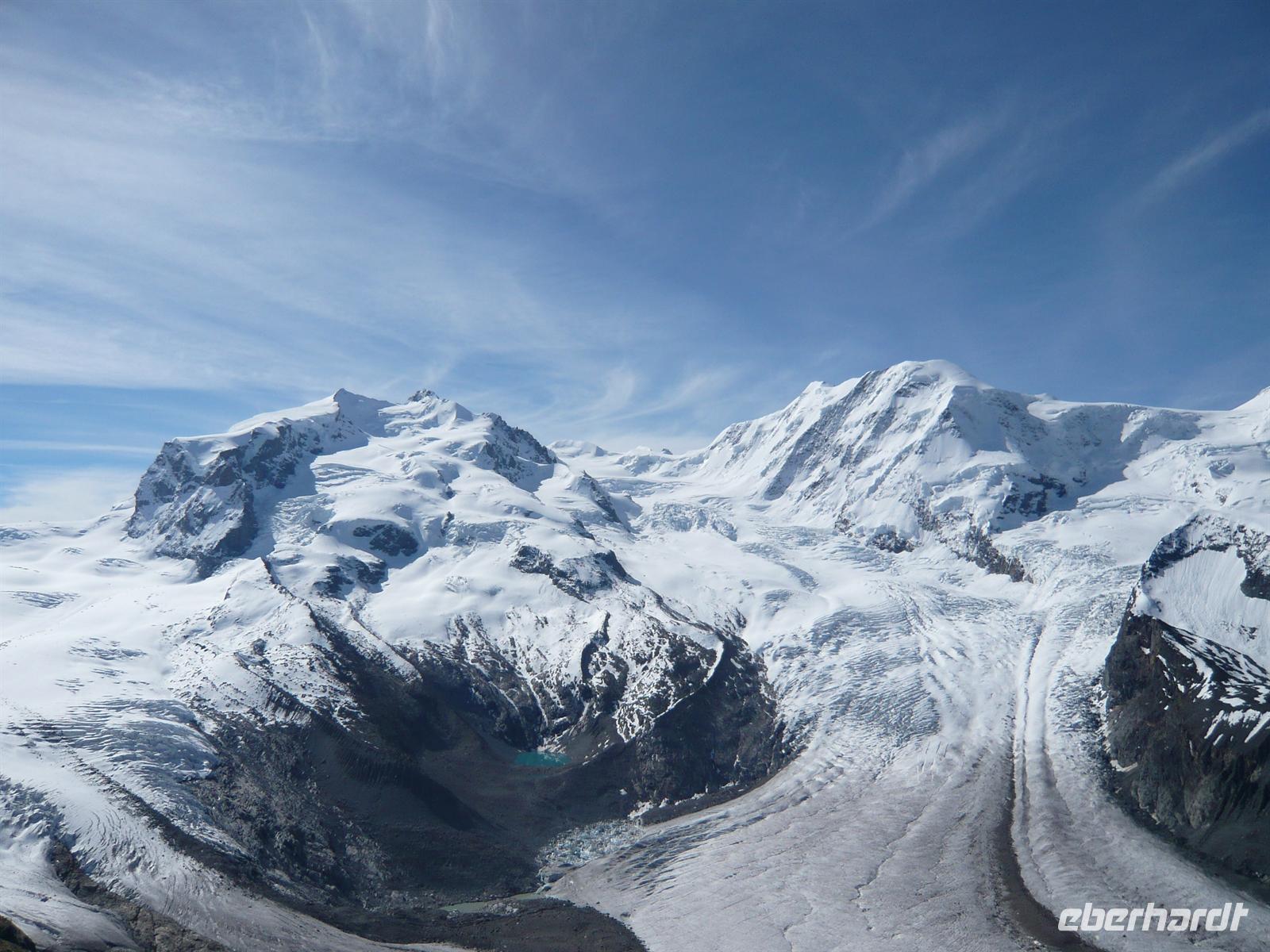 Blauer Himmel und kaum eine Wolke ermöglichte uns oben auf der Aussichtsplattform den berühmten 360°C-Rundumblick auf 29 der 34 Viertausender der Schweiz.