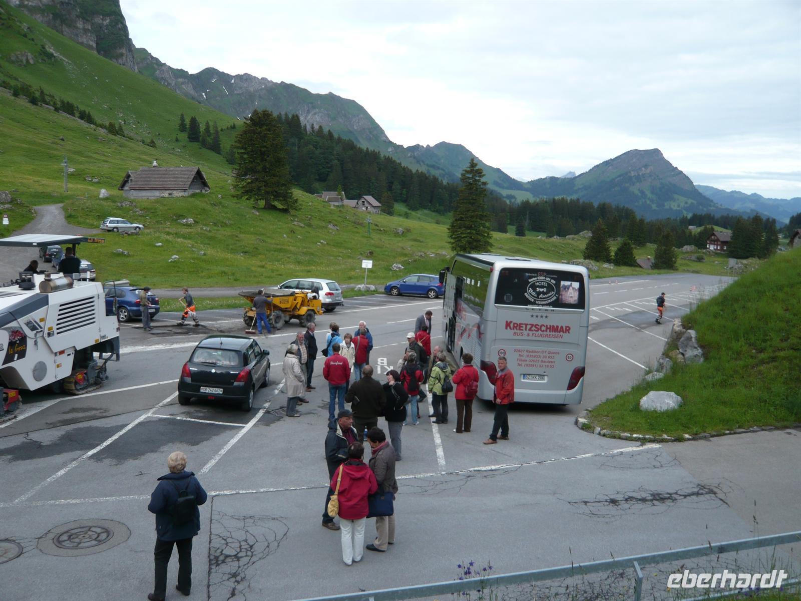 Dort kurz nach 17 Uhr angekommen, nutzten viele Reisegäste noch die Einkaufsmöglichkeit in der kleinen Käserei der Alp.