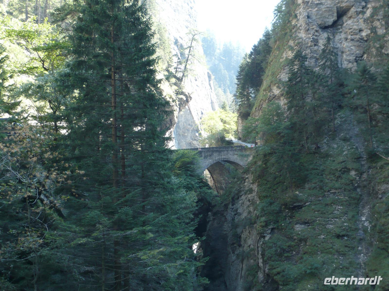 Von Tiefencastel angekommen nahmen wir nicht gleich den direkten Weg durch das Landwassertal, sondern machten noch einen Abstecher in die Viamalaschlucht. Einige Reisegäste nutzten die Gelegenheit und stiegen hinab in die Schlucht. Anschließend fuhren wir zurück durch Tiefencastel und dann im Landwassertal zurück nach Davos. Dort gegen 16 Uhr angekommen, nutzten einige Reisegäste die Gelegenheit und fuhren bei herrlichem Wetter hinauf zur Schatzalp. Unser Bus fuhr direkt zur Bahnstation, so dass man nur noch in die Bergbahn umsteigen musste, um hinauf auf die Alp zu fahren, auf der im 1900 ein Luxussanatorium im Jugendstil eröffnet wurde, welches in Thomas Mann seinem „Zauberberg“ eine Rolle spielte. Er beschrieb dabei das Leben im Sanatorium.