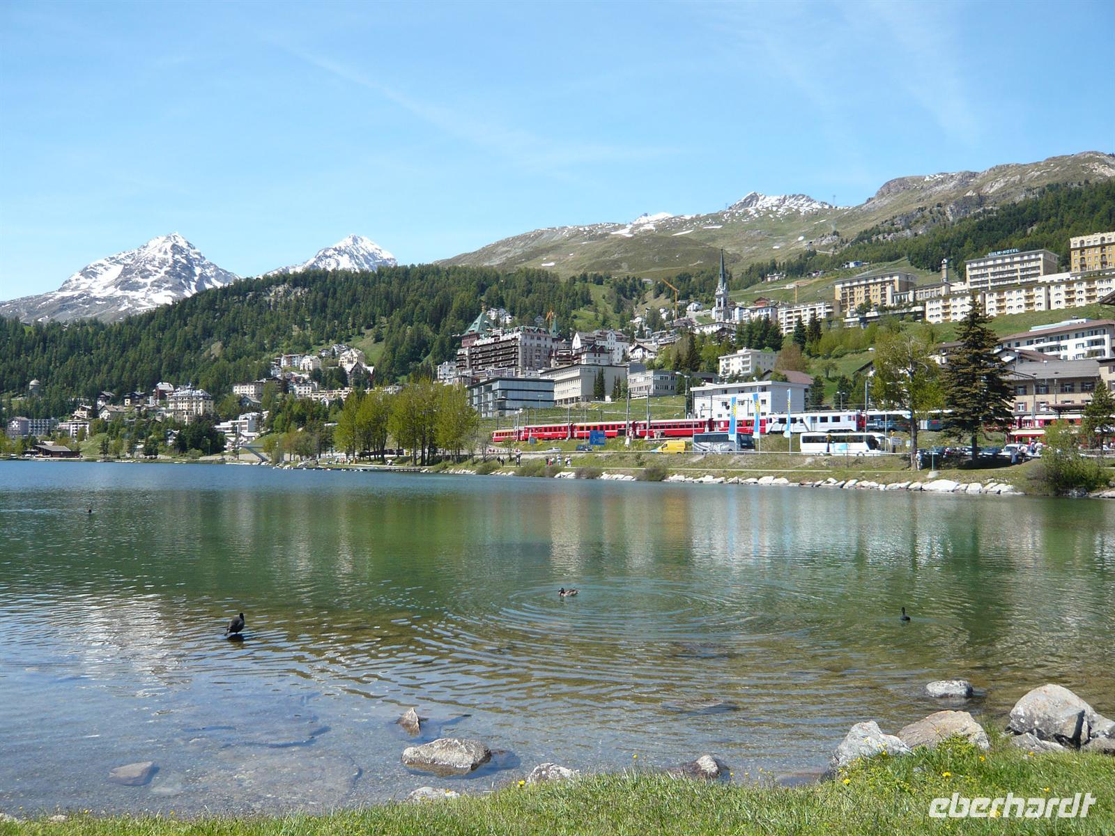 Vom alten St. Moritz-Dorf ist u.a. der schiefe Glockenturm der Mauritiuskirche, die selbst abgebrochen wurde, zu sehen. Bei einem Bummel durch St.Moritz-Dorf sieht man aber auch, dass in den letzten Jahrzehnten viel Neues gebaut wurde, so dass der Ort ein vollkommen neues Gesicht erhalten hat.