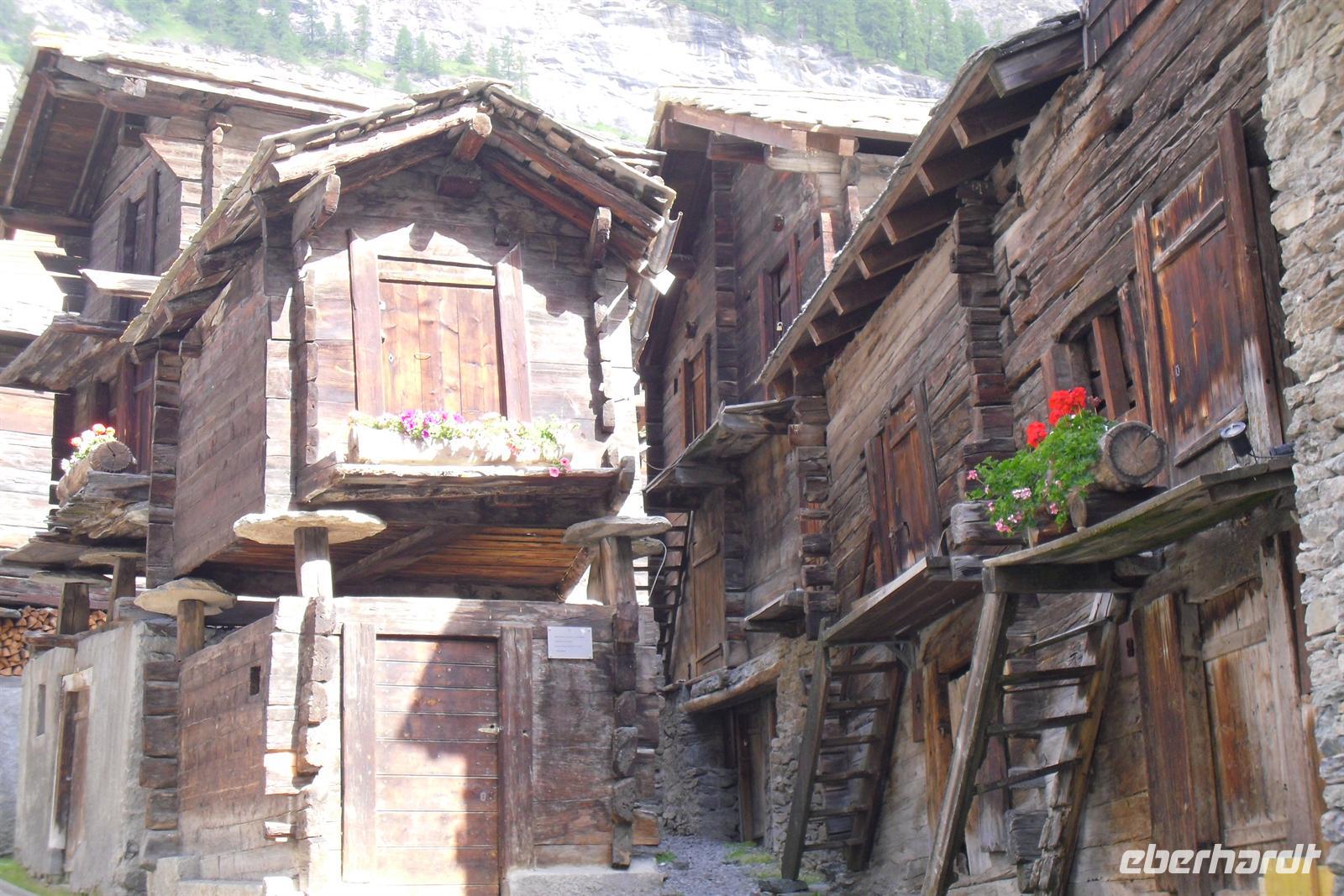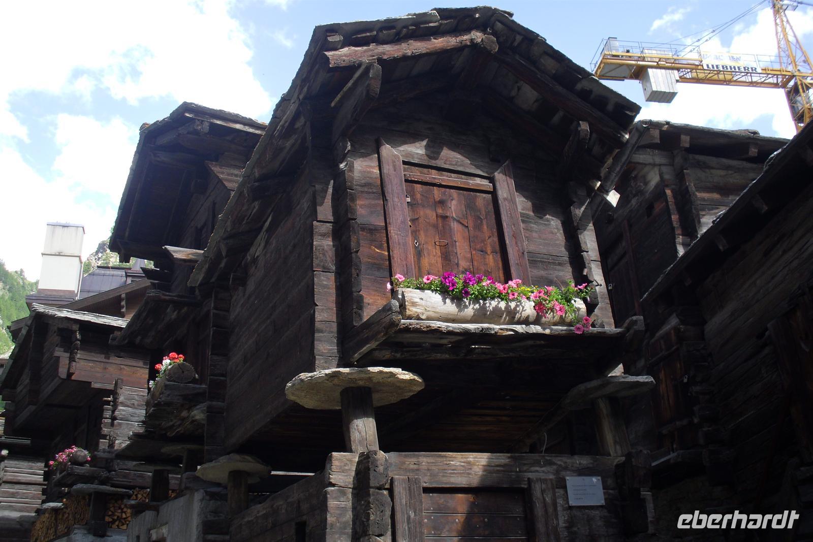 Fast alle Gäste unserer Reisegruppe fuhren bereits am Vormittag mit der höchsten, frei im Gelände angelegten Zahnradbahn Europas auf den 3.089 Meter hohen Gornergrat - das Panorama und der Blick auf einige Viertausender ist atemberaubend und unbeschreiblich! Auch für einen Spaziergang in Zermatt blieb noch genügend Zeit. Besonders interessant ist das alte Zermatt mit den typisch Walliser Holzhäusern. Diese Häuser stehen häufig auf sogenannten "Mäuseplatten" und dienten früher dazu, daß keine Mäuse an die Vorräte rankamen. So erlebte jeder diesen Tag nach seinen eigenen Vorstellungen. Am frühen Abend trafen wir uns alle wieder und nun ging es mit einer unterirdischen Standseilbahn zur Sunnegga hinauf. Wir befanden uns jetzt auf 2.288 Metern Höhe - Gornergrat und Matterhorn waren zum Greifen nah!
