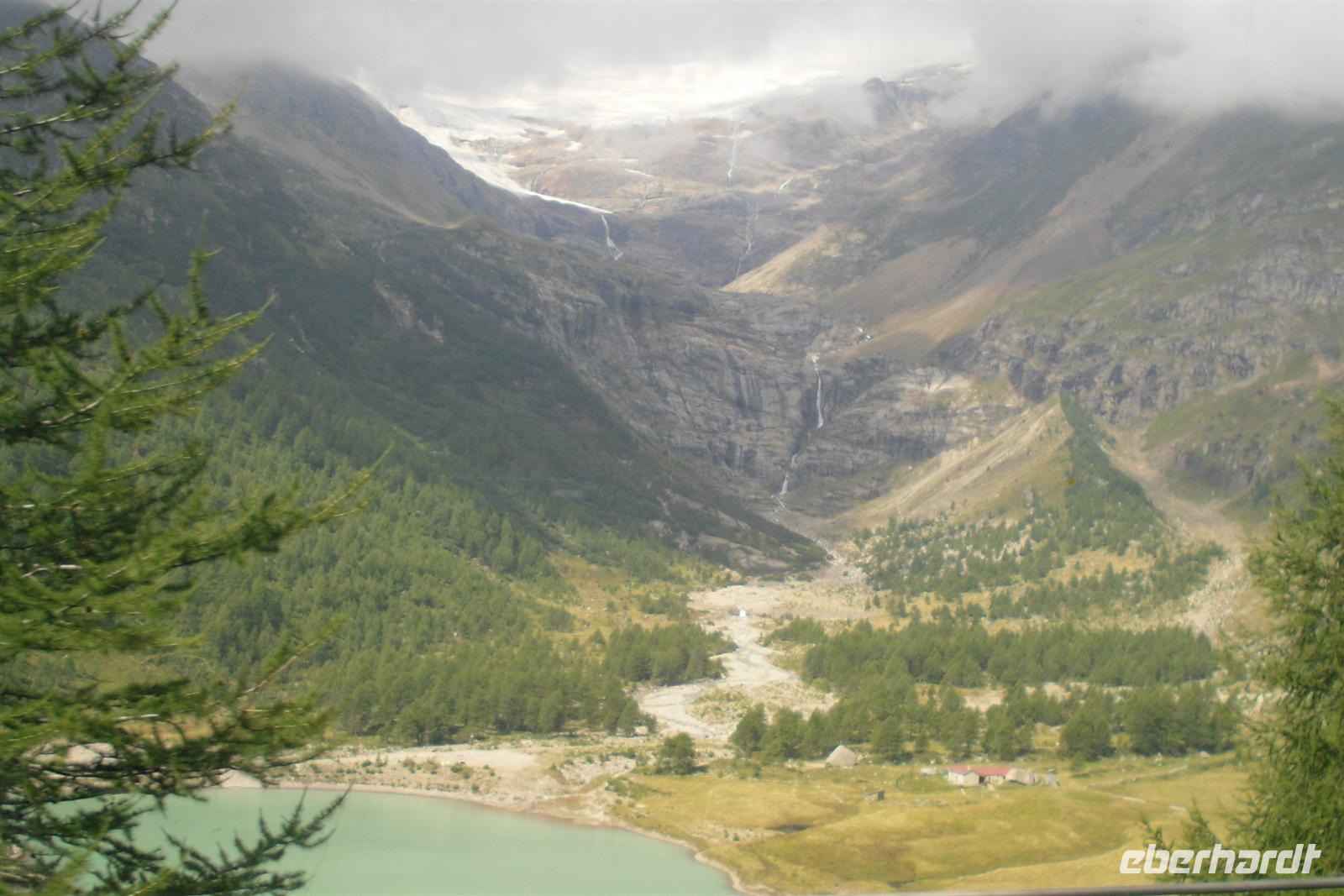 Weiter hinauf ging es zum Lago di Poschiavo, wo wir zum See spazieren konnten. Durch die Ortschaften des Val di Poschiavo, einem italienisch-sprachigen Südtal des Kantons Graubünden, erreichten wir die Bernina-Passstraße. Diese ist gewöhnlich ganzjährig geöffnet und stellt die Verbindung zwischen dem Puschlav im Süden und dem Engadin im Norden dar. Damit ist der Pass gleichzeitig eine Sprachgrenze. Eine gelbe Tafel auf dem Pass signalisiert die Europäische Wasserscheide, das Wasser in Richtung Süden gelangt über die Flüsse Poschiavino, Adda und Po ins Adriatische Meer und das Wasser in Richtung Norden wird über den Inn und die Donau ins Schwarze Meer geleitet. Nach einem Aufenthalt auf dem Bernina-Pass ging es mit einem kurzen Stopp mit Blick auf den Morteratsch-Gletscher zurück über den Flüela-Pass nach Davos. Nun ging ein langer und erlebnisreicher Tag zu Ende.