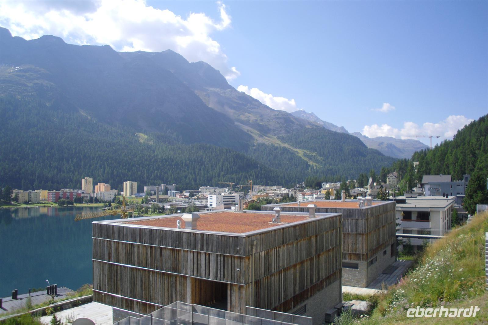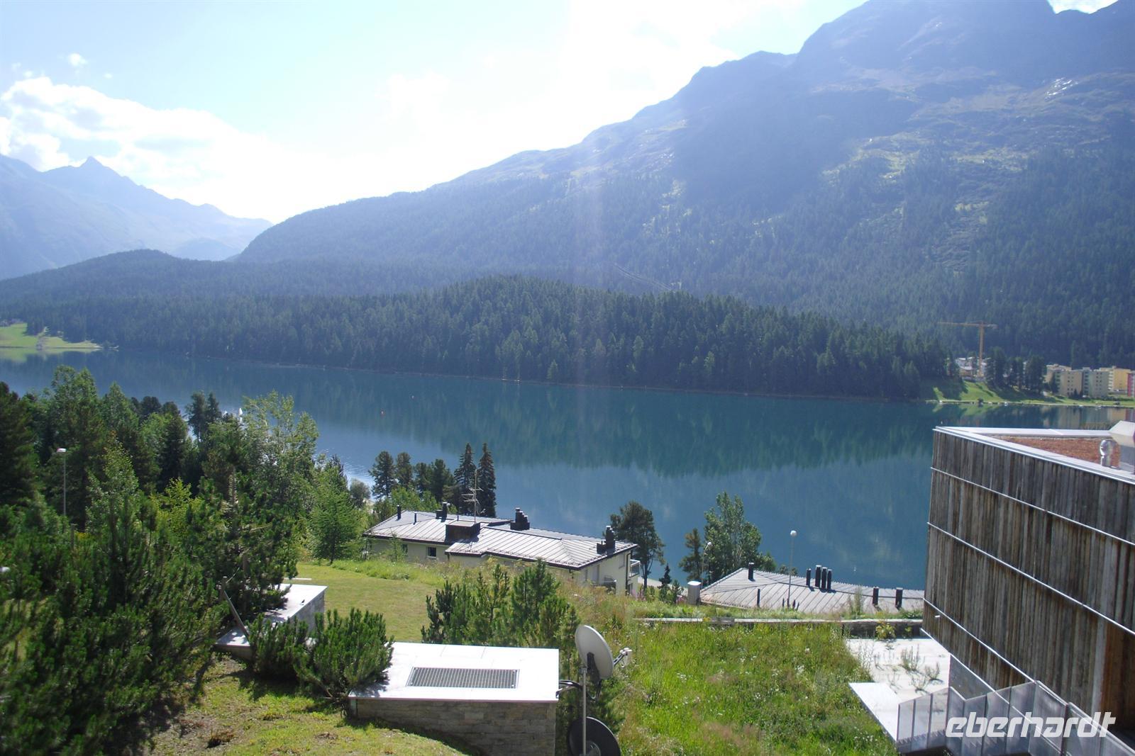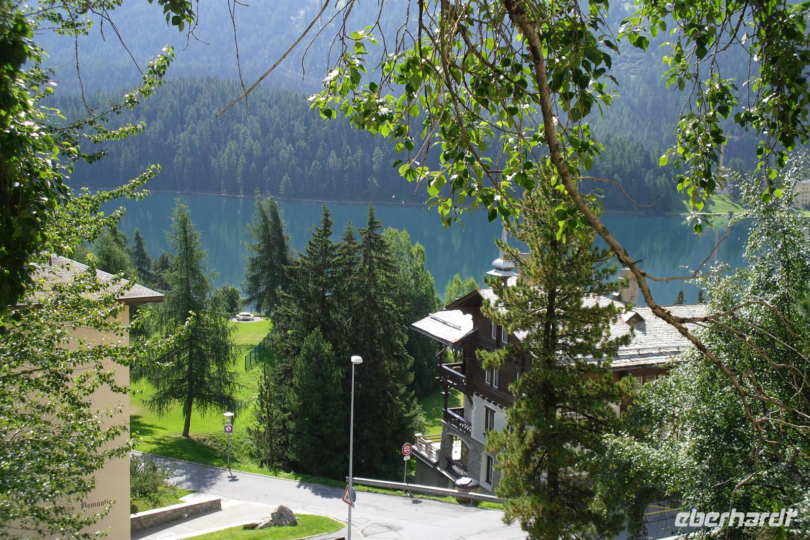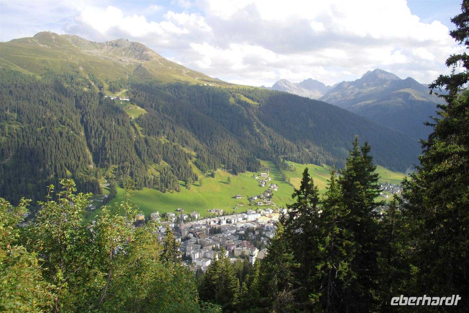 Im Engadin spricht man Rätoromanisch und dort sagt man En, wenn man vom Inn spricht. Zuerst führte uns die Fahrt durch die Ortschaften Susch, Zernez, vorbei an Zuoz und Samedan nach St. Moritz. St. Moritz ist in erster Linie als Wintersportort bekannt, im Sommer ist hier so gut wie gar nichts los. Zahlreiche Baustellen prägten das Ortsbild, aber das ist im Sommer normal. Die meisten Touristen besuchen St. Moritz nämlich im Winter. Das hatte natürlich auch einen Vorteil, denn so konnten wir ganz in Ruhe flanieren. Zum Glück für die Männer, hatten auch noch einige der teuren Geschäfte geschlossen und so mußte niemand seine Kreditkarte zücken. Ich führte unsere Gäste bis zum sogenannten "Schiefen Turm", dem Rest einer alten Kirche aus dem Mittelalter. Dieser Turm ist eines der Wahrzeichen von St. Moritz. Für die meisten von uns ging es einfach darum, St. Moritz zumindest mal gesehen zu haben, um mitreden zu können. Fast alle waren der Meinung, daß hier sehr viel von der Ursprünglichkeit verloren gegangen ist. Vorbei an den Oberengadiner Seen ging es nunmehr zum Julierpass hinauf. Dieser Pass bildet den Übergang vom Engadin nach Tiefencastel bzw. ins Rheintal. Durch das Oberhalbstein-Gebiet kamen wir dann bis kurz vor Filisur. Dort machten wir unsere Kaffeepause nur wenige Gehminuten vom imposanten Landwasserviadukt entfernt. Viele kamen mit einem wunderschönen Foto vom Landwasserviadukt - natürlich mit Bahn - zurück. Durch das Landwassertal gelangten wir zurück nach Davos und dort war dann die Schatzalpbahn unser Ziel. Einige nutzten nämlich das Sommerangebot von Davos und Klosters, nach dem man mit der Gästekarte kostenfrei sämtliche Bergbahnen in der Region nutzen kann.
