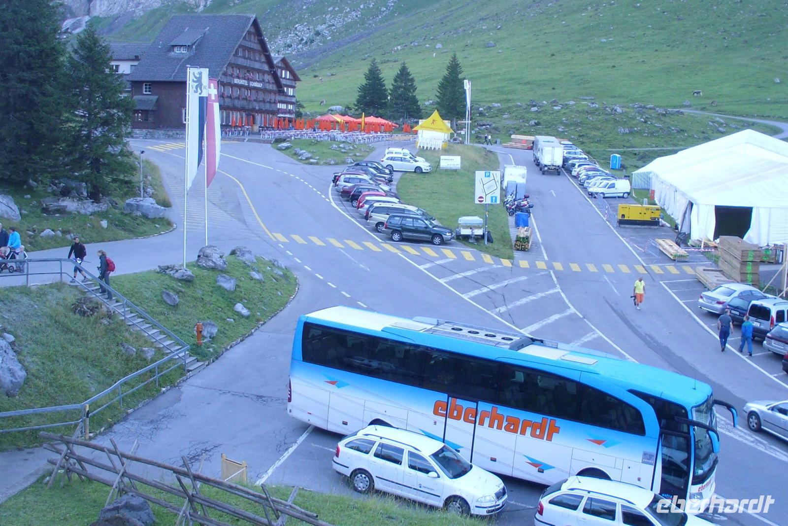 die zwei meistfotografierten Bildmotive der Schweiz wahrhaftig gesehen zu haben! Die Kapellbrücke wurde übrigens in der ersten Hälfte des 14. Jahrhunderts als Teil der Stadtbefestigung errichtet und hat ihren Namen von der benachbarten St.-Peters-Kapelle. Am Abend kamen wir an unserem letzten Übernachtungsort an - der etwa 1.300 Meter hoch gelegenen Schwägalp im Appenzeller Land. Diese Ruhe dort war einfach himmlisch... Einige Gäste glaubten mir sogar, dass einige dort in Hütten schlafen müssten - das war natürlich ein Spaß, aber etwas Spaß musste schließlich auch sein! Letztendlich freuten sich alle darüber, dass sie ein gemütliches Zimmer hatten.