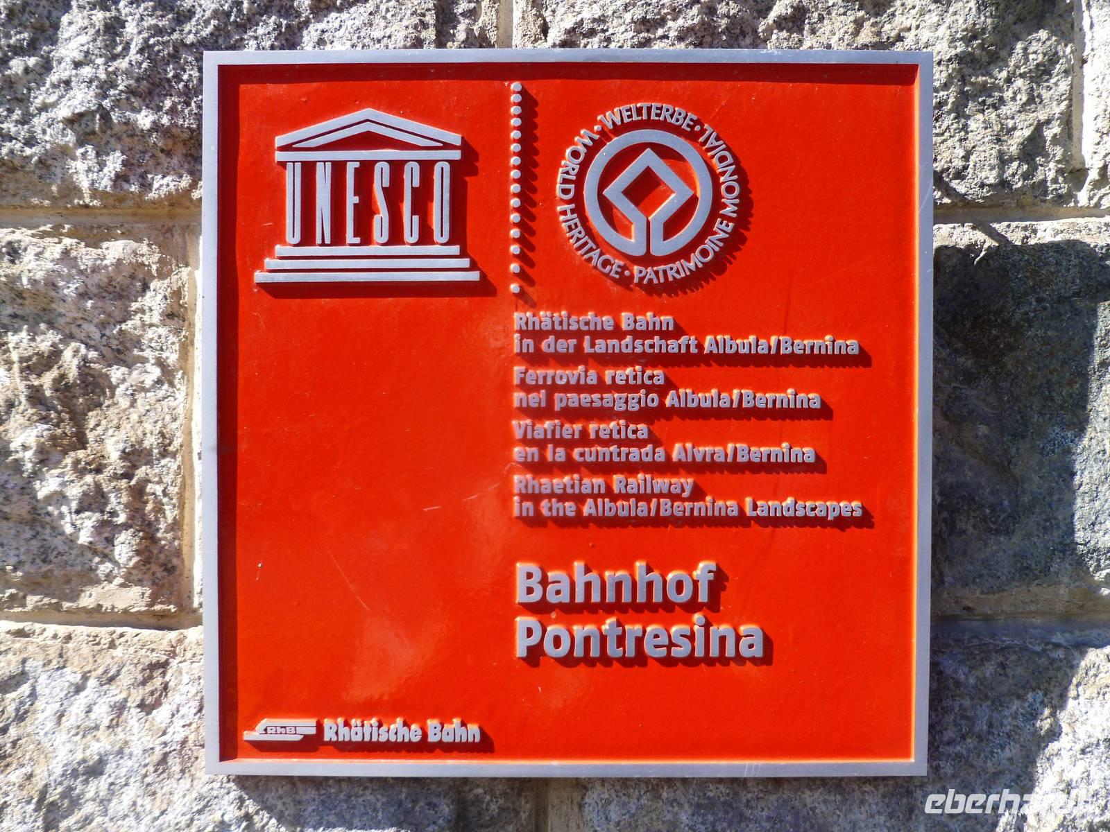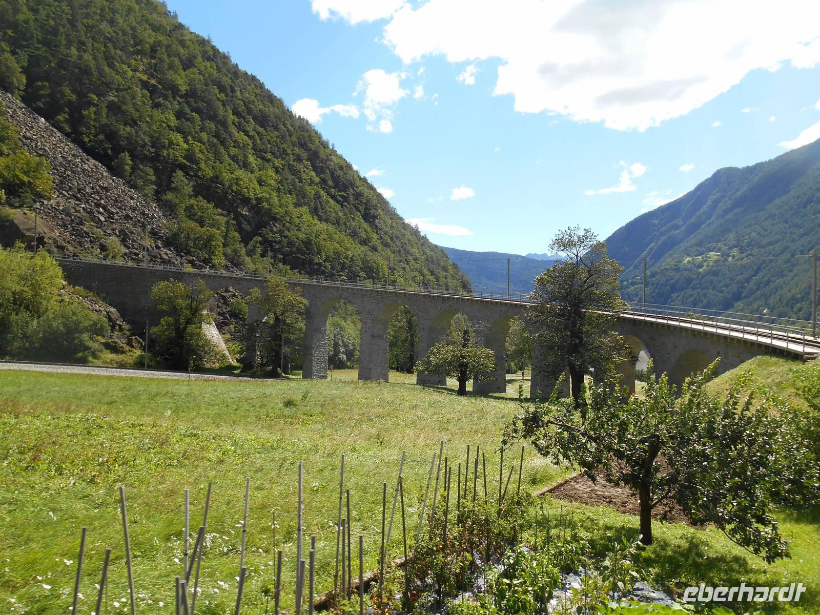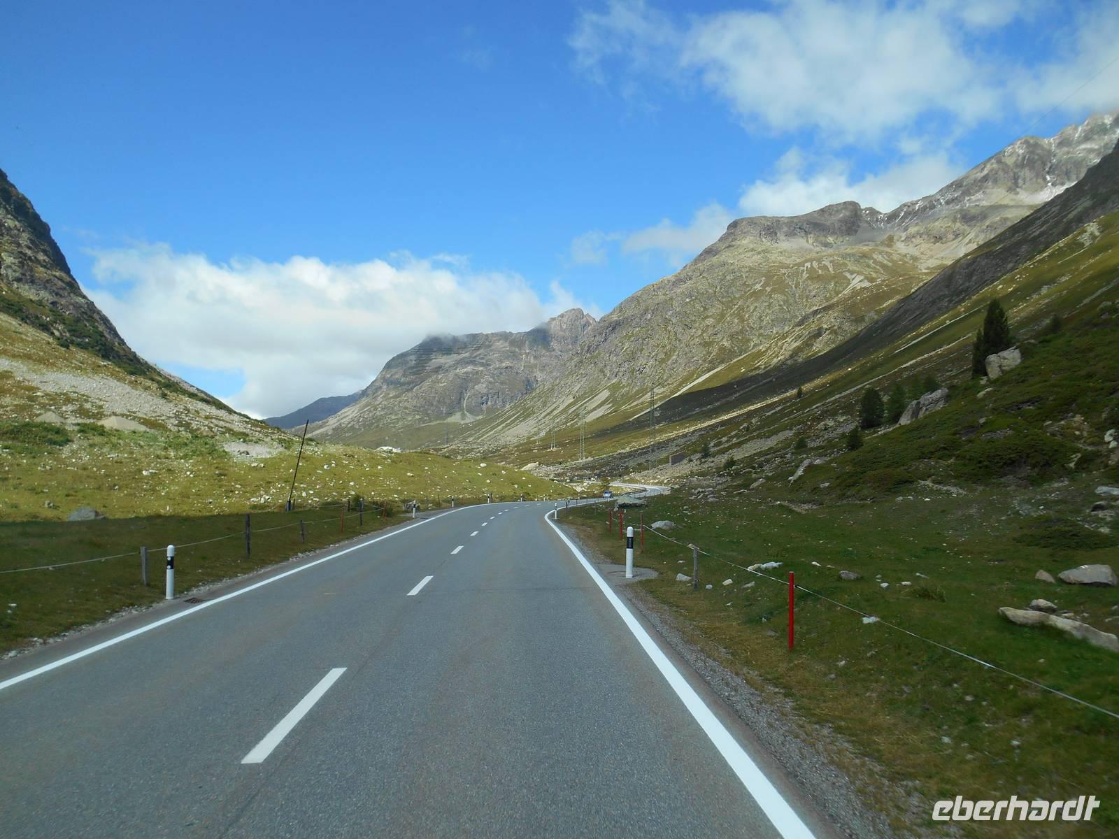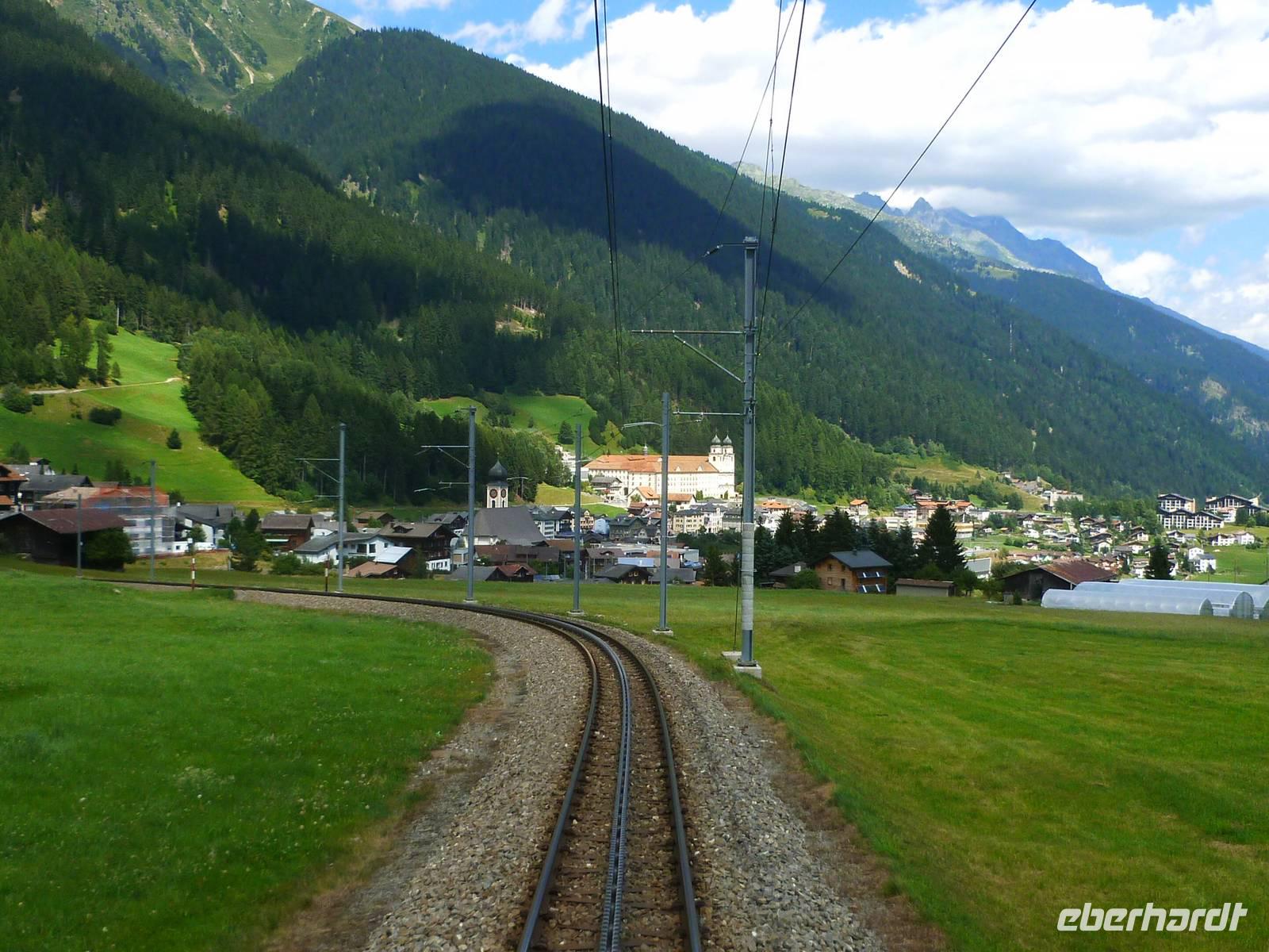 Heute stand bereits der erste Höhepunkt dieser Reise, die Fahrt mit dem Bernina-Express, auf dem Programm. Mit unserem Bus ging es über den 2.383 m hoch gelegenen Flüela-Pass nach Pontresina. Dort stiegen wir in den Bernina-Express ein. Die Bernina-Linie ist übrigens die einzige Schweizerbahn, die offen über die Alpen führt. Sie wurde 1910 fertig gestellt und brachte uns von den Gletschern des Bernina-Passes auf 2.253 m ü. d. M. hinunter auf 429 m ü. d. M. nach Tirano. Während der Höhenunterschied zwischen Ospizio Bernina und Tirano 1.824 Meter beträgt, misst die Horizontaldistanz nur 22 Kilometer. Diese Höhendifferenz wird ohne Zahnrad-Strecken überwunden - trotz Steigungen von bis zu 70o/oo. Das ist das absolute Maximum, das eine Adhäsionsbahn noch nutzbringend bewältigen kann. Besonders raffiniert ist übrigens auch die Wahl der Linienführung. Sie ermöglicht nicht nur die Überwindung der immensen Höhenunterschiede, sie eröffnet dem Reisenden auch atemberaubende Ausblicke auf eine imposante Bergwelt, auf Gletscher und Täler. Gegen Mittag kamen wir nach einer etwa 2-stündigen Fahrt im Bernina-Express im italienischen Tirano an und die meisten von uns gingen zum Mittagessen ins Restaurant "Ai Portici". Einige von uns probierten hier - auf meine Empfehlung hin - eine Spezialität dieser Gegend, nämlich "Pizzoccheri". Das ist eine Mischung aus Buchweizennudeln, Spinat, Karotten, Knoblauch, Zwiebeln und das alles mit Butter und Käse überbacken. Dazu gab es für einige ein Glas Hauswein, natürlich aus dieser Gegend - dem milden Veltlin. Ein paar Gäste von uns nutzten auch noch die Gelegenheit und spazierten zur Wallfahrtkirche "Madonna di Tirano" - diese Kirche mit ihren herrlichen Fresken hatte heute sogar ihre Türen geöffnet, denn meistens ist sie über die Mittagszeit geschlossen - wie fast alle Geschäfte hier! In Italien pflegt man nämlich die Tradition der Siesta und ein altes römische Sprichwort sagt: "Zu dieser Zeit sind nur Hunde und Franzosen unterwegs...!". Für uns ging es am Nachmittag mit dem Bus zurück. Nach kurzer Zeit erreichten wir wieder den Grenzübergang Italien/Schweiz und wie versprochen, legten wir auf der Rückfahrt ein paar Foto-Stopps ein, denn während unserer Bahnfahrt am Vormittag durften wir leider nicht aussteigen. Brusio sollte unser erstes Ziel sein, denn dort erlebt man eine wahre Einzigartigkeit - der Bernina-Express beschreibt hier eine Schleife über einen Kreisviadukt. 107 Meter ist er lang, und er dürfte zu den meistfotografierten Bauwerken der Rhätischen Bahn zählen. Diese 360-Grad-Kehre bringt wertvolle Höhenmeter, ein Griff in die Trickkiste der Bahnbauer, der sonst nur bei Kehrtunnels angewendet wird. Wir warteten hier auf einen Zug, damit unser Foto perfekt war. Weiter hinauf ging es zum Lago di Poschiavo und durch die Ortschaften des Val di Poschiavo, einem italienisch-sprachigen Südtal des Kantons Graubünden, erreichten wir die Bernina-Passstraße. Diese ist gewöhnlich ganzjährig geöffnet und stellt die Verbindung zwischen dem Puschlav im Süden und dem Engadin im Norden dar. Damit ist der Pass gleichzeitig eine Sprachgrenze. Eine gelbe Tafel auf dem Pass signalisiert die Europäische Wasserscheide, das Wasser in Richtung Süden gelangt über die Flüsse Poschiavino, Adda und Po ins Adriatische Meer und das Wasser in Richtung Norden wird über den Inn und die Donau ins Schwarze Meer geleitet. Nach einem Aufenthalt auf dem Bernina-Pass ging es mit einem kurzen Stopp mit Blick auf den Morteratsch-Gletscher zurück über den Flüela-Pass nach Davos. Ein langer und erlebnisreicher Tag war zu Ende.