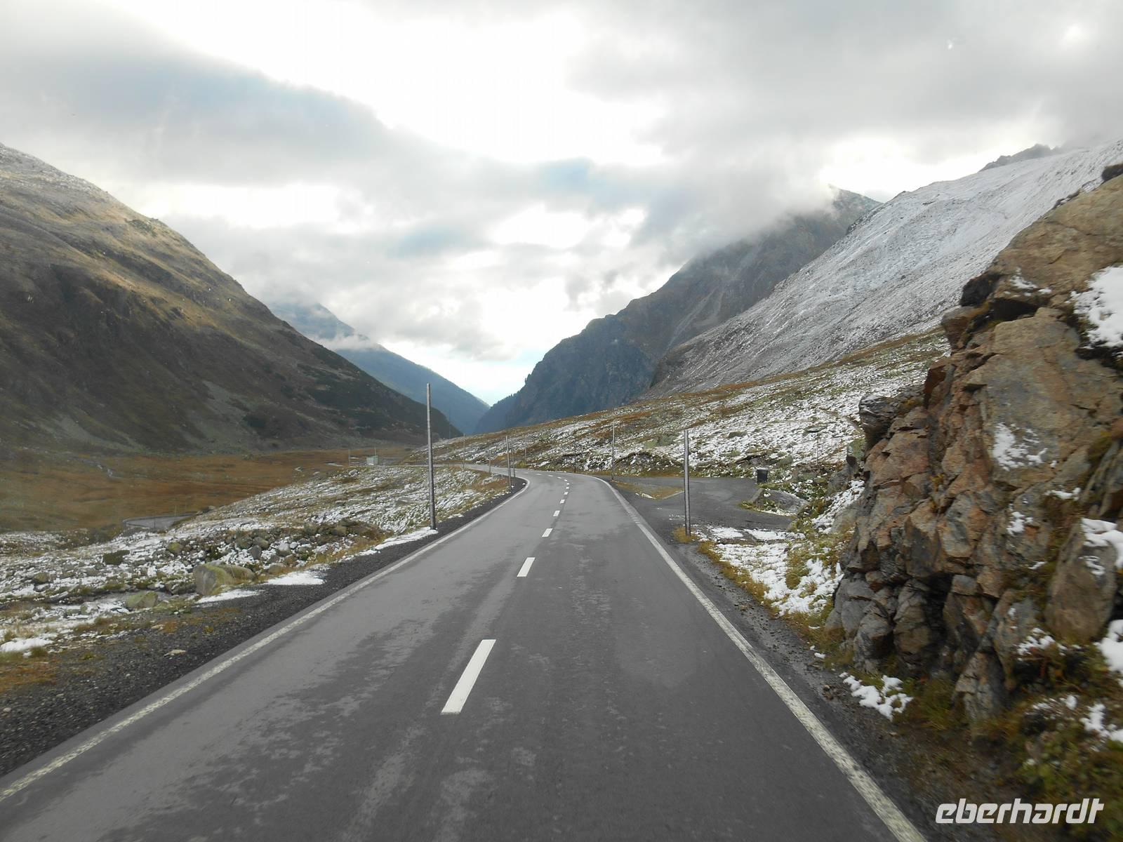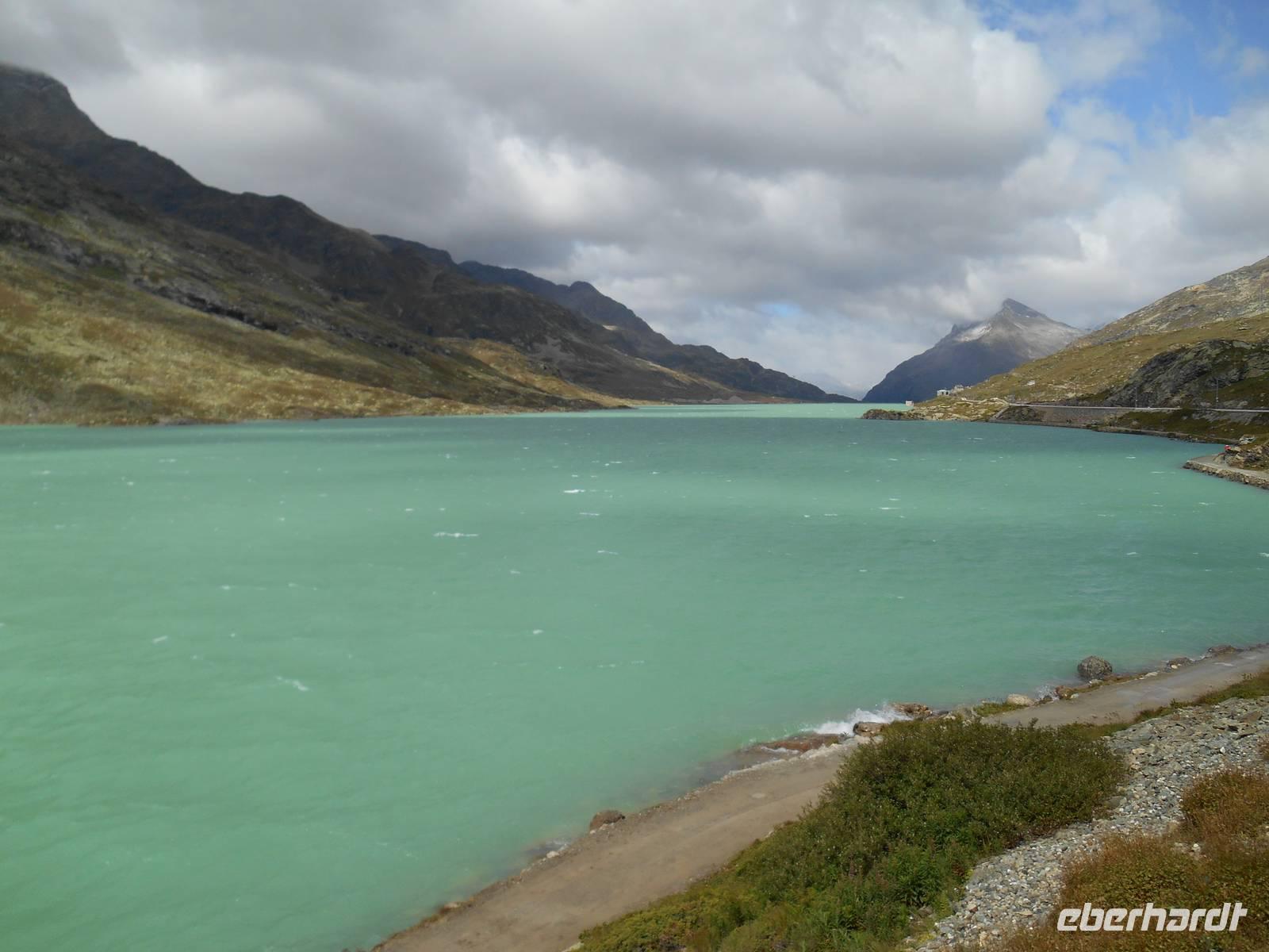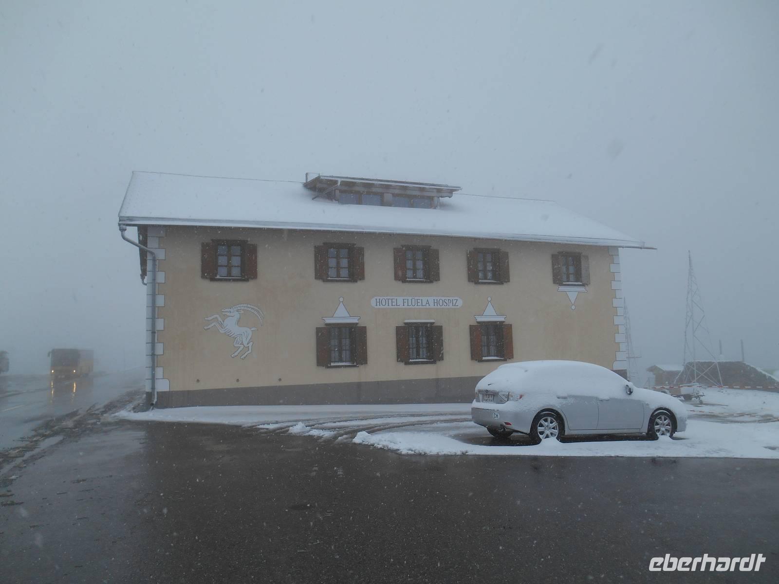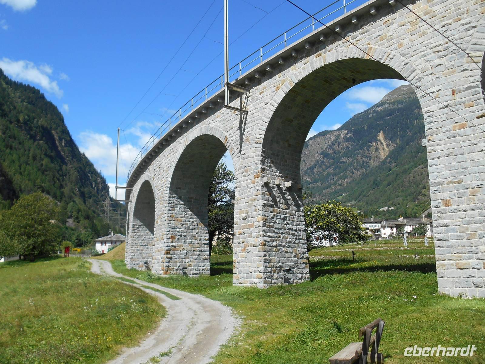 Heute stand bereits der erste Höhepunkt dieser Reise, die Fahrt mit dem Bernina-Express, auf dem Programm. Mit unserem Bus ging es über den 2.383 m hoch gelegenen Flüela-Pass nach Pontresina. Dort stiegen wir in den Bernina-Express ein. Die Bernina-Linie ist übrigens die einzige Schweizerbahn, die offen über die Alpen führt. Sie wurde 1910 fertig gestellt und brachte uns von den Gletschern des Bernina-Passes auf 2.253 m ü. d. M. hinunter auf 429 m ü. d. M. nach Tirano. Während der Höhenunterschied zwischen Ospizio Bernina und Tirano 1.824 Meter beträgt, misst die Horizontaldistanz nur 22 Kilometer. Diese Höhendifferenz wird ohne Zahnrad-Strecken überwunden - trotz Steigungen von bis zu 70o/oo. Das ist das absolute Maximum, das eine Adhäsionsbahn noch nutzbringend bewältigen kann. Besonders raffiniert ist übrigens auch die Wahl der Linienführung. Sie ermöglicht nicht nur die Überwindung der immensen Höhenunterschiede, sie eröffnet dem Reisenden auch atemberaubende Ausblicke auf eine imposante Bergwelt, auf Gletscher und Täler. Gegen Mittag kamen wir nach einer etwa 2-stündigen Fahrt im Bernina-Express im italienischen Tirano an und die meisten von uns gingen zum Mittagessen ins Restaurant "Ai Portici". Einige von uns probierten hier - auf meine Empfehlung hin - eine Spezialität dieser Gegend, nämlich "Pizzoccheri". Das ist eine Mischung aus Buchweizennudeln, Spinat, Karotten, Knoblauch, Zwiebeln und das alles mit Butter und Käse überbacken. Dazu gab es für einige ein Glas Hauswein, natürlich aus dieser Gegend - dem milden Veltlin. Ein paar Gäste von uns nutzten auch noch die Gelegenheit und spazierten zur Wallfahrtkirche "Madonna di Tirano" - diese Kirche mit ihren herrlichen Fresken hatte heute sogar ihre Türen geöffnet, denn meistens ist sie über die Mittagszeit geschlossen - wie fast alle Geschäfte hier! In Italien pflegt man nämlich die Tradition der Siesta und ein altes römische Sprichwort sagt: "Zu dieser Zeit sind nur Hunde und Franzosen unterwegs...!". Für uns ging es am Nachmittag mit dem Bus zurück. Nach kurzer Zeit erreichten wir wieder den Grenzübergang Italien/Schweiz und wie versprochen, legten wir auf der Rückfahrt ein paar Foto-Stopps ein, denn während unserer Bahnfahrt am Vormittag durften wir leider nicht aussteigen. Brusio sollte unser erstes Ziel sein, denn dort erlebt man eine wahre Einzigartigkeit - der Bernina-Express beschreibt hier eine Schleife über einen Kreisviadukt. 107 Meter ist er lang, und er dürfte zu den meistfotografierten Bauwerken der Rhätischen Bahn zählen. Diese 360-Grad-Kehre bringt wertvolle Höhenmeter, ein Griff in die Trickkiste der Bahnbauer, der sonst nur bei Kehrtunnels angewendet wird. Wir warteten hier auf einen Zug, damit unser Foto perfekt war. Weiter hinauf ging es zum Lago di Poschiavo und durch die Ortschaften des Val di Poschiavo, einem italienisch-sprachigen Südtal des Kantons Graubünden, erreichten wir die Bernina-Passstraße. Diese ist gewöhnlich ganzjährig geöffnet und stellt die Verbindung zwischen dem Puschlav im Süden und dem Engadin im Norden dar. Damit ist der Pass gleichzeitig eine Sprachgrenze. Eine gelbe Tafel auf dem Pass signalisiert die Europäische Wasserscheide, das Wasser in Richtung Süden gelangt über die Flüsse Poschiavino, Adda und Po ins Adriatische Meer und das Wasser in Richtung Norden wird über den Inn und die Donau ins Schwarze Meer geleitet. Nach einem Aufenthalt auf dem Bernina-Pass ging es mit einem kurzen Stopp mit Blick auf den Morteratsch-Gletscher zurück über den Flüela-Pass nach Davos. Ein langer und erlebnisreicher Tag war zu Ende.