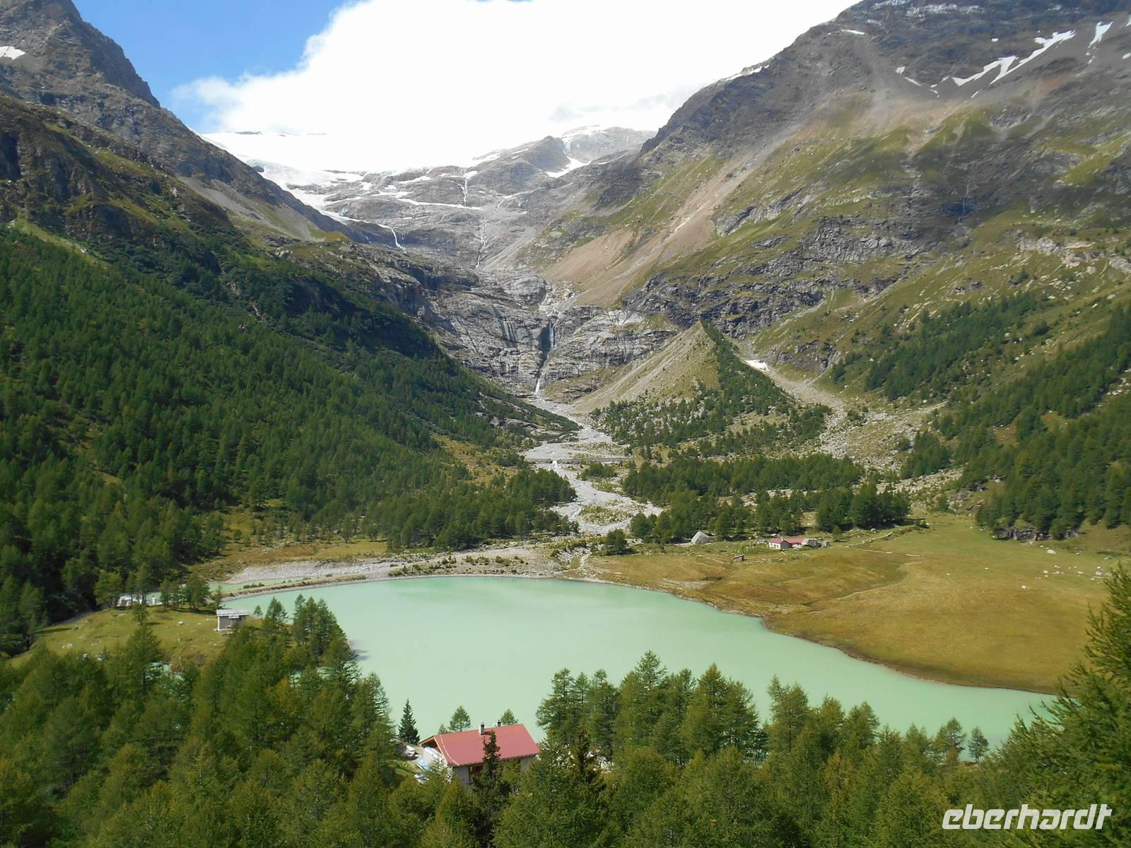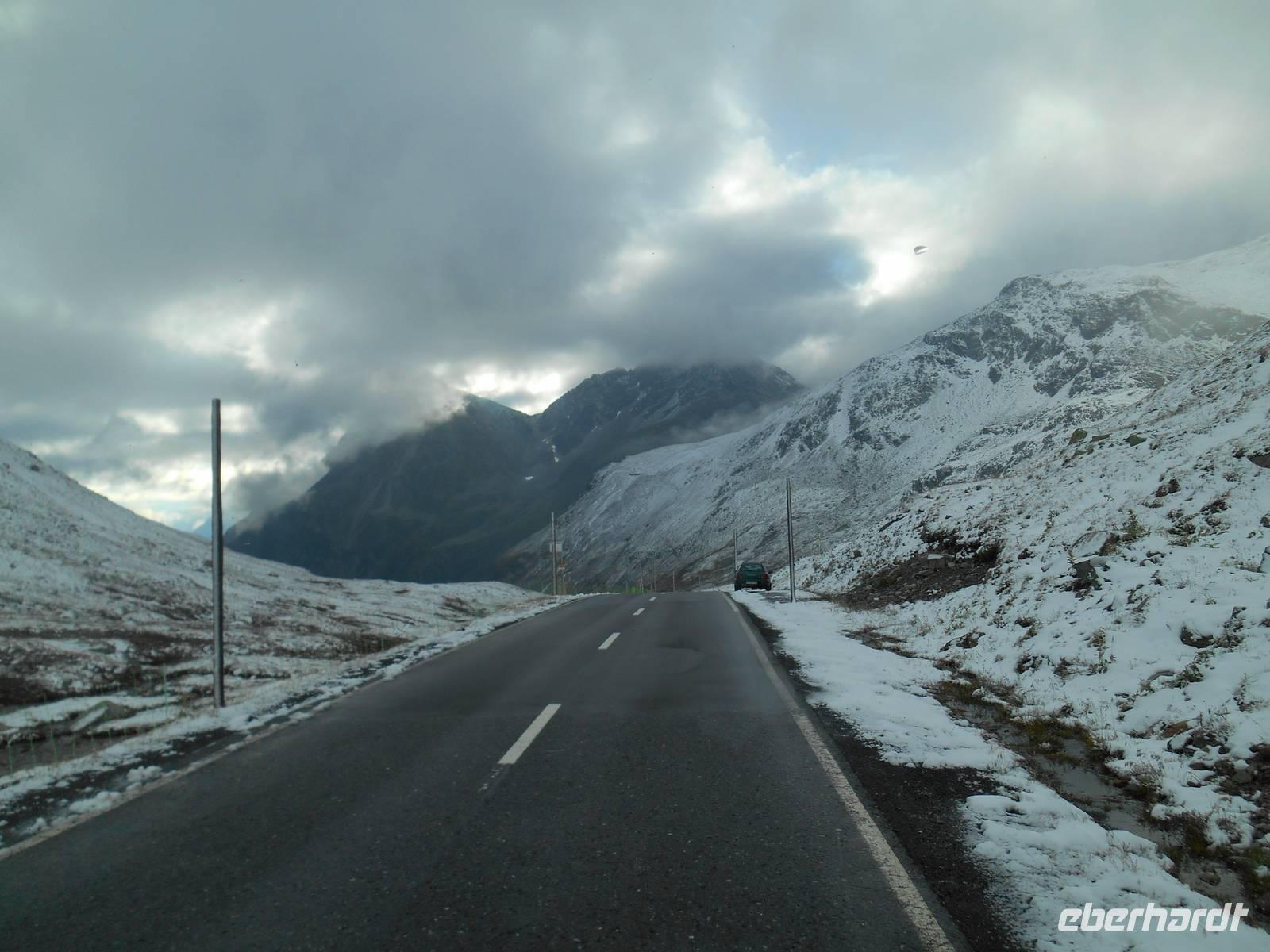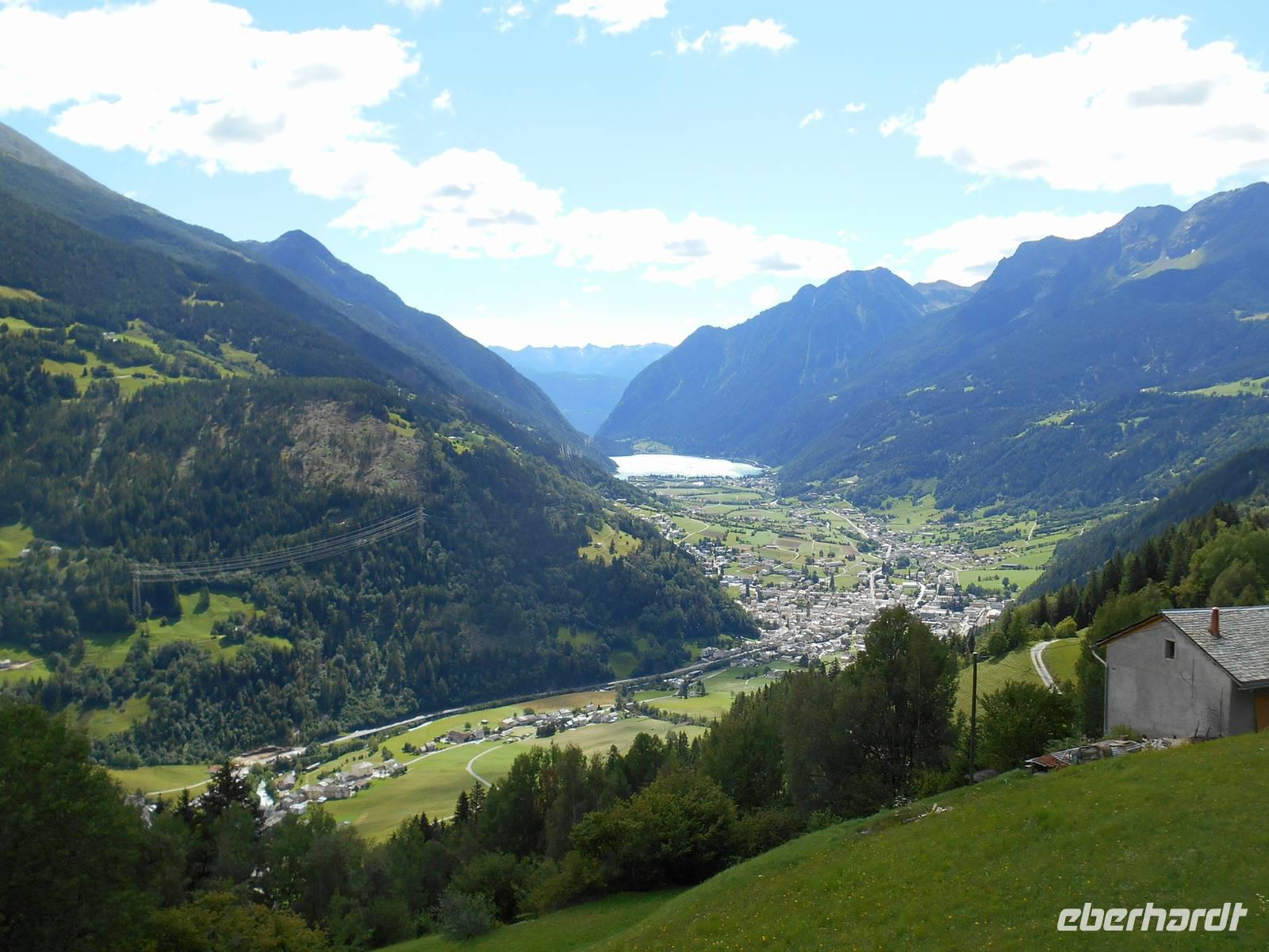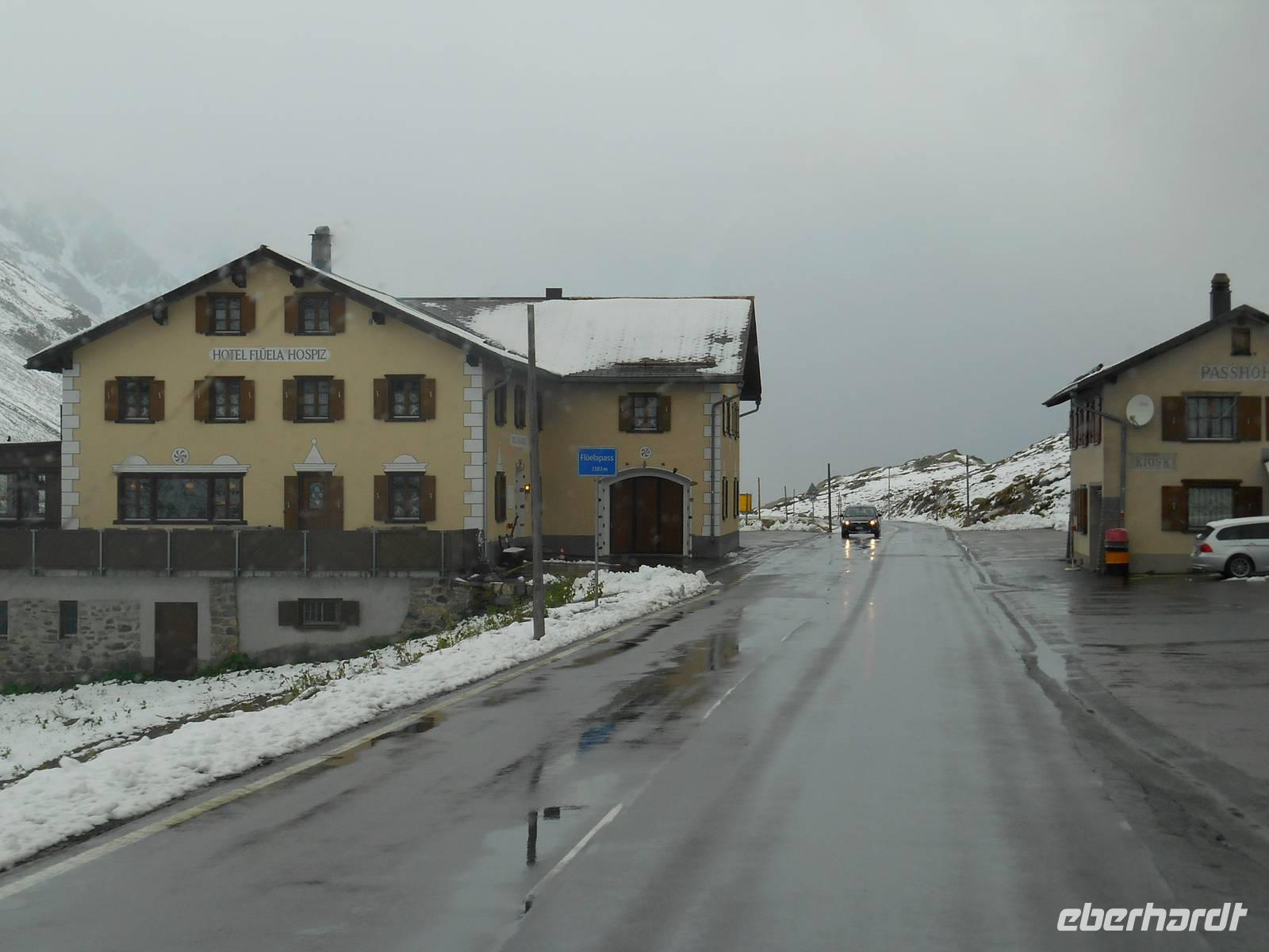 Heute stand bereits der erste Höhepunkt dieser Reise, die Fahrt mit dem Bernina-Express, auf dem Programm. Mit unserem Bus ging es über den 2.383 m hoch gelegenen Flüela-Pass nach Pontresina. Dort stiegen wir in den Bernina-Express ein. Die Bernina-Linie ist übrigens die einzige Schweizerbahn, die offen über die Alpen führt. Sie wurde 1910 fertig gestellt und brachte uns von den Gletschern des Bernina-Passes auf 2.253 m ü. d. M. hinunter auf 429 m ü. d. M. nach Tirano. Während der Höhenunterschied zwischen Ospizio Bernina und Tirano 1.824 Meter beträgt, misst die Horizontaldistanz nur 22 Kilometer. Diese Höhendifferenz wird ohne Zahnrad-Strecken überwunden - trotz Steigungen von bis zu 70o/oo. Das ist das absolute Maximum, das eine Adhäsionsbahn noch nutzbringend bewältigen kann. Besonders raffiniert ist übrigens auch die Wahl der Linienführung. Sie ermöglicht nicht nur die Überwindung der immensen Höhenunterschiede, sie eröffnet dem Reisenden auch atemberaubende Ausblicke auf eine imposante Bergwelt, auf Gletscher und Täler. Gegen Mittag kamen wir nach einer etwa 2-stündigen Fahrt im Bernina-Express im italienischen Tirano an und die meisten von uns gingen zum Mittagessen ins Restaurant "Ai Portici". Einige von uns probierten hier - auf meine Empfehlung hin - eine Spezialität dieser Gegend, nämlich "Pizzoccheri". Das ist eine Mischung aus Buchweizennudeln, Spinat, Karotten, Knoblauch, Zwiebeln und das alles mit Butter und Käse überbacken. Dazu gab es für einige ein Glas Hauswein, natürlich aus dieser Gegend - dem milden Veltlin. Ein paar Gäste von uns nutzten auch noch die Gelegenheit und spazierten zur Wallfahrtkirche "Madonna di Tirano" - diese Kirche mit ihren herrlichen Fresken hatte heute sogar ihre Türen geöffnet, denn meistens ist sie über die Mittagszeit geschlossen - wie fast alle Geschäfte hier! In Italien pflegt man nämlich die Tradition der Siesta und ein altes römische Sprichwort sagt: "Zu dieser Zeit sind nur Hunde und Franzosen unterwegs...!". Für uns ging es am Nachmittag mit dem Bus zurück. Nach kurzer Zeit erreichten wir wieder den Grenzübergang Italien/Schweiz und wie versprochen, legten wir auf der Rückfahrt ein paar Foto-Stopps ein, denn während unserer Bahnfahrt am Vormittag durften wir leider nicht aussteigen. Brusio sollte unser erstes Ziel sein, denn dort erlebt man eine wahre Einzigartigkeit - der Bernina-Express beschreibt hier eine Schleife über einen Kreisviadukt. 107 Meter ist er lang, und er dürfte zu den meistfotografierten Bauwerken der Rhätischen Bahn zählen. Diese 360-Grad-Kehre bringt wertvolle Höhenmeter, ein Griff in die Trickkiste der Bahnbauer, der sonst nur bei Kehrtunnels angewendet wird. Wir warteten hier auf einen Zug, damit unser Foto perfekt war. Weiter hinauf ging es zum Lago di Poschiavo und durch die Ortschaften des Val di Poschiavo, einem italienisch-sprachigen Südtal des Kantons Graubünden, erreichten wir die Bernina-Passstraße. Diese ist gewöhnlich ganzjährig geöffnet und stellt die Verbindung zwischen dem Puschlav im Süden und dem Engadin im Norden dar. Damit ist der Pass gleichzeitig eine Sprachgrenze. Eine gelbe Tafel auf dem Pass signalisiert die Europäische Wasserscheide, das Wasser in Richtung Süden gelangt über die Flüsse Poschiavino, Adda und Po ins Adriatische Meer und das Wasser in Richtung Norden wird über den Inn und die Donau ins Schwarze Meer geleitet. Nach einem Aufenthalt auf dem Bernina-Pass ging es mit einem kurzen Stopp mit Blick auf den Morteratsch-Gletscher zurück über den Flüela-Pass nach Davos. Ein langer und erlebnisreicher Tag war zu Ende.