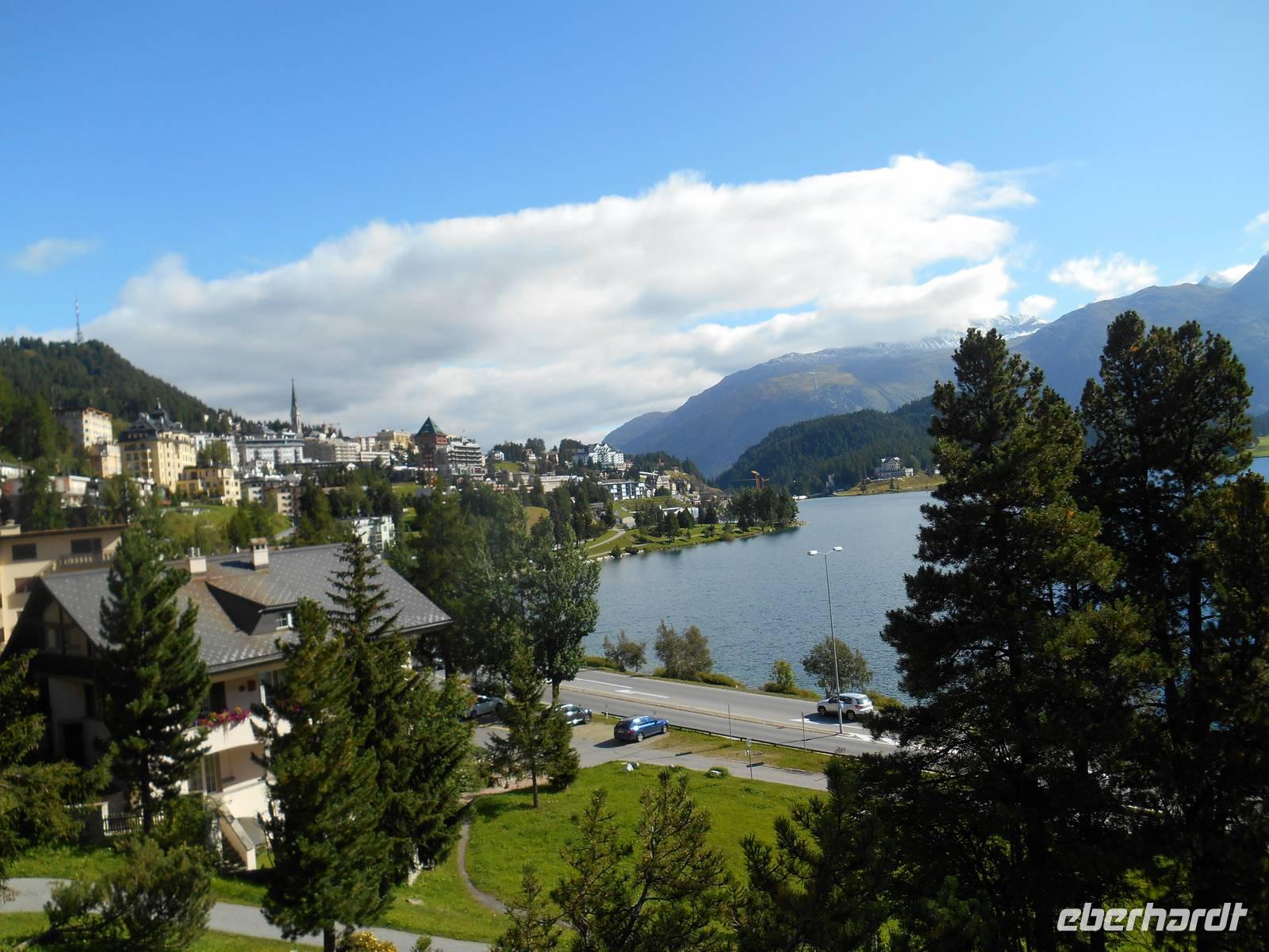 Nach einem ausgiebigen Frühstück starteten wir unseren Engadin-Ausflug. Unsere heutige Fahrt führte uns wiederum über den Flüela-Pass vorerst ins Unterengadin. Das Engadin ist übrigens das Bündner Inntal. Im Engadin spricht man Rätoromanisch und dort sagt man En, wenn man vom Inn spricht. Zuerst führte uns die Fahrt durch die Ortschaften Susch, Zernez, vorbei an Zuoz und Samedan nach St. Moritz. Zahlreiche Baustellen prägten das Ortsbild, aber das ist im Sommer normal. Die meisten Touristen besuchen St. Moritz nämlich im Winter. Das hatte natürlich auch einen Vorteil für uns, denn so konnten wir ganz in Ruhe flanieren. Zum Glück für die Männer, hatten auch noch einige der teuren Geschäfte geschlossen und so musste niemand seine Kreditkarte zücken. Ich führte unsere Gäste bis zum sogenannten "Schiefen Turm", dem Rest einer alten Kirche aus dem Mittelalter. Dieser Turm ist eines der Wahrzeichen von St. Moritz. Für die meisten von uns ging es ganz einfach darum, St. Moritz zumindest mal gesehen zu haben, um mitreden zu können. Fast alle waren der Meinung, dass hier leider sehr viel von der Ursprünglichkeit verloren gegangen ist. Vorbei an den Oberengadiner Seen ging es nunmehr zum Julierpass hinauf. Dieser Pass bildet den Übergang vom Engadin nach Tiefencastel bzw. ins Rheintal. Durch das Oberhalbstein-Gebiet gelangten wir nach Tiefencastel und legten abschließend noch einen Fotostopp am imposanten Landwasserviadukt bei Filisur ein - dieses Meisterwerk der Bahn wollten wir uns unbedingt aus der Nähe anzuschauen! Der 65 Meter hohe und 136 Meter lange Viadukt ist immerhin das Wahrzeichen der Rhätischen Bahn. Es befindet sich in einer Kurve von 45 Grad mit einem Radius von 100 Meter über dem Wildbach Landwasser, sein oberes Widerlager mündet direkt in einen Tunnel. Erbaut wurde der Landwasserviadukt im Zuge der Albulabahn. Die Brücke besteht aus 9200 m³ Bruchstein; das Material stammt aus einem Steinbruch in etwa 500 Metern Entfernung von der Brückenbaustelle - einfach gigantisch! Die Rückfahrt nach Davos führte uns durch das Landwassertal. Den restlichen Nachmittag nutzten wir zur individuellen Gestaltung, denn wir waren ja im Besitz der Davoser Gästekarte. Dieses spezielle Sommerangebot ermöglichte uns die freie Fahrt mit den hiesigen Ortsbussen und allen geöffneten Bergbahnen. So nutzten wir die Gelegenheit, mit der Schatzalpbahn in nur etwa vier Minuten zur 1.860 Meter hoch gelegenen Schatzalp zu fahren - von dort aus konnten wir einen schönen Blick auf die Landschaft Davos und die umliegenden Berge genießen. Unseren Gästen stand natürlich auch der Wellness-Bereich des Hotels zur Verfügung. Es gab so einiges zu erleben - für jeden war etwas dabei!
